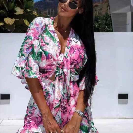 Jacquard Pajamas Women Spring and Summer Short Sleeve Shorts Long Pants Three-piece set Home Service