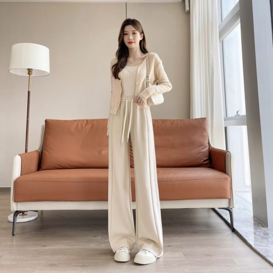 Jacquard Pajamas Women Spring and Summer Short Sleeve Shorts Long Pants Three-piece set Home Service