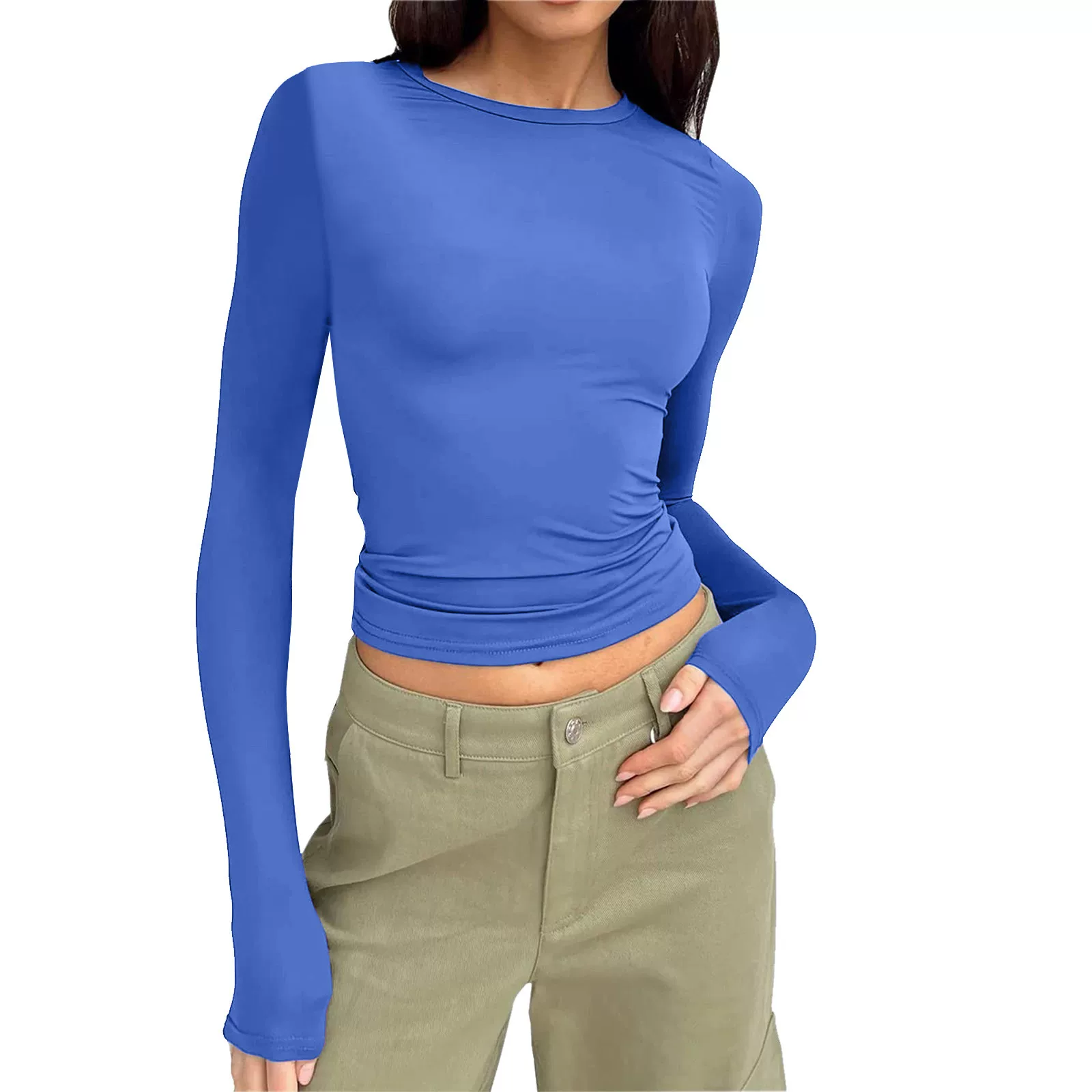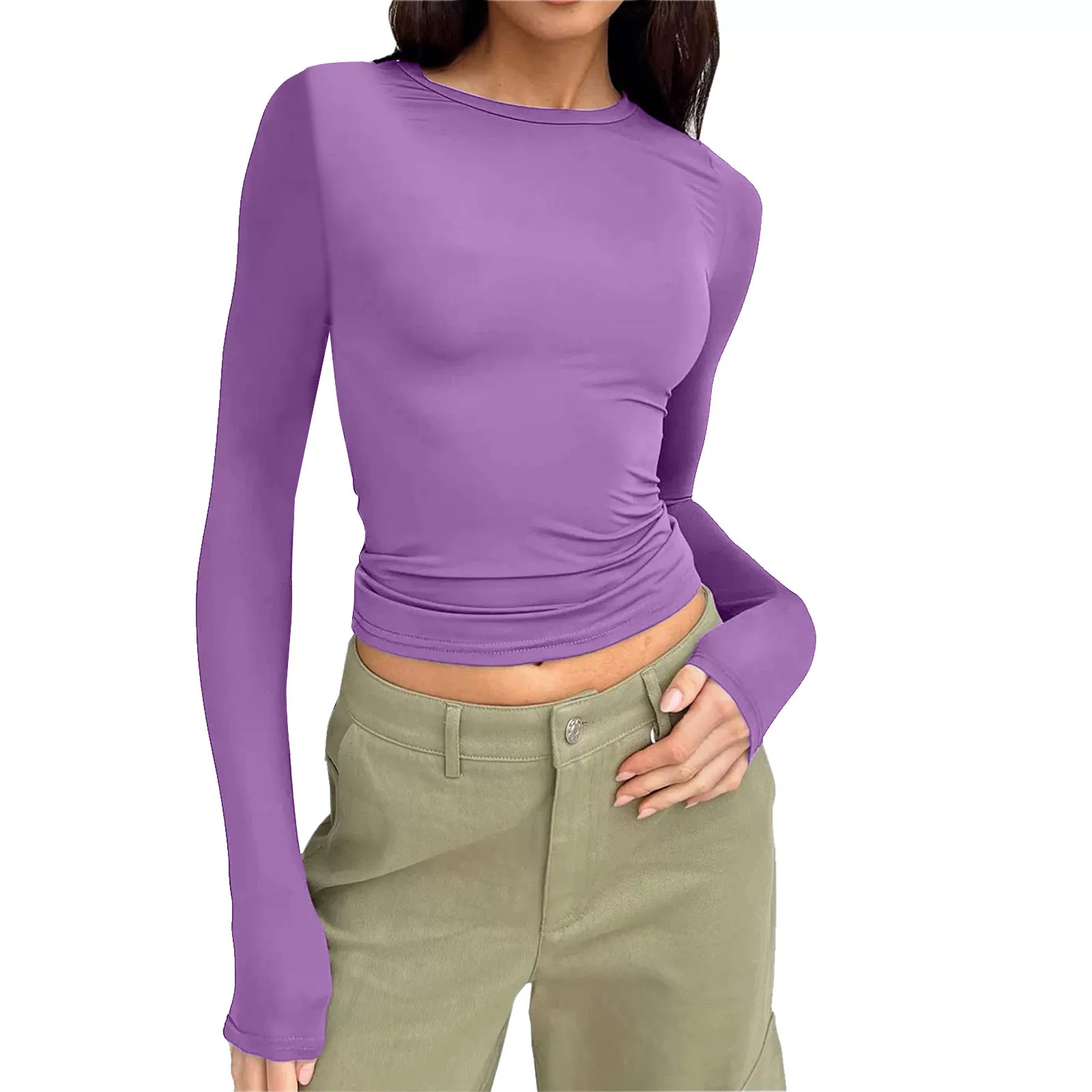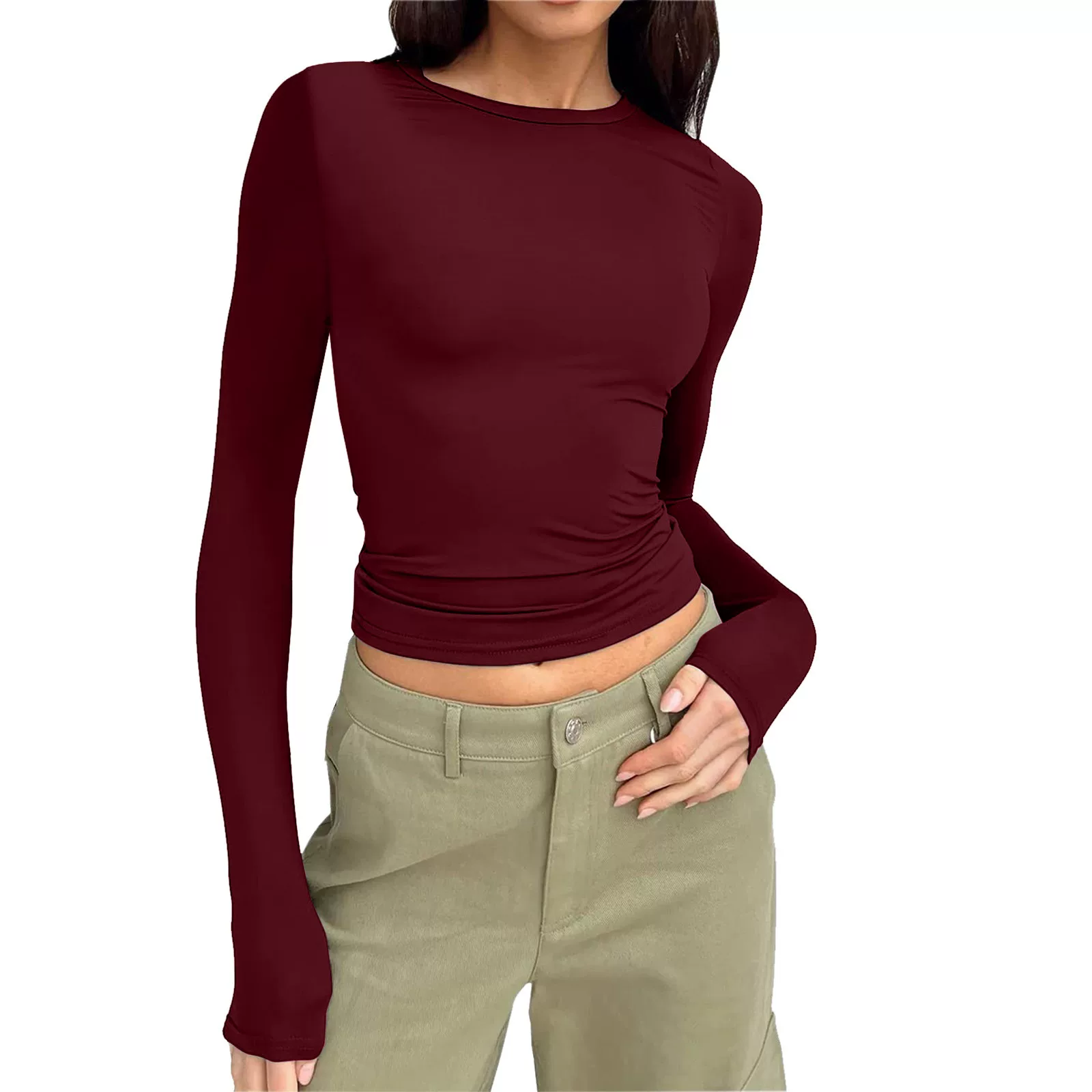 2024 cross-border European and American style new versatile round neck solid color tight long-sleeved T-shirt bottoming shirt (multi-color)