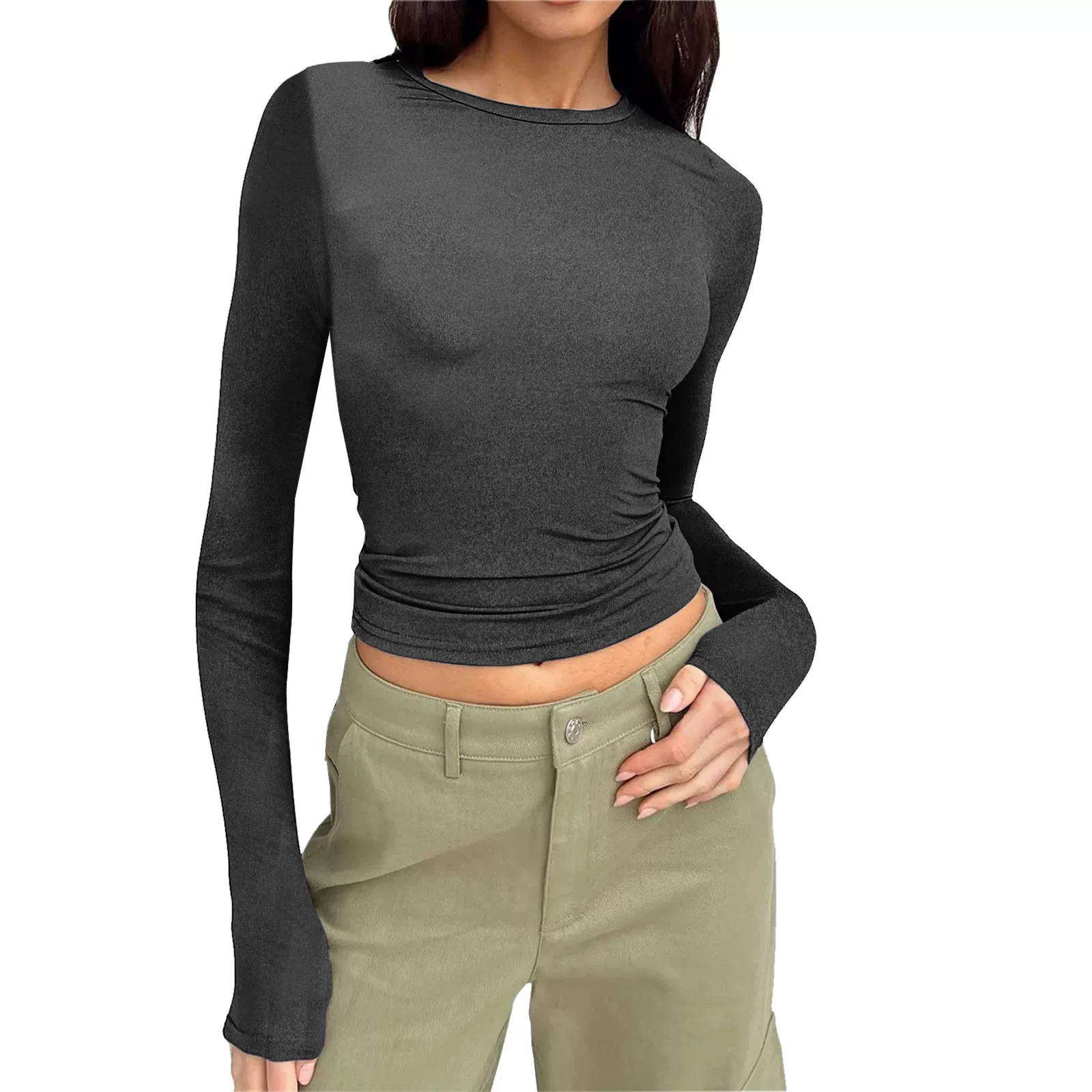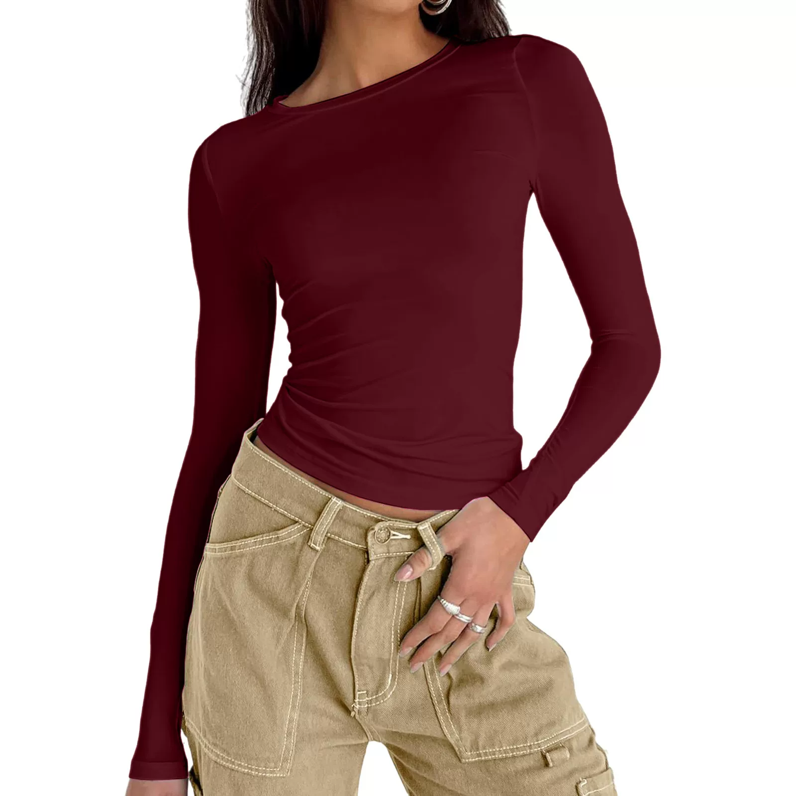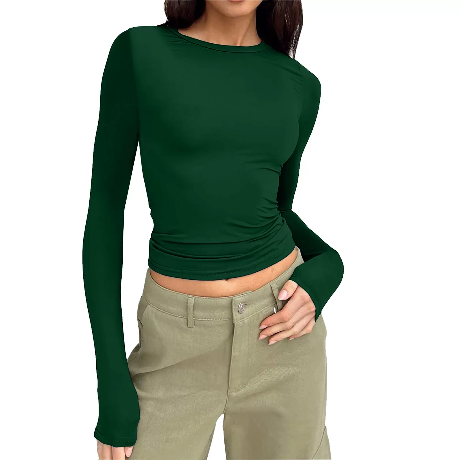 2024 cross-border European and American style new versatile round neck solid color tight long-sleeved T-shirt bottoming shirt (multi-color)
