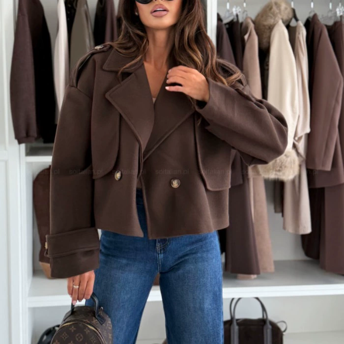2025 cross-border European and American style autumn and winter new solid color long-sleeved casual short woolen jacket for women