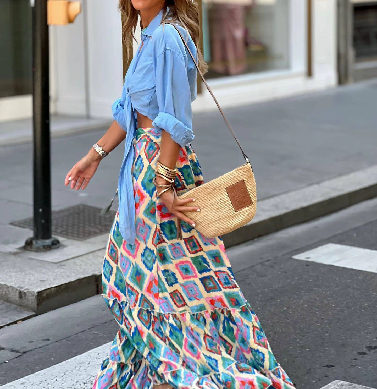 green, blue, yellow, piece of red