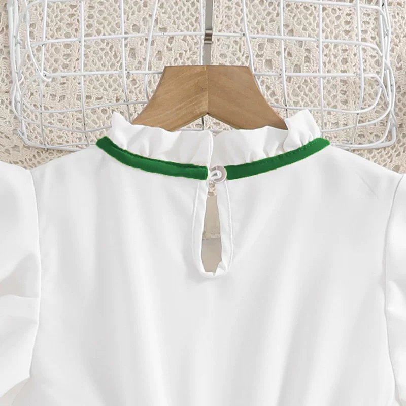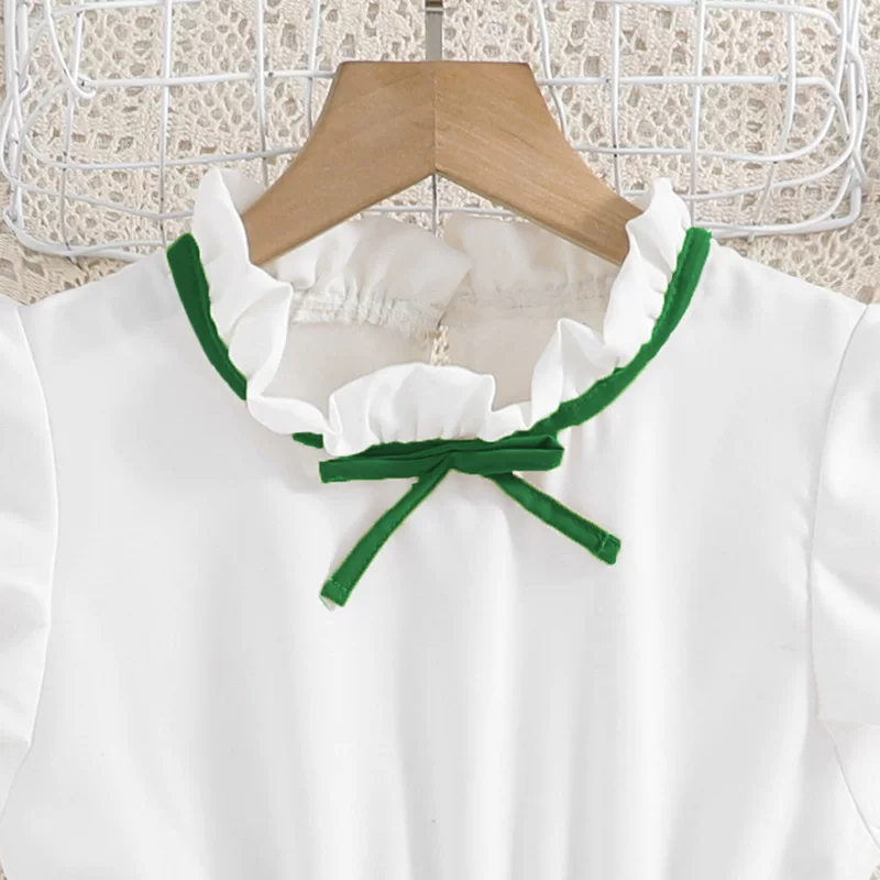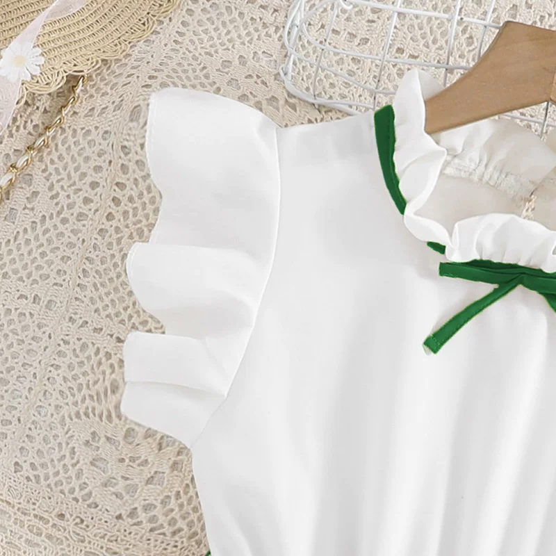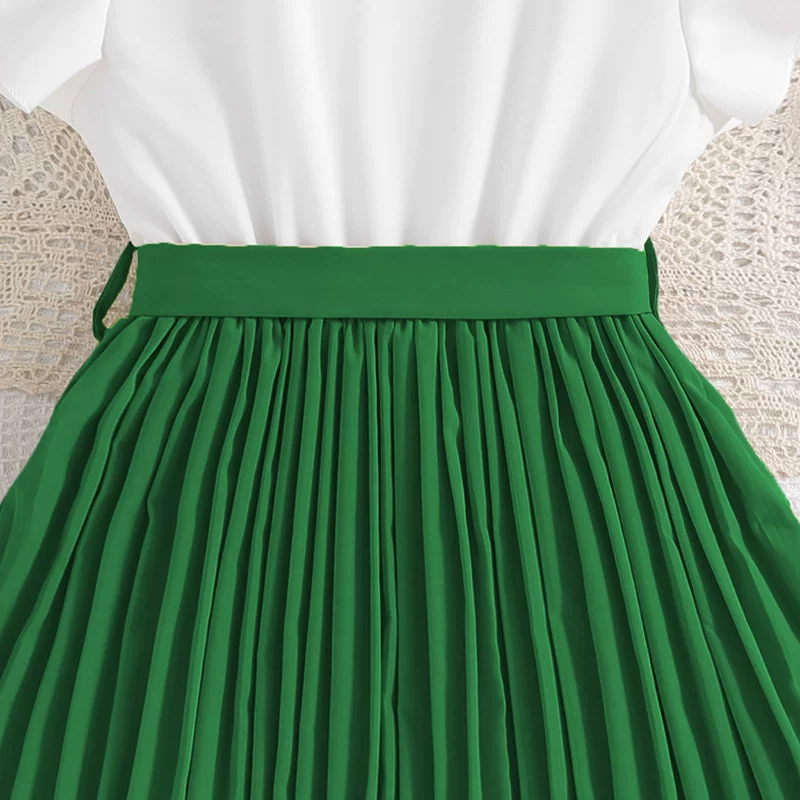 2025 summer girls pleated dress fashionable flying sleeves color matching Korean style princess dress