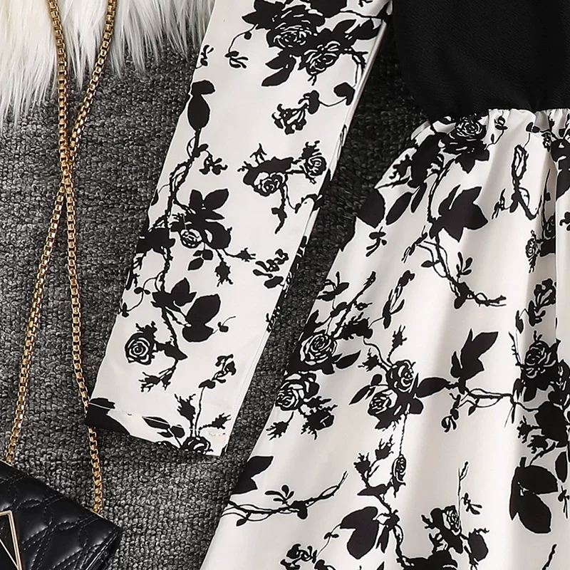 Be the first to review “8-12-year-old girls dress 2025 autumn new European and American style beaded front collar long-sleeved printed temperament princess dress”