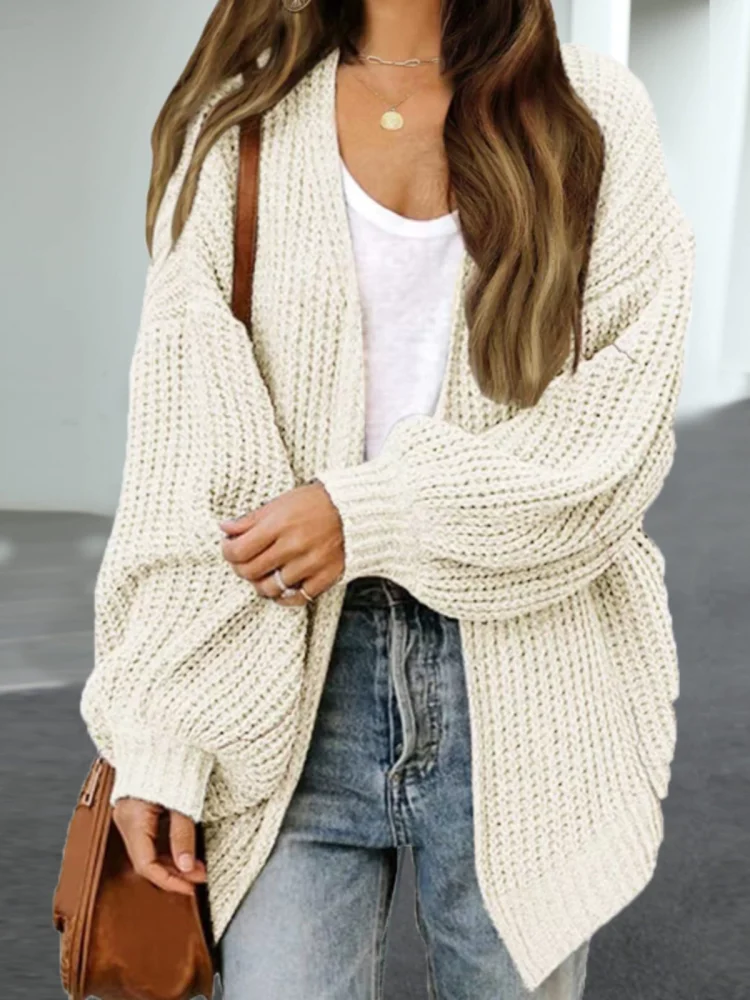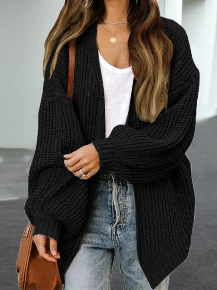 American autumn and winter women’s V-neck versatile loose buttonless long-sleeved knitted cardigan sweater