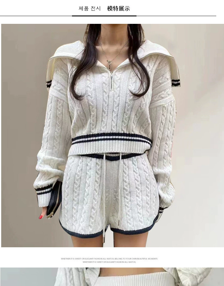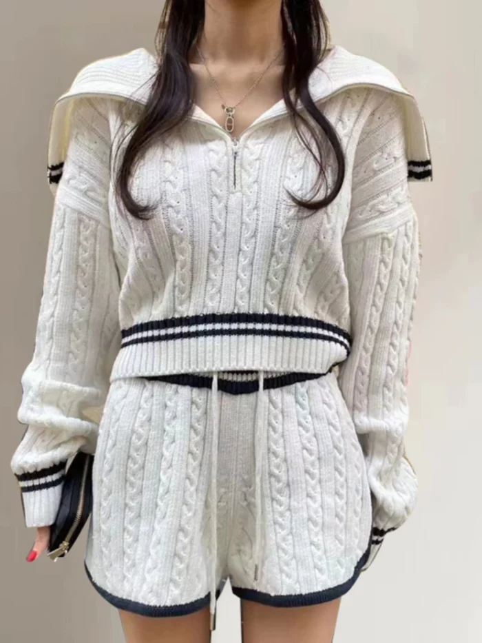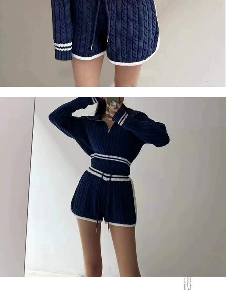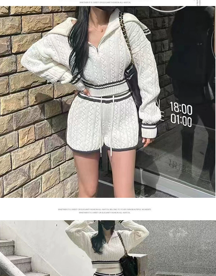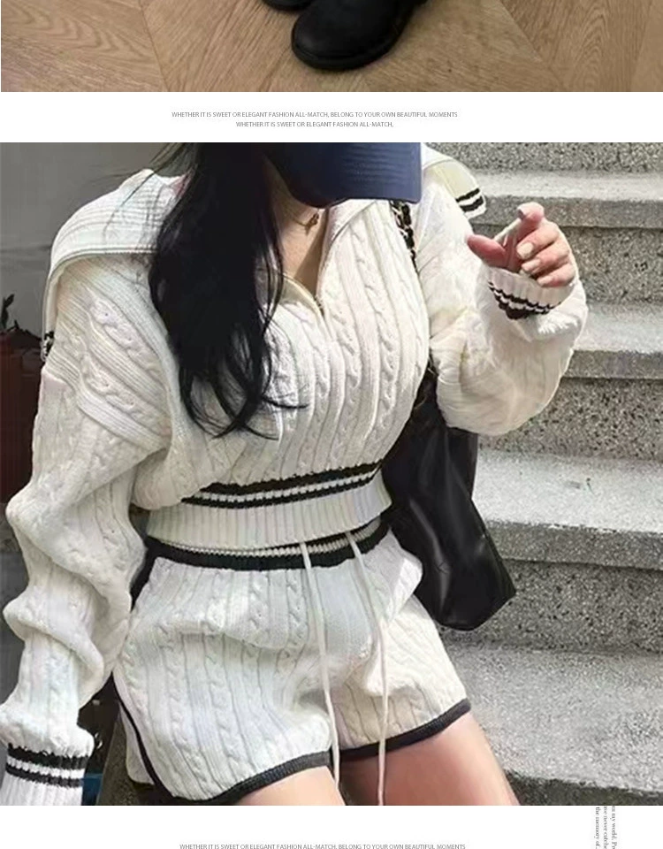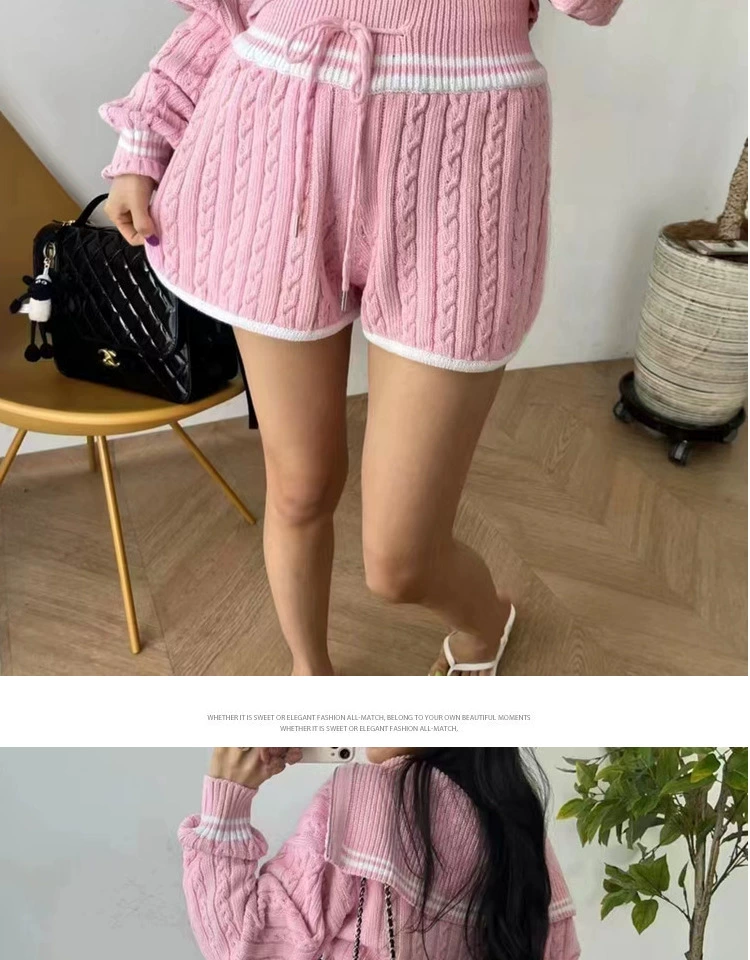 Be the first to review “American college style navy collar loose slimming autumn women’s short long-sleeved sweater waist tie knitted shorts”