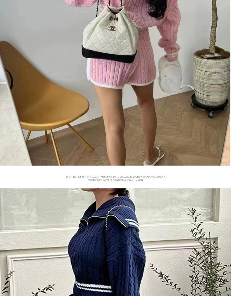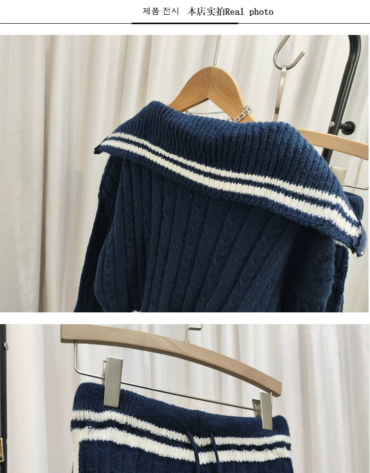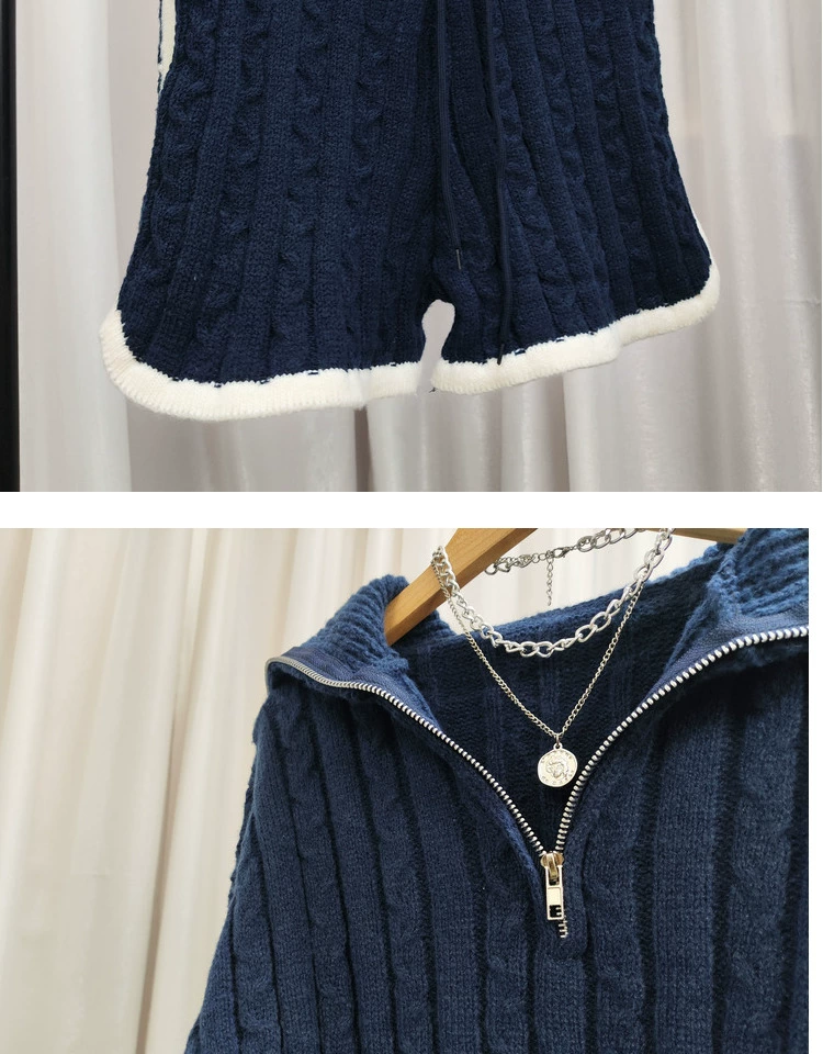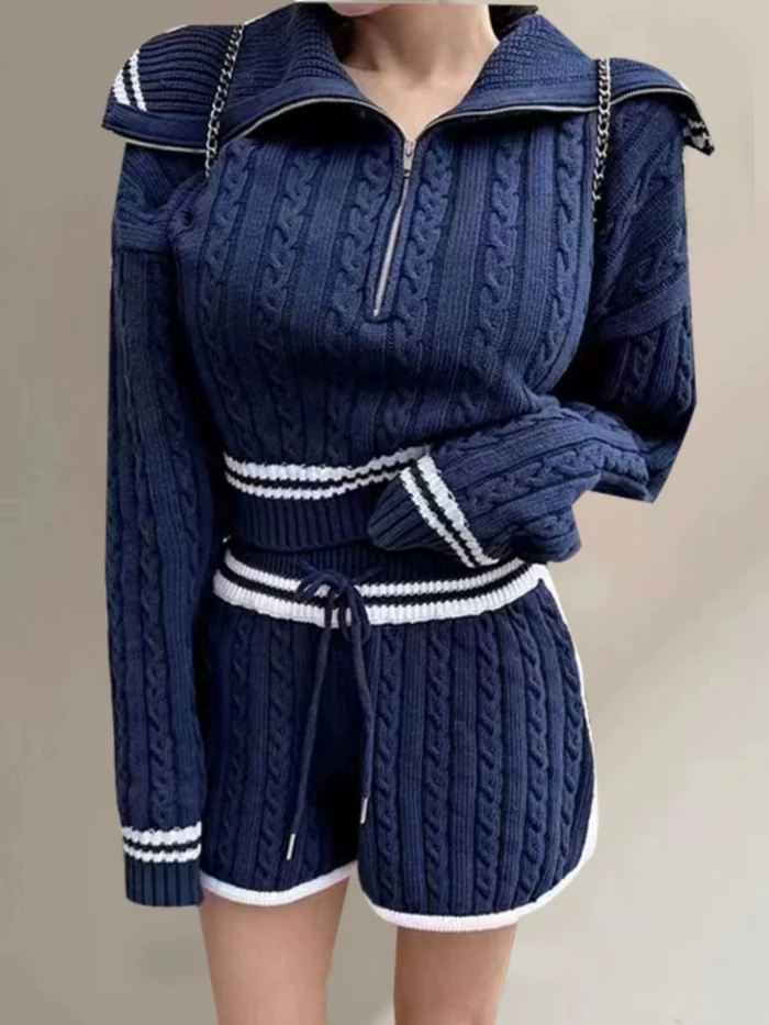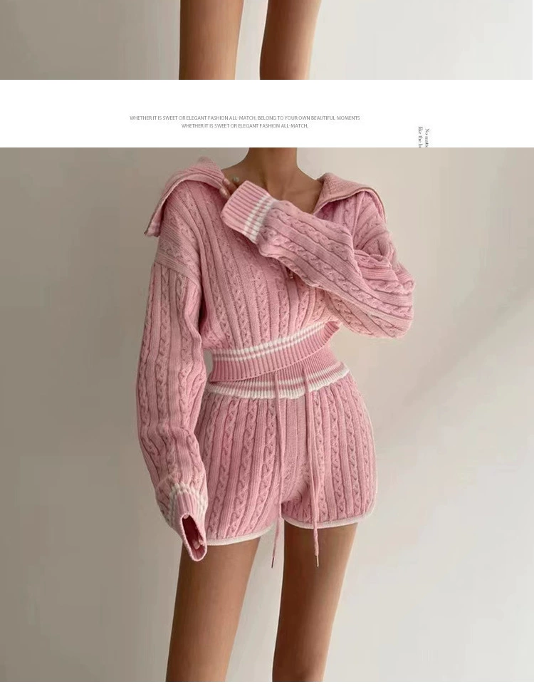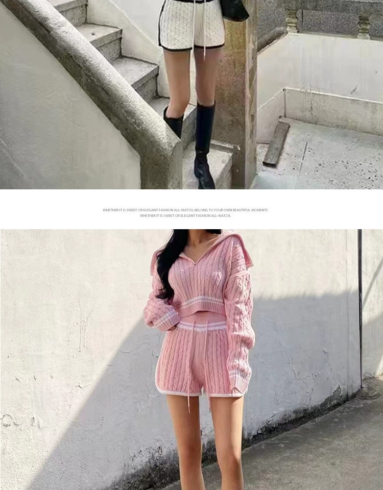Be the first to review “American college style navy collar loose slimming autumn women’s short long-sleeved sweater waist tie knitted shorts”