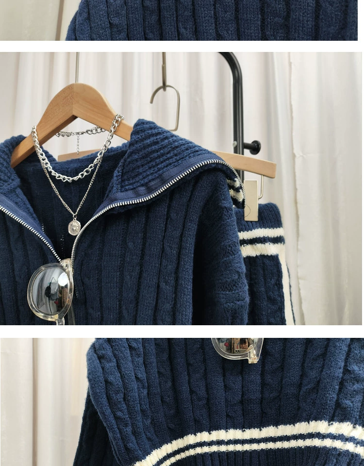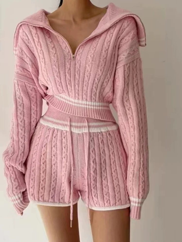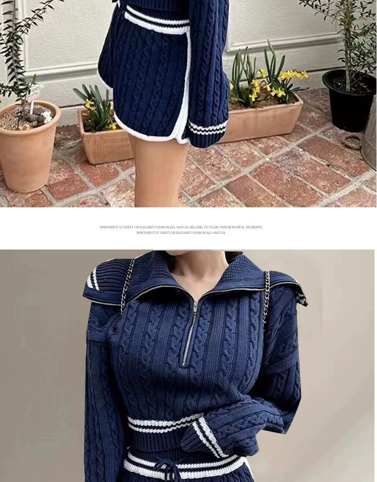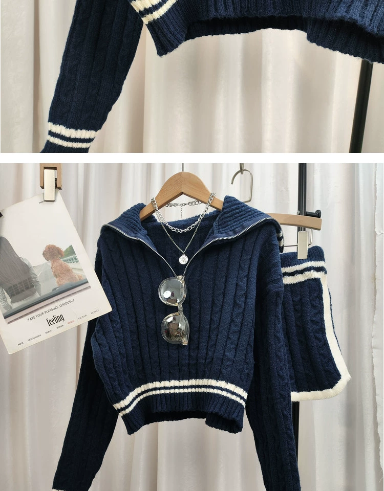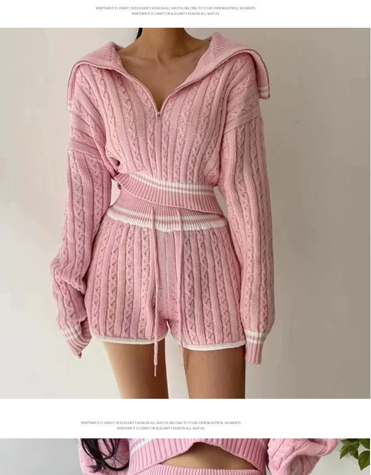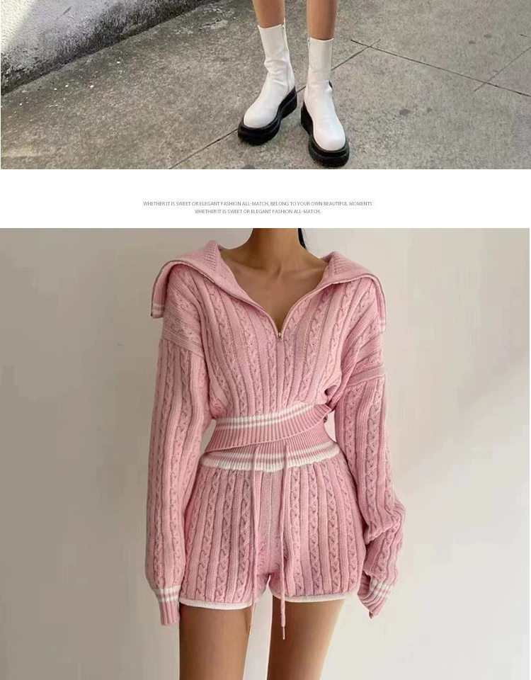 Be the first to review “American college style navy collar loose slimming autumn women’s short long-sleeved sweater waist tie knitted shorts”