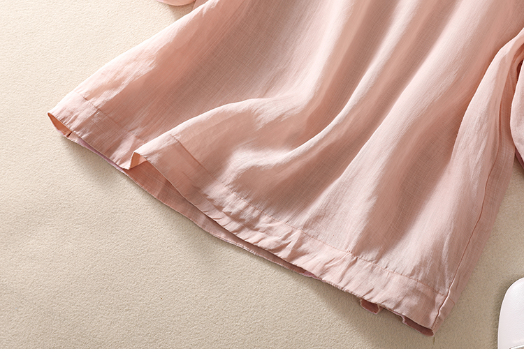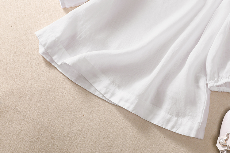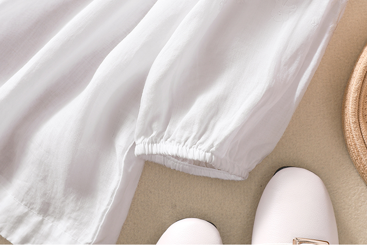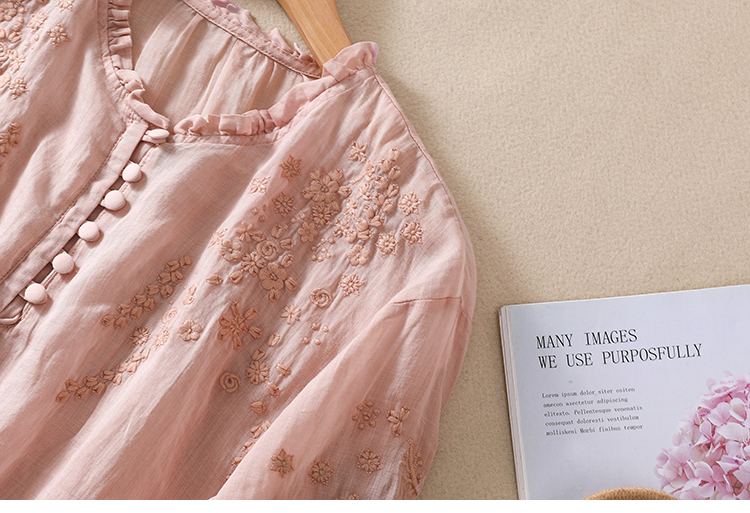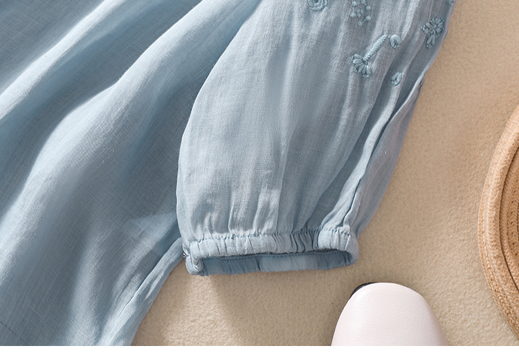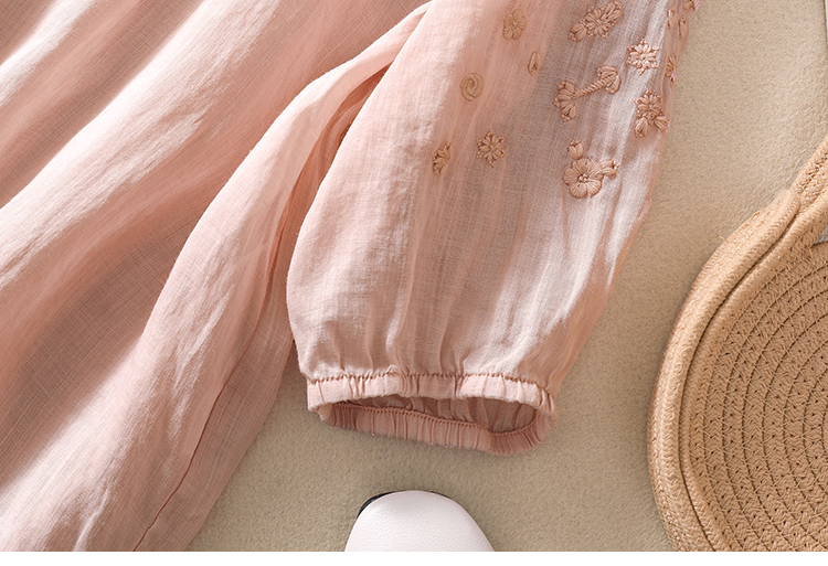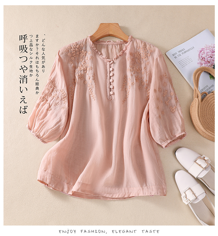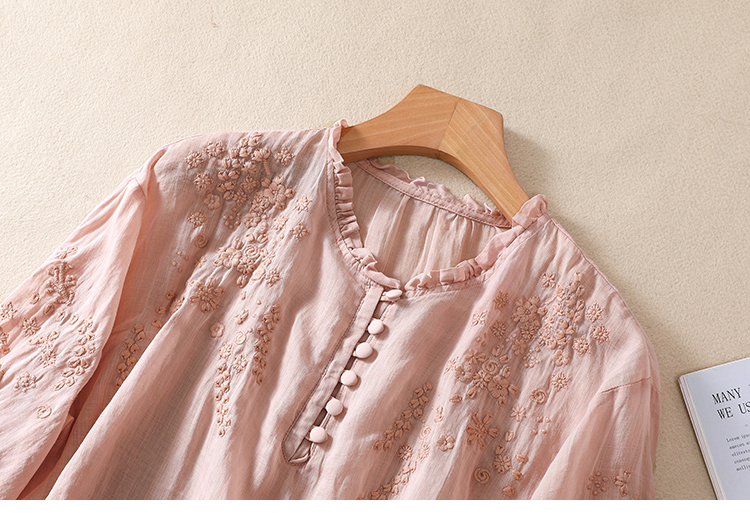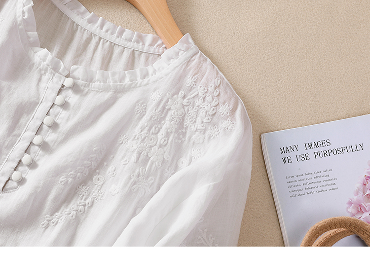 Artistic Versatile Embroidery 3/4 Sleeve Shirt Women’s Solid Color Cotton and Linen Top