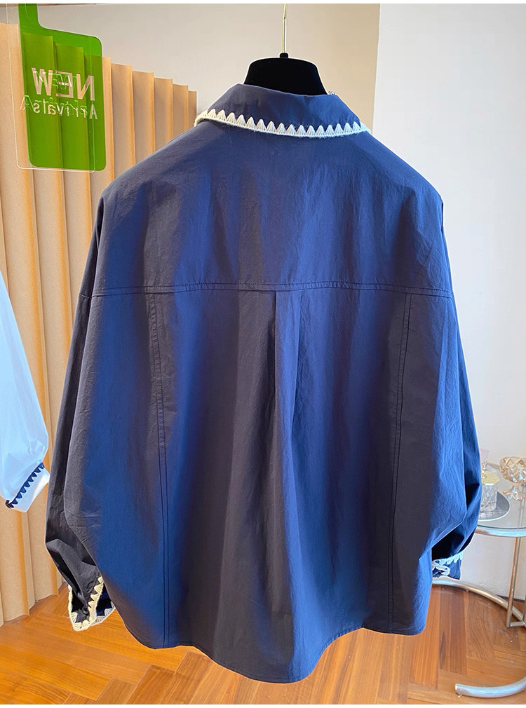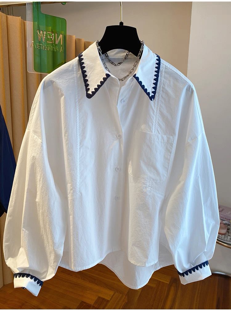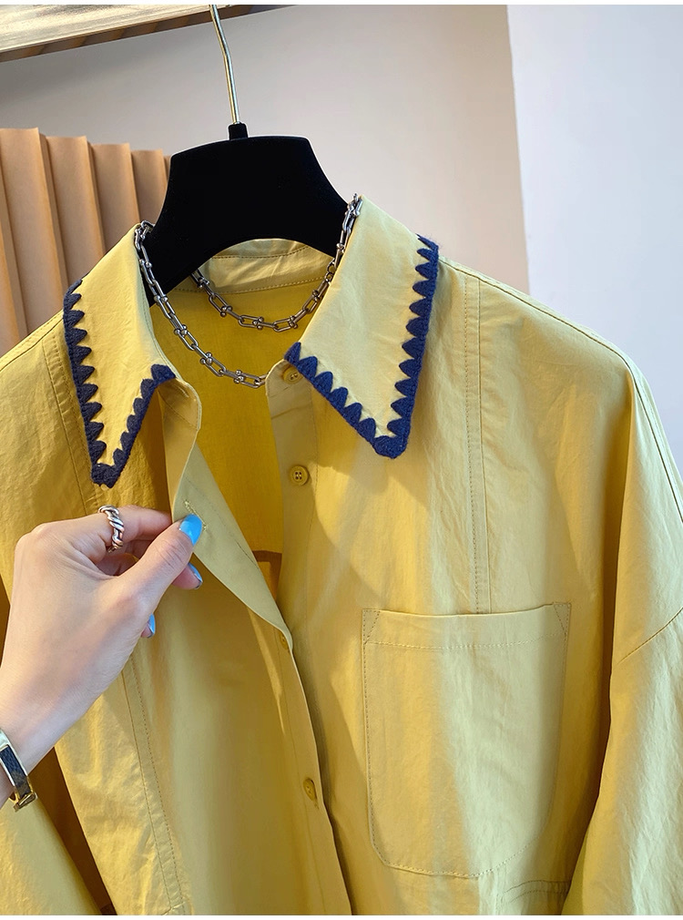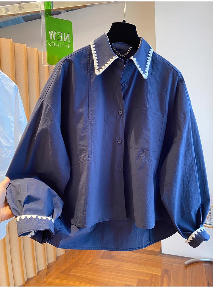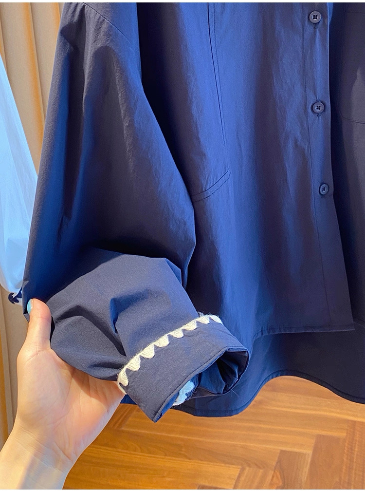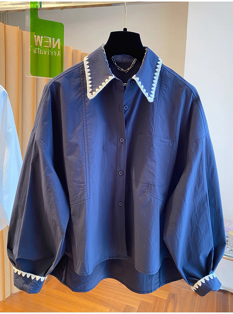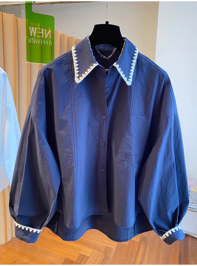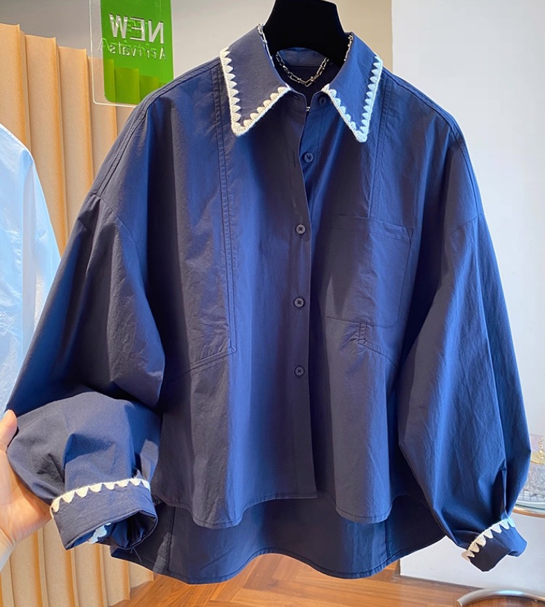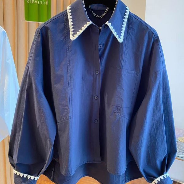 Be the first to review “Autumn New Style Korean Style Embroidery Color Block Splicing Turn-Down Collar Long Sleeve Shirt Women’s By age Loose Fit Slimming Shirt Top”