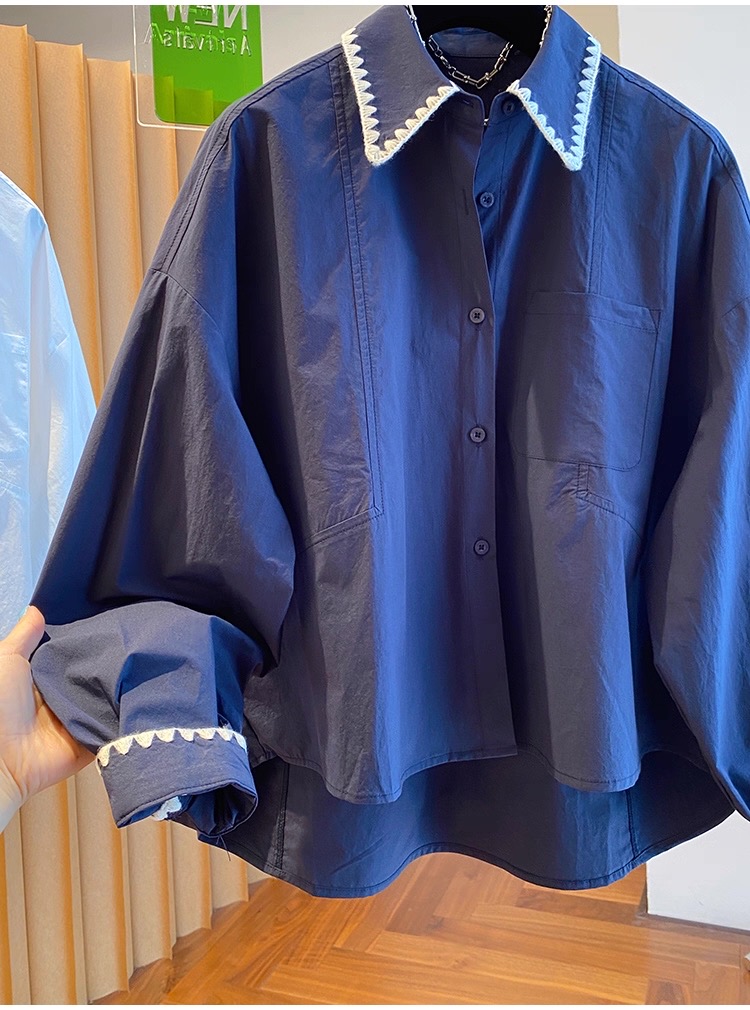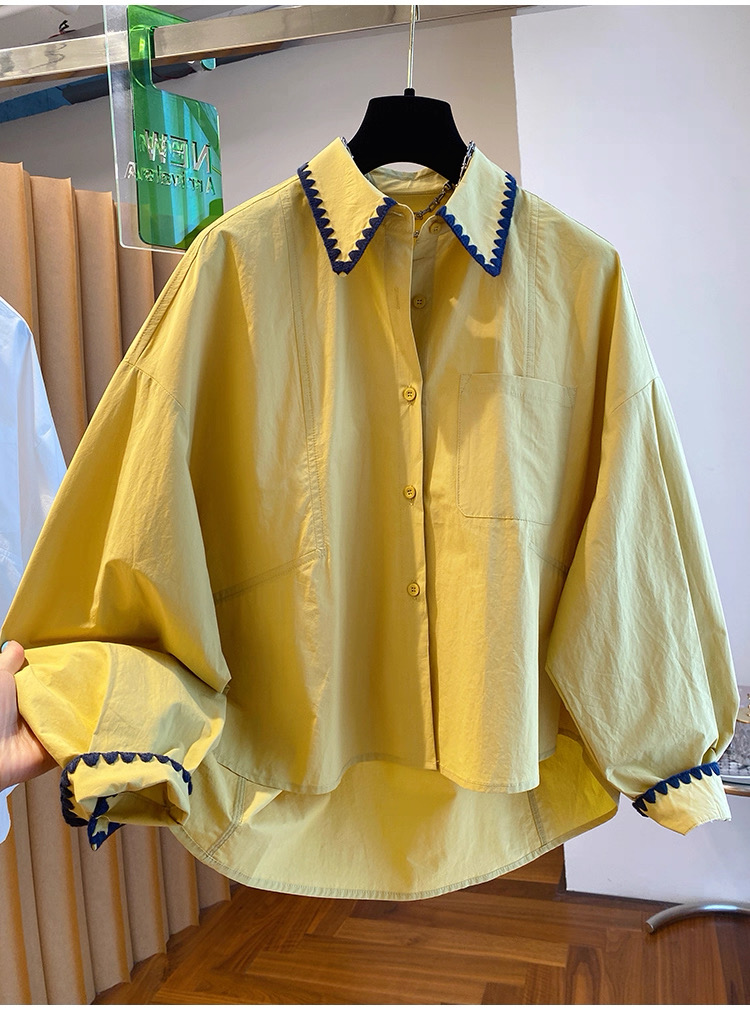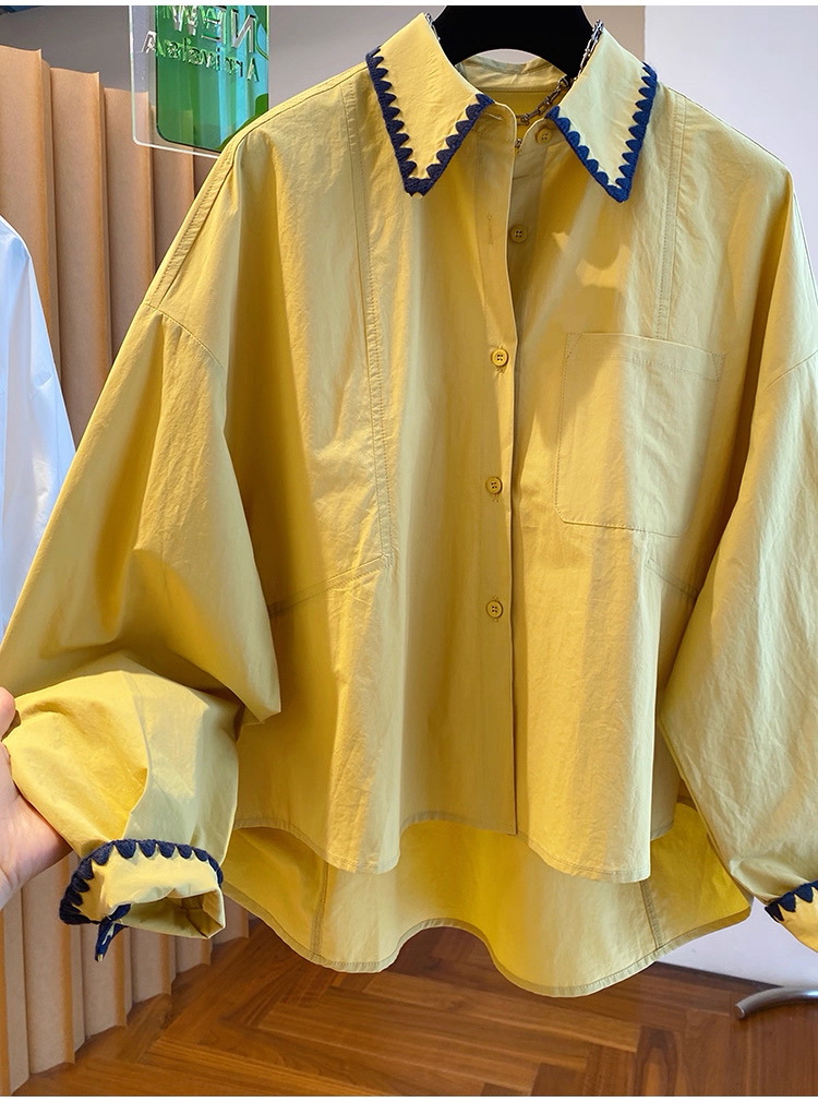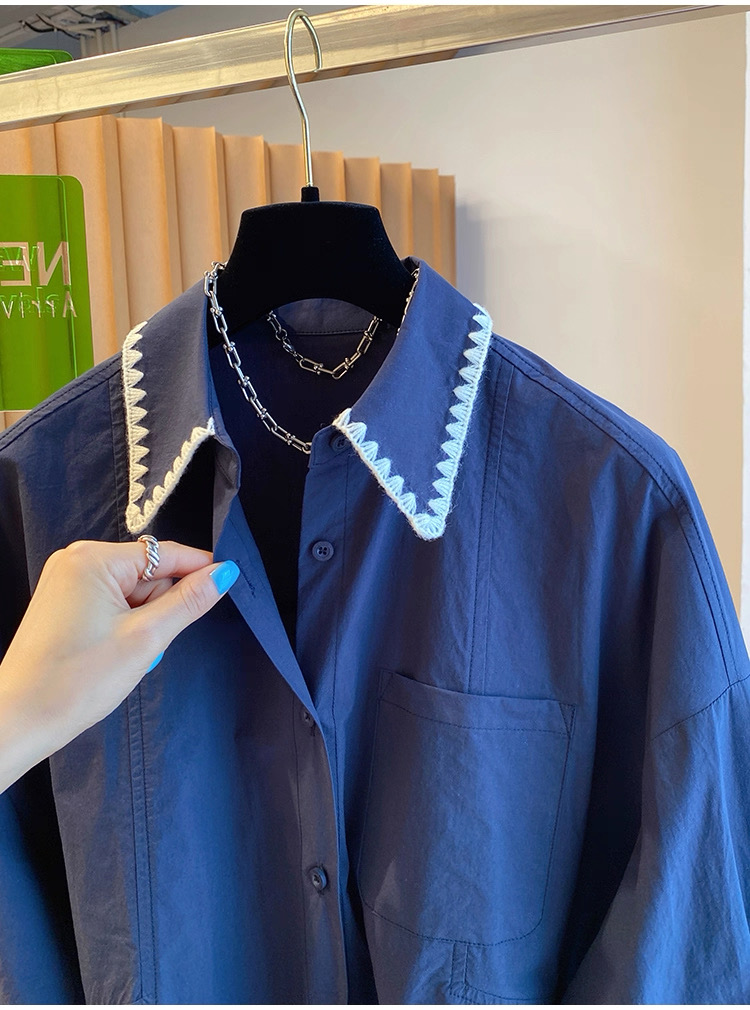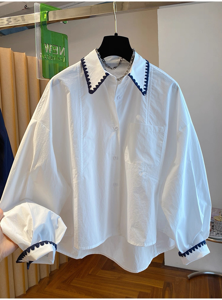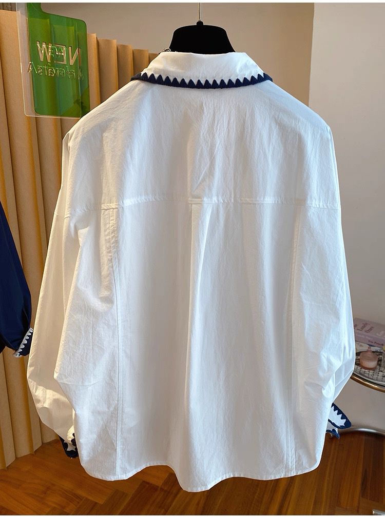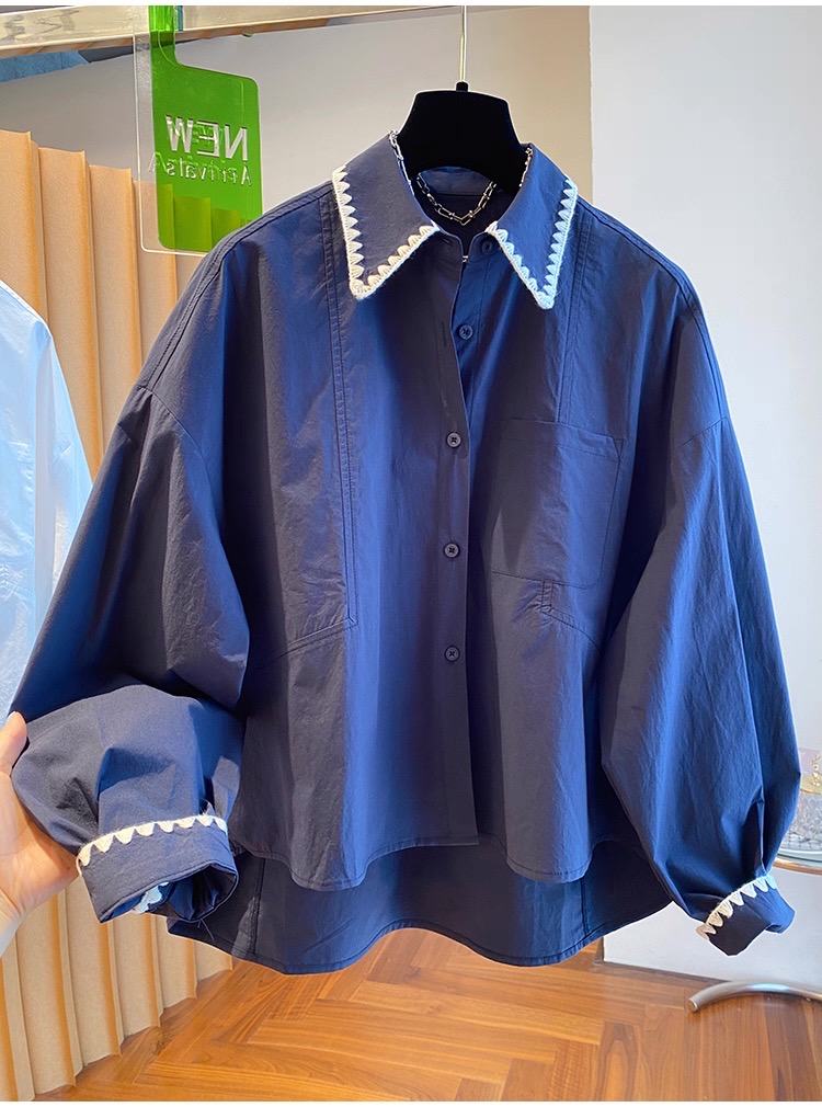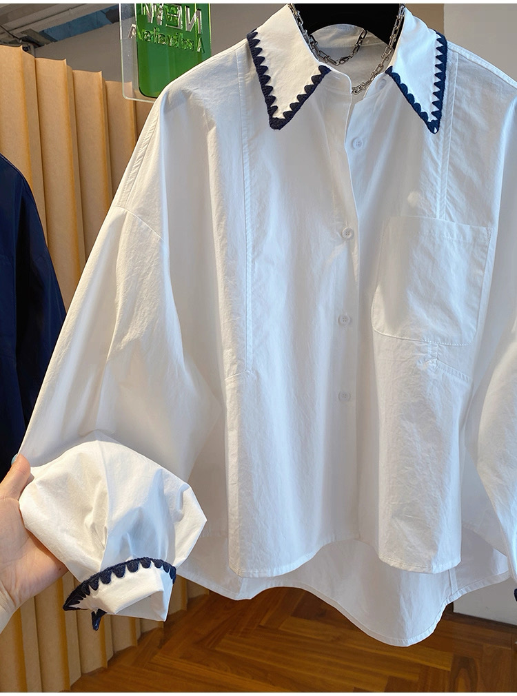Be the first to review “Autumn New Style Korean Style Embroidery Color Block Splicing Turn-Down Collar Long Sleeve Shirt Women’s By age Loose Fit Slimming Shirt Top”