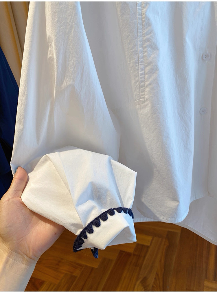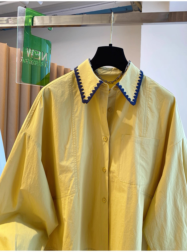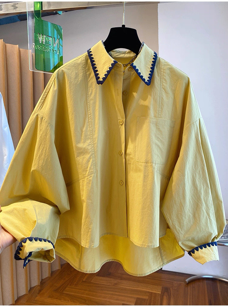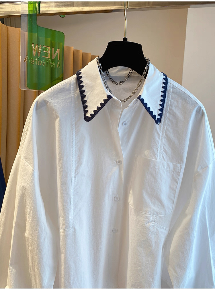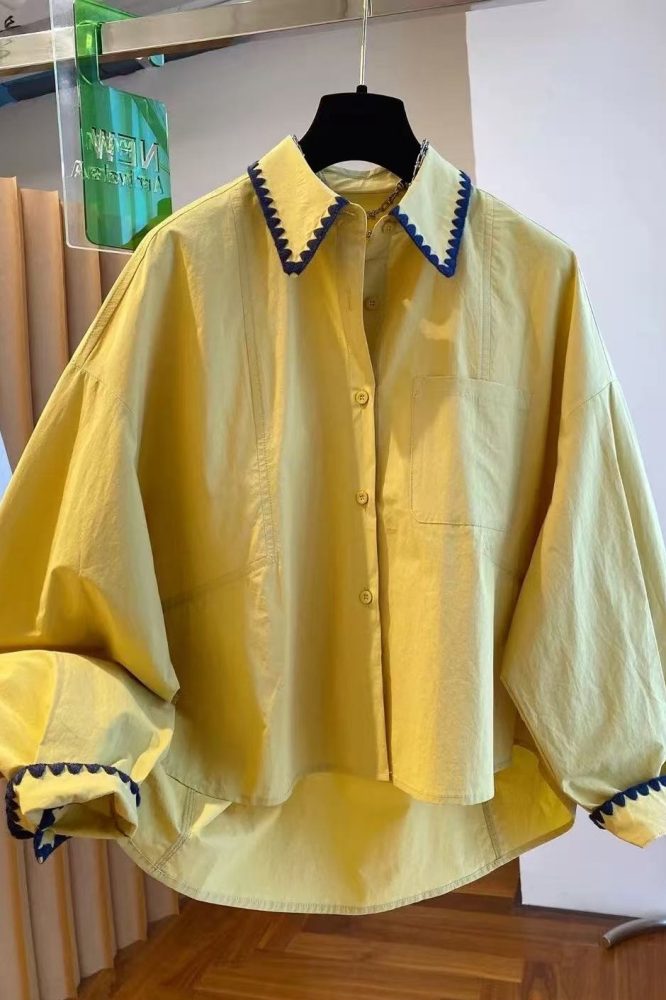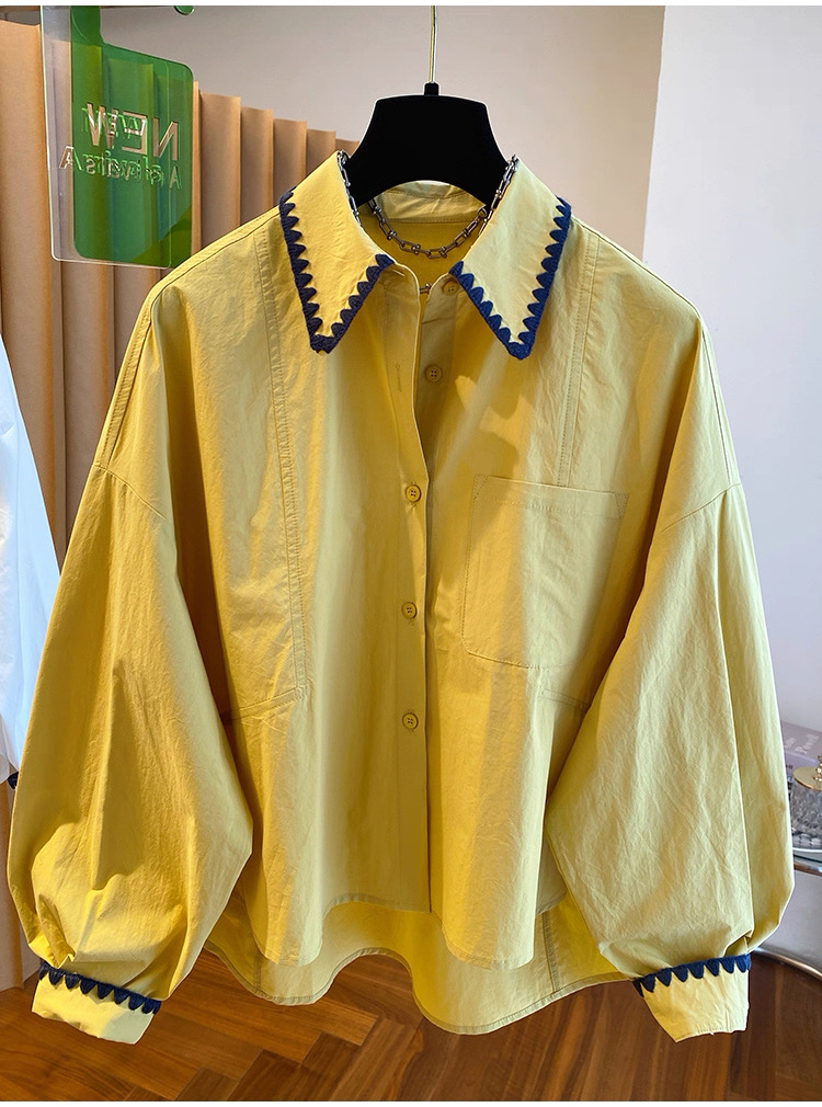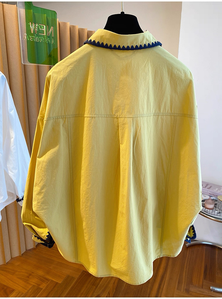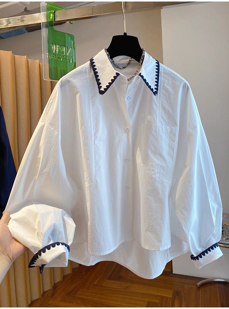 Be the first to review “Autumn New Style Korean Style Embroidery Color Block Splicing Turn-Down Collar Long Sleeve Shirt Women’s By age Loose Fit Slimming Shirt Top”