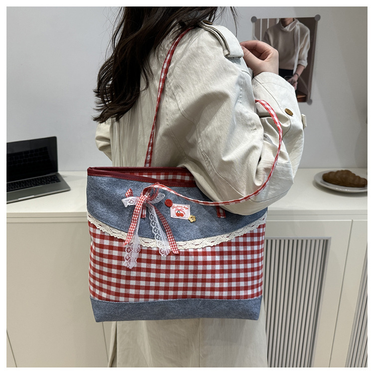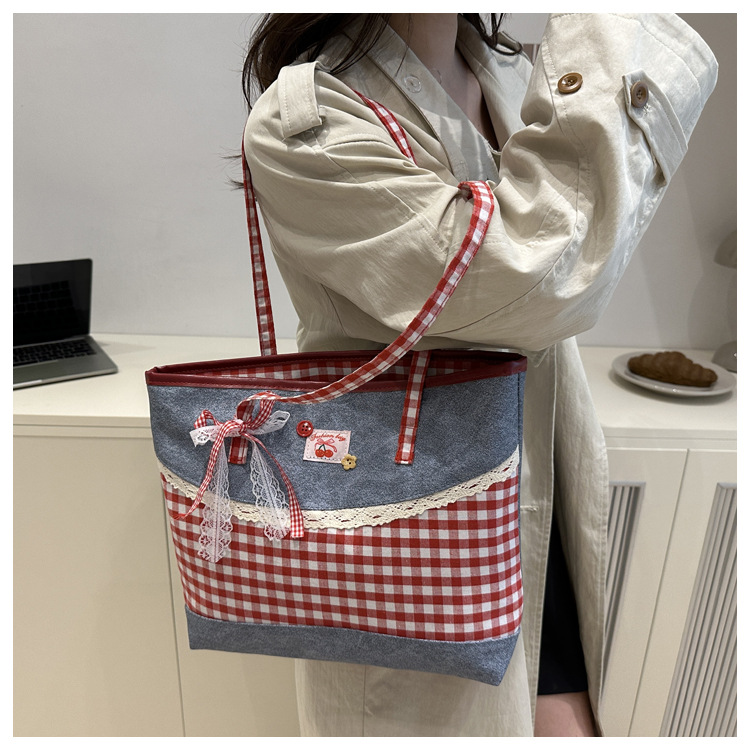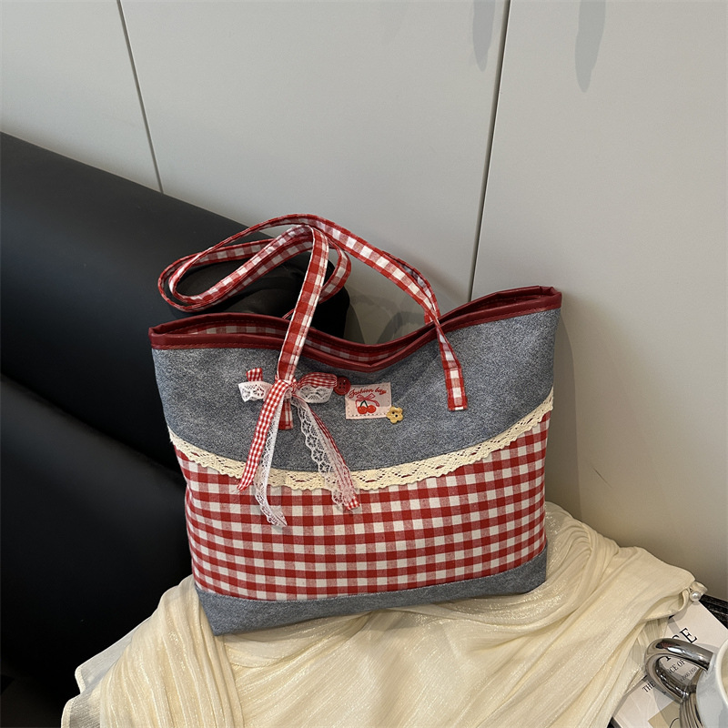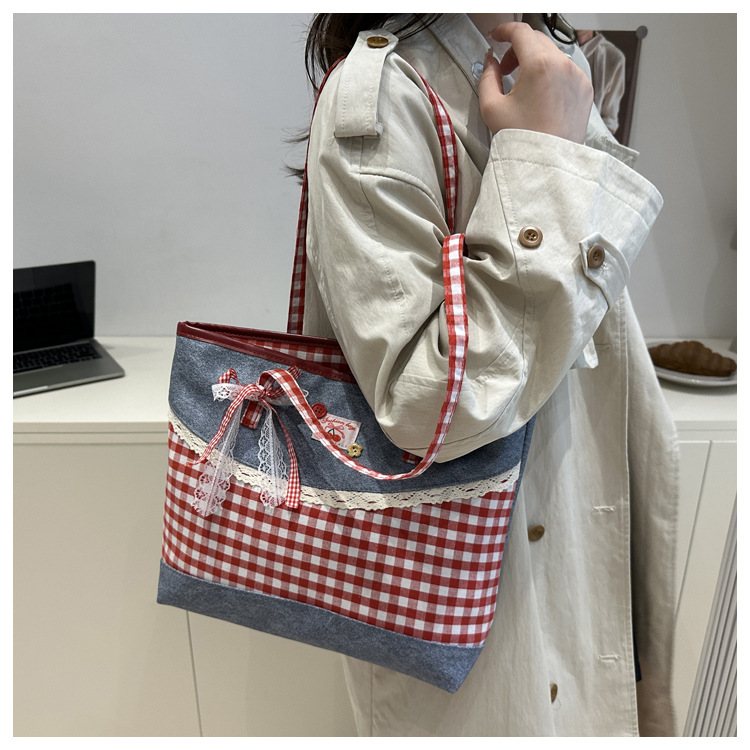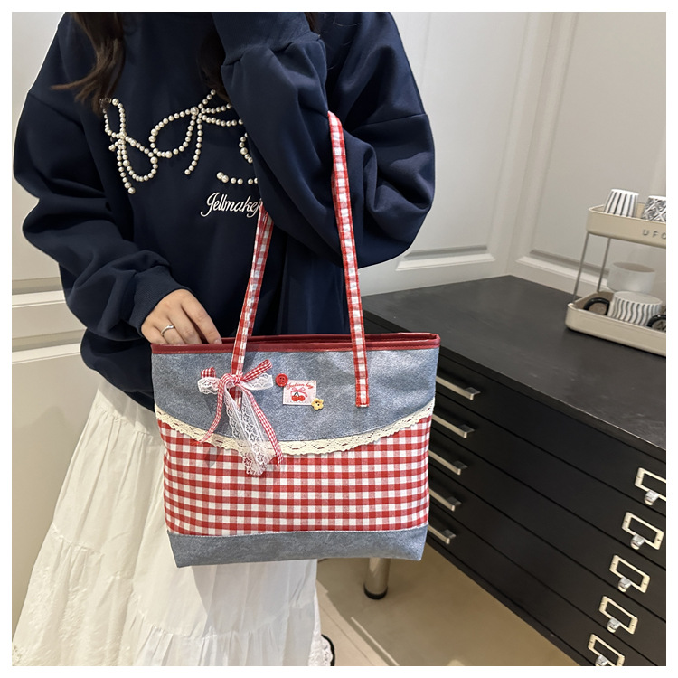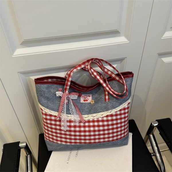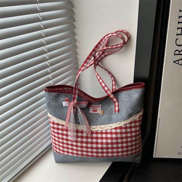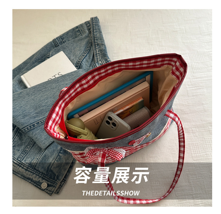 Casual Plaid Underarm Bags Women Fashion Trendy Sweet Bow Single Shoulder