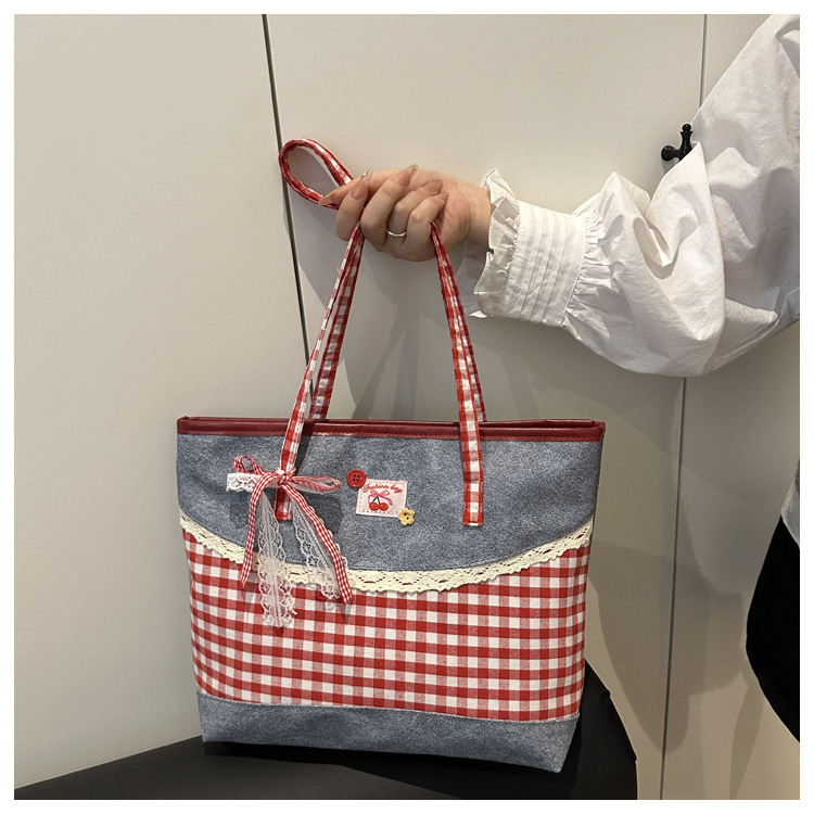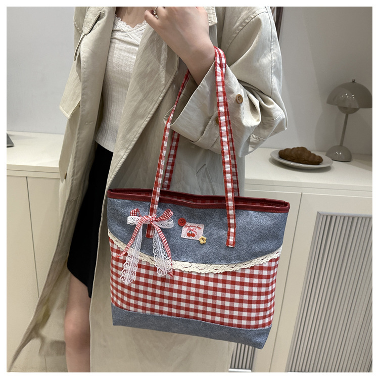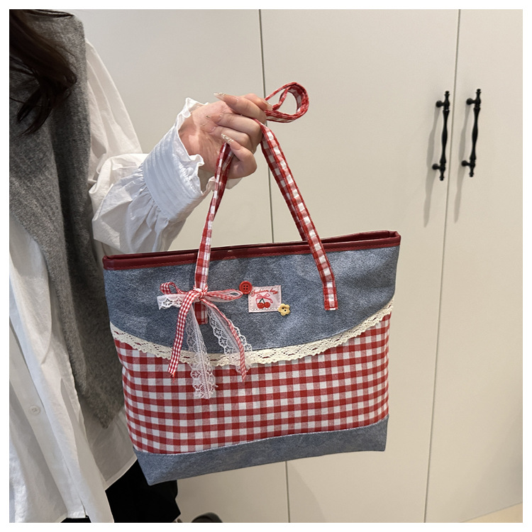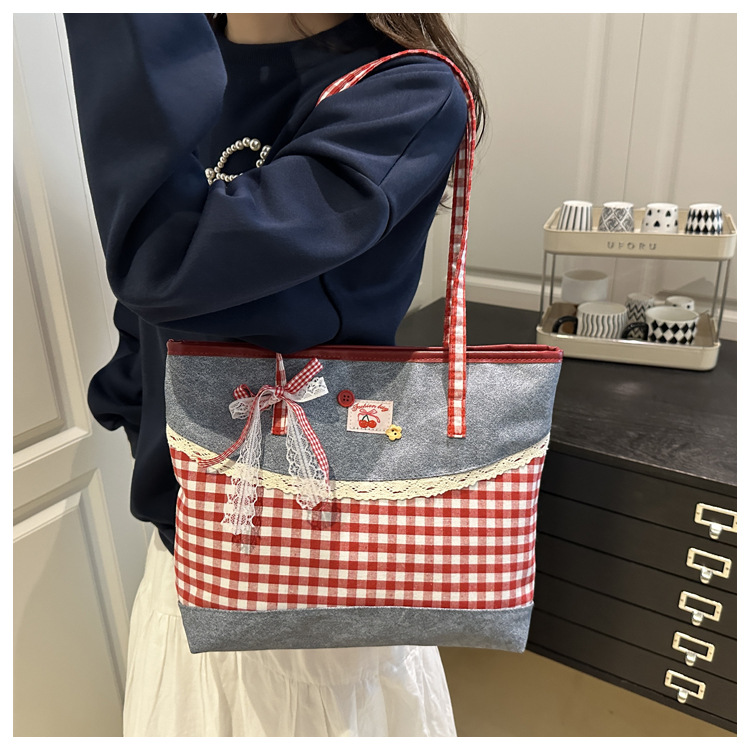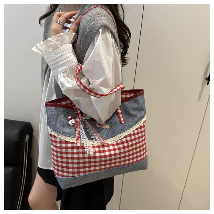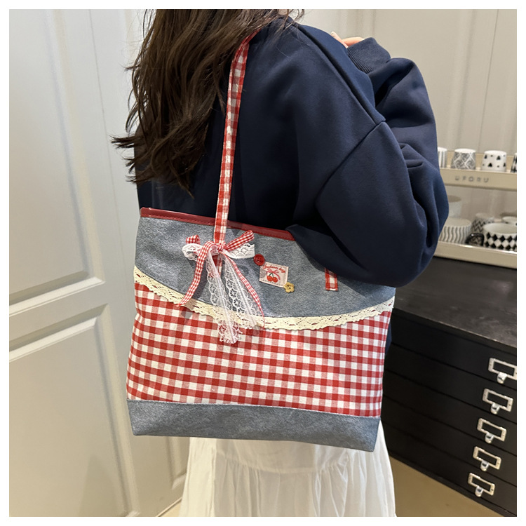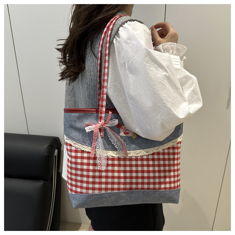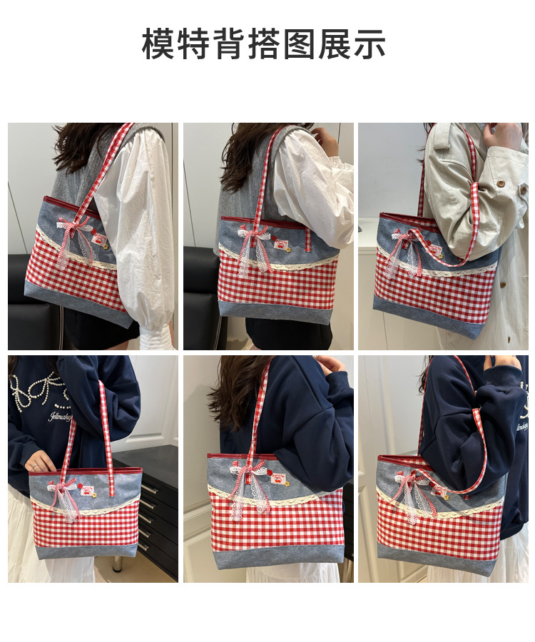 Casual Plaid Underarm Bags Women Fashion Trendy Sweet Bow Single Shoulder