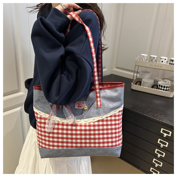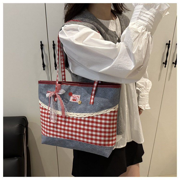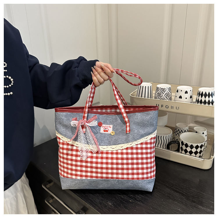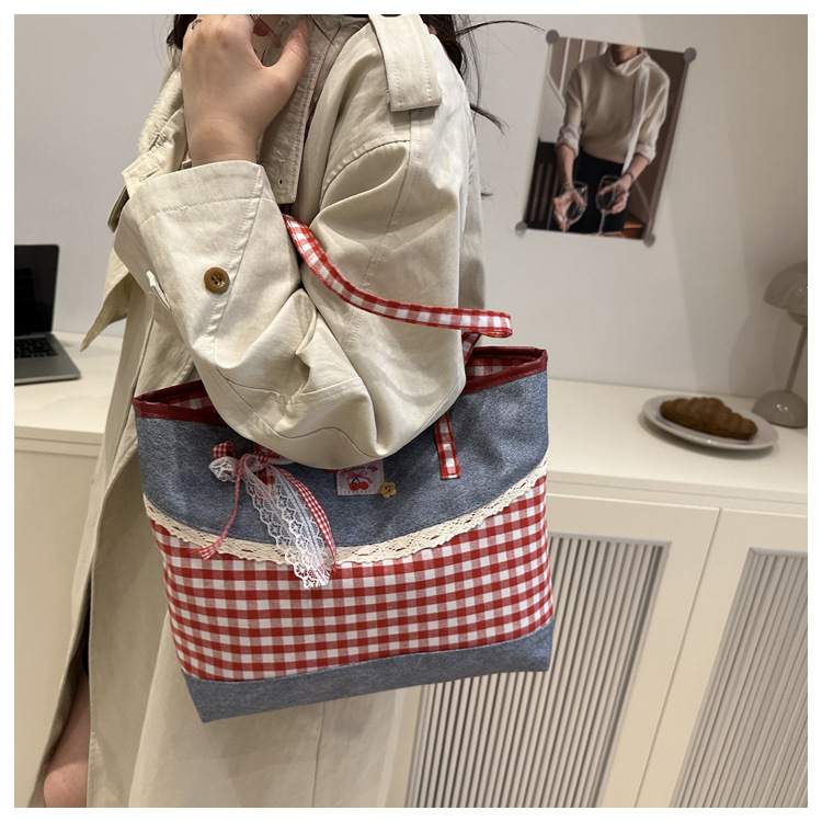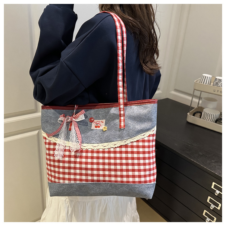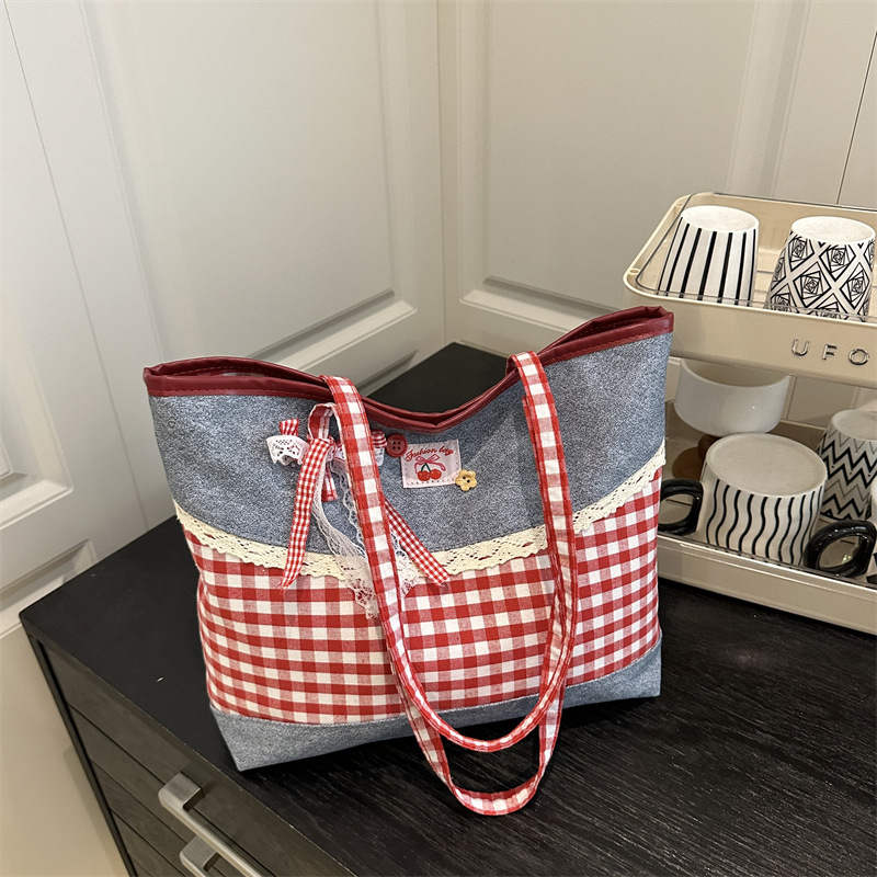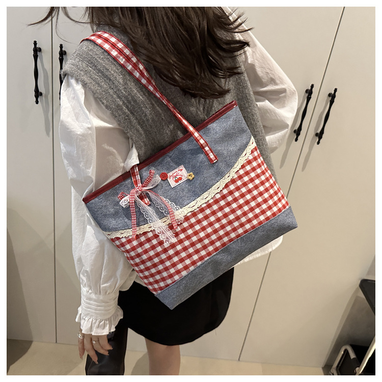 Casual Plaid Underarm Bags Women Fashion Trendy Sweet Bow Single Shoulder