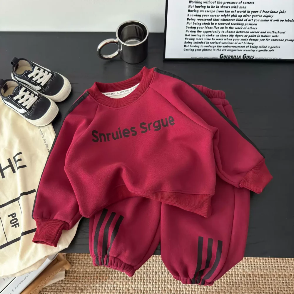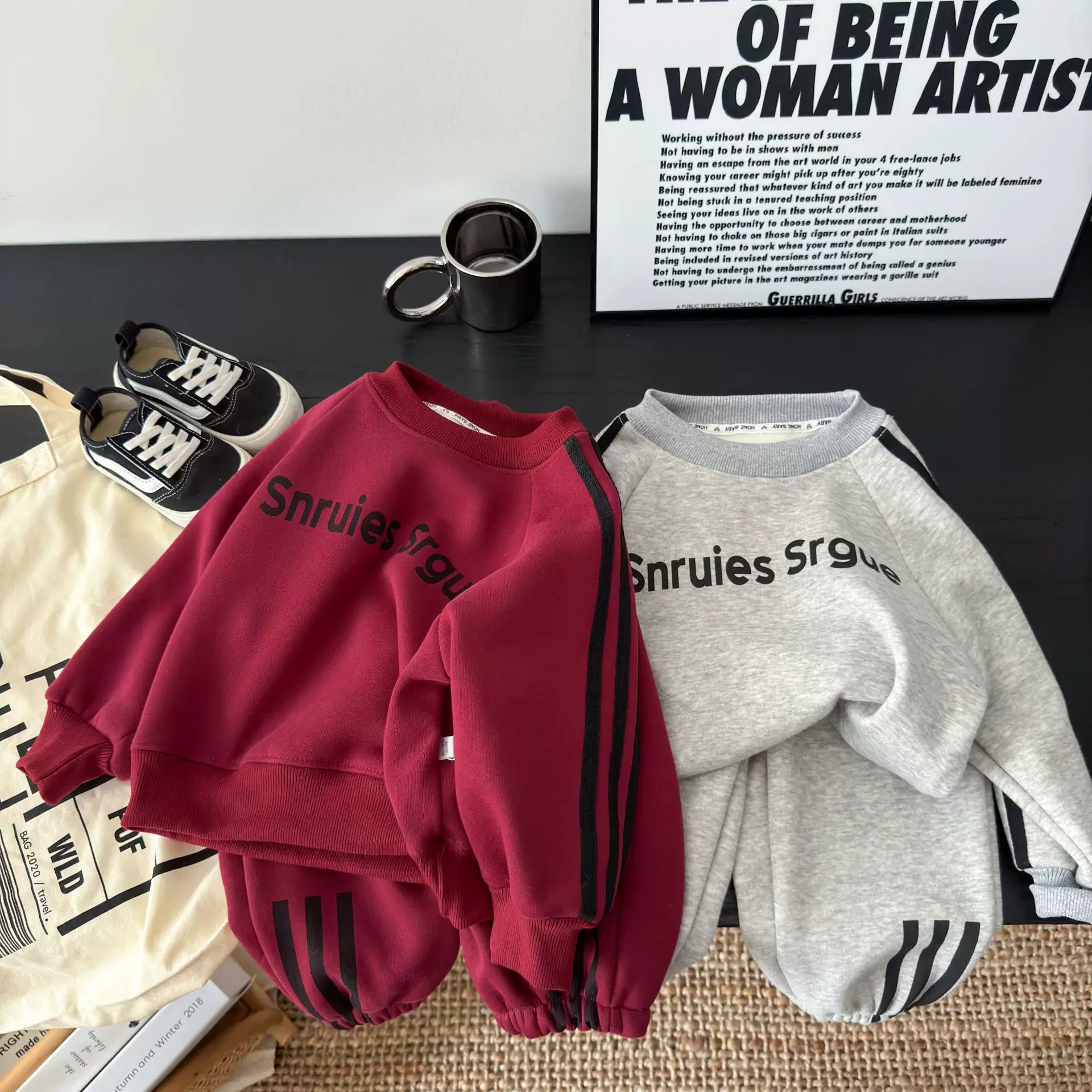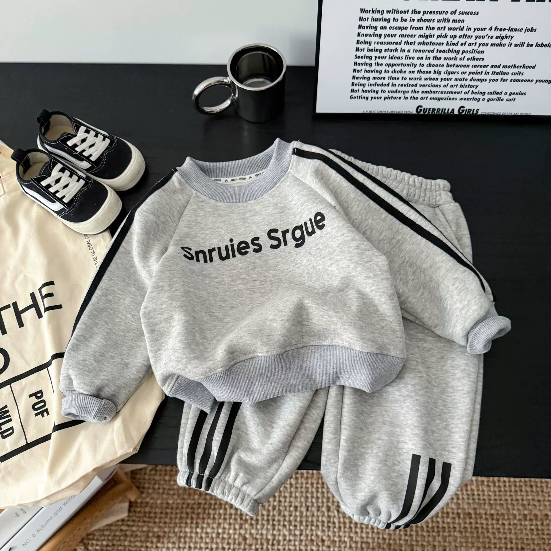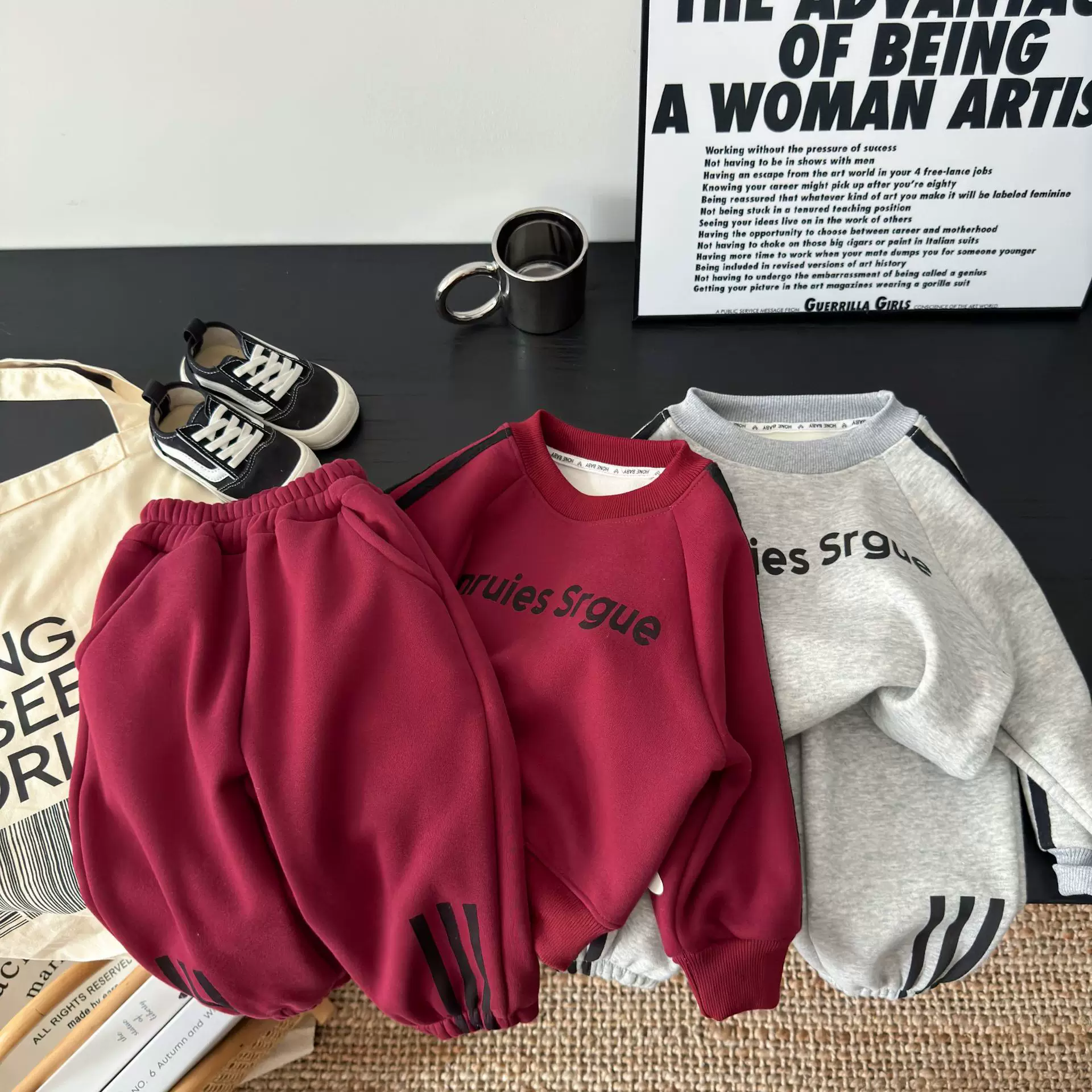Children’s fleece sweatshirt set 2025 new autumn and winter sports and leisure sweatshirt and sweatpants two-piece set for boys and girls