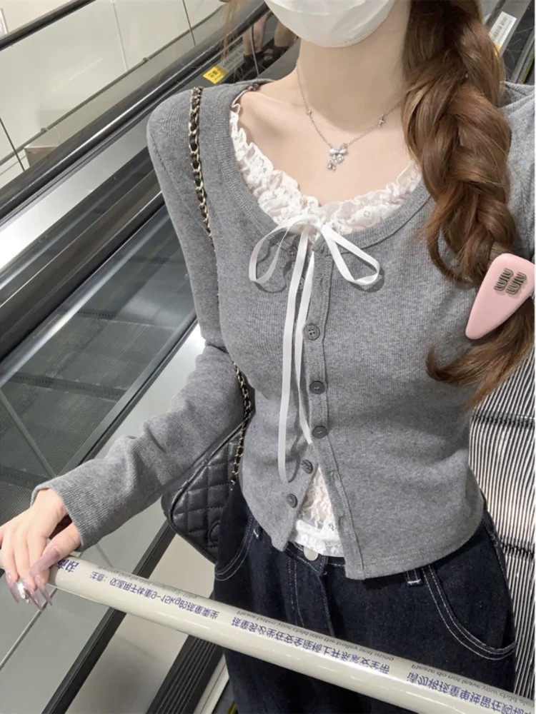 T-shirt slimming fake two-piece long-sleeved bottoming shirt tops for women