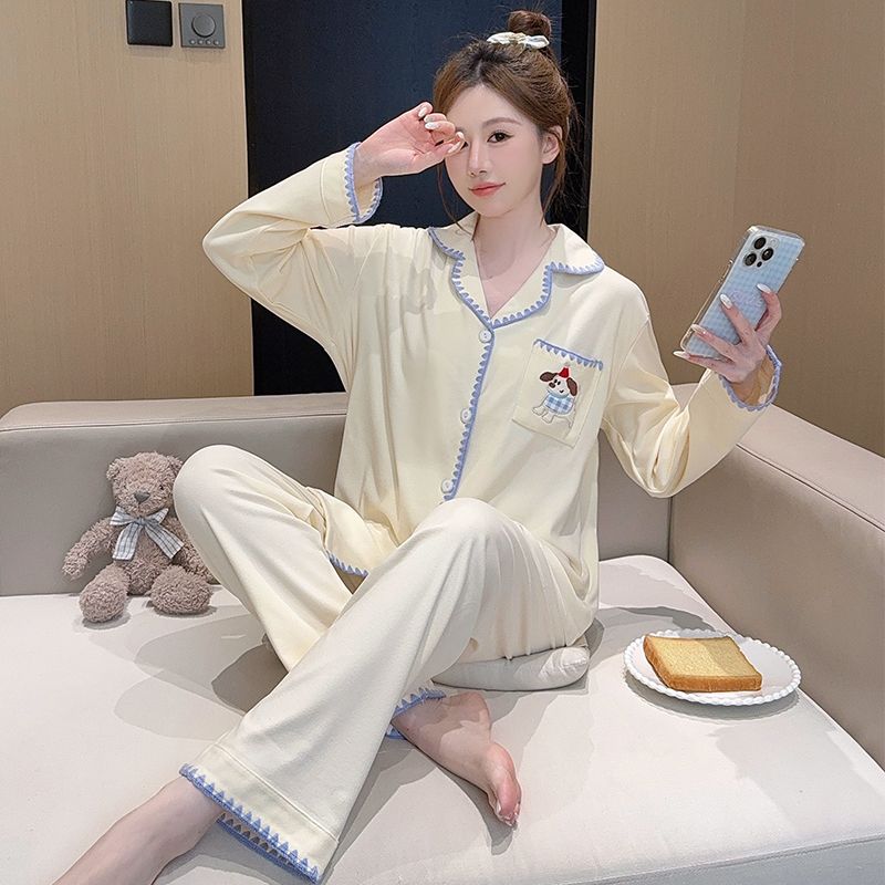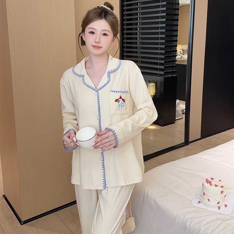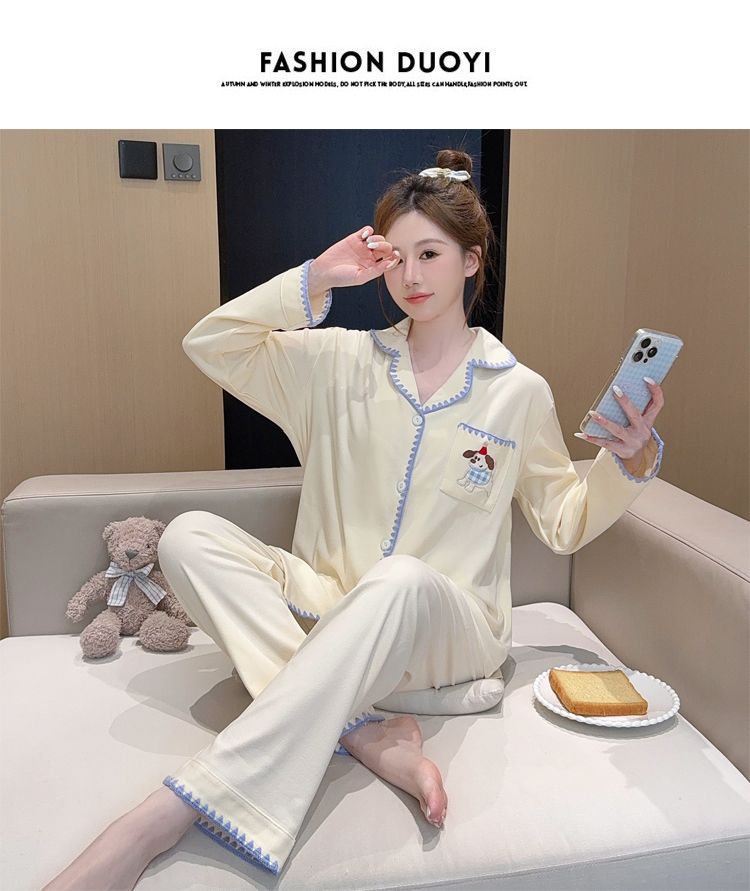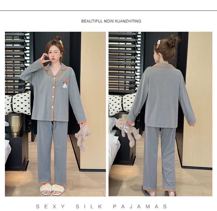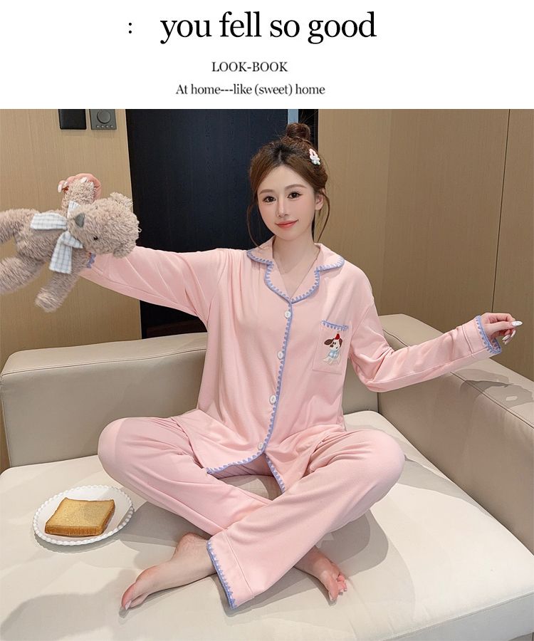 De Velvet Pajamas Women Autumn and Winter Season Sweet Cardigan Long Sleeve Long Pants Home Service Set