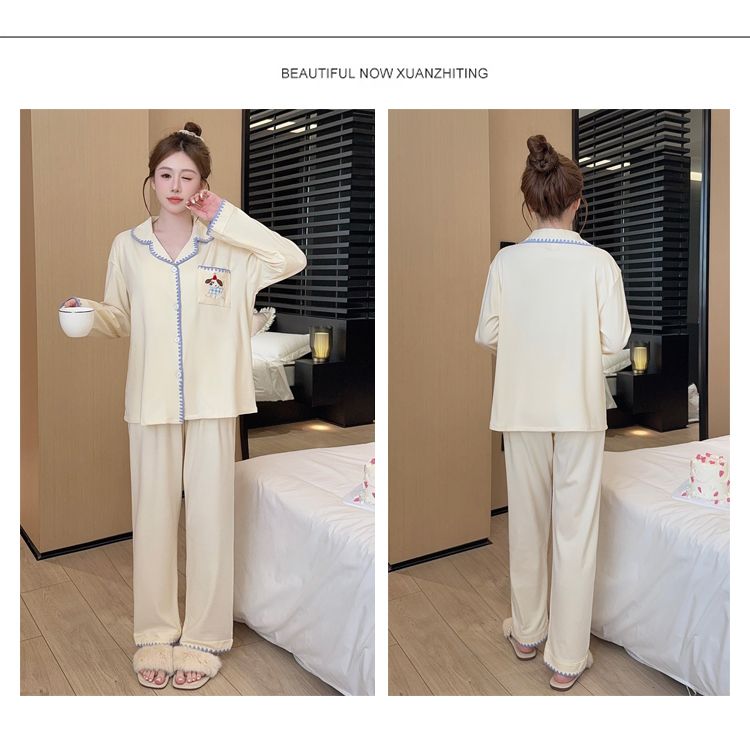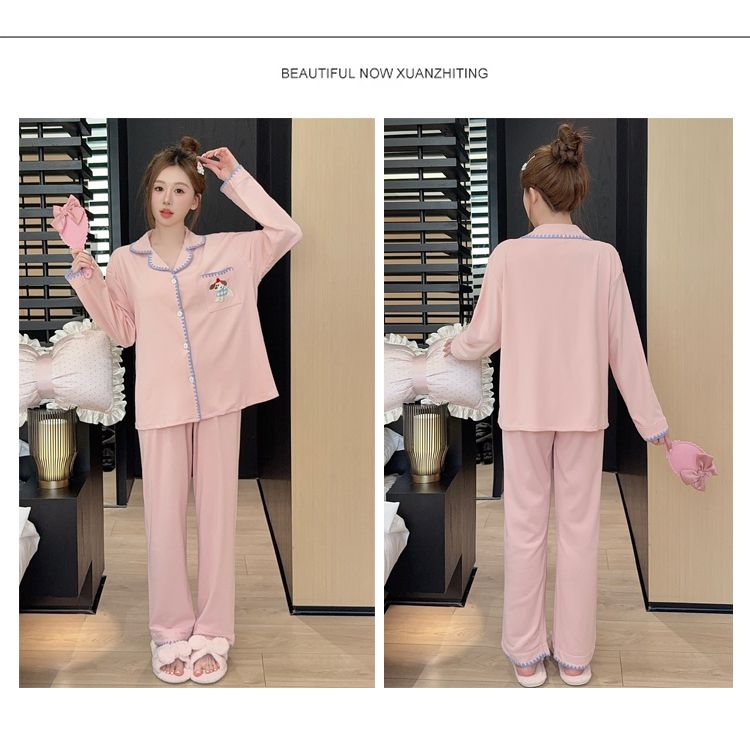 Be the first to review “De Velvet Pajamas Women Autumn and Winter Season Sweet Cardigan Long Sleeve Long Pants Home Service Set”