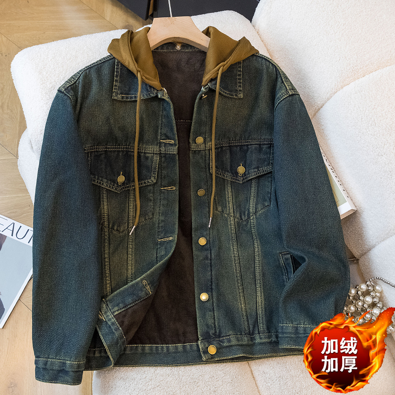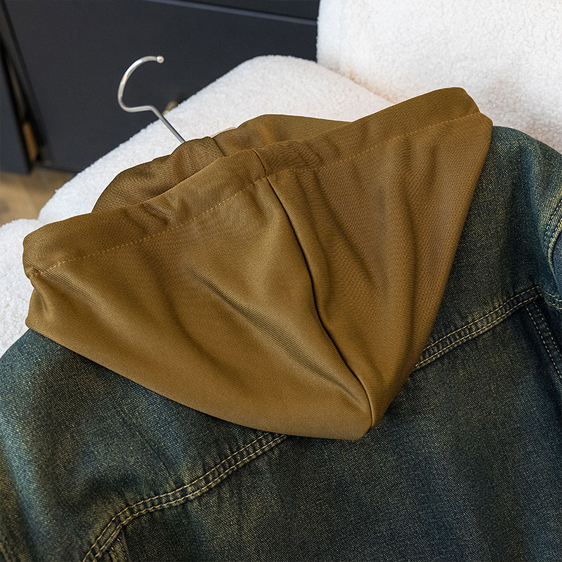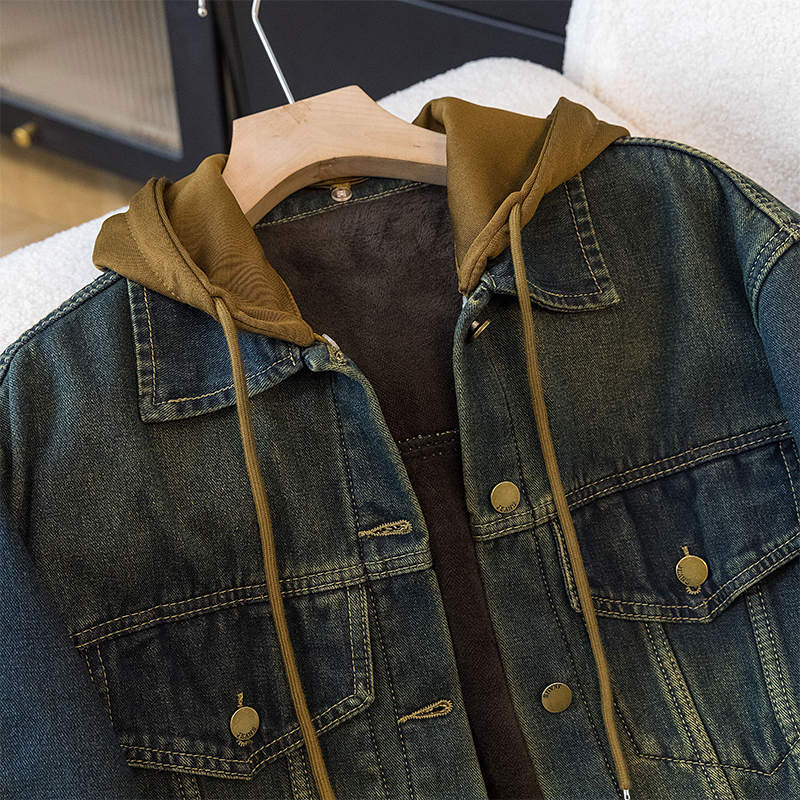 Denim Hooded Coat Fleece-Lined and Thickened Comfortable