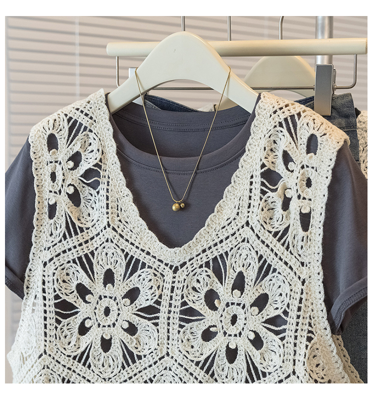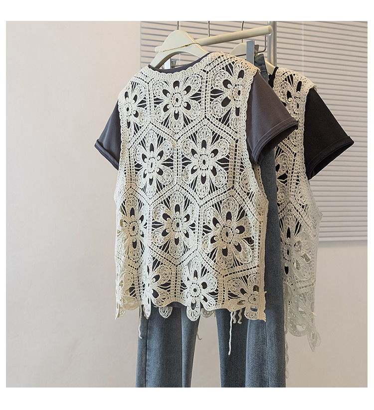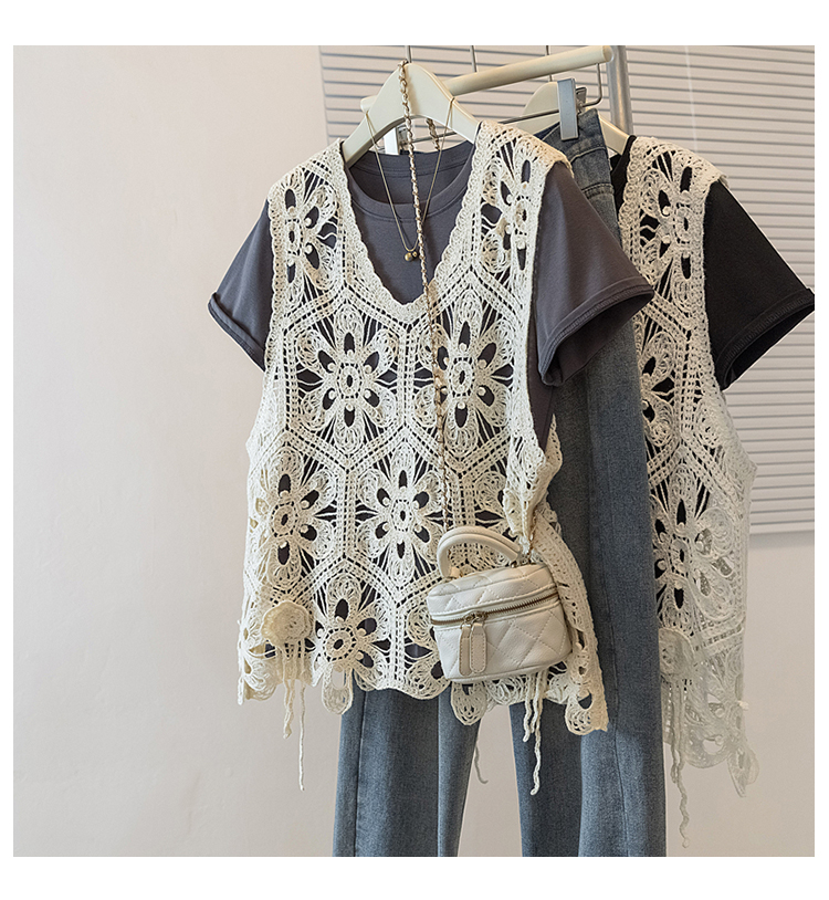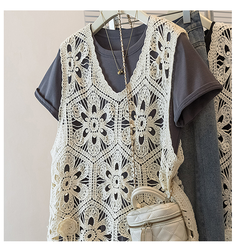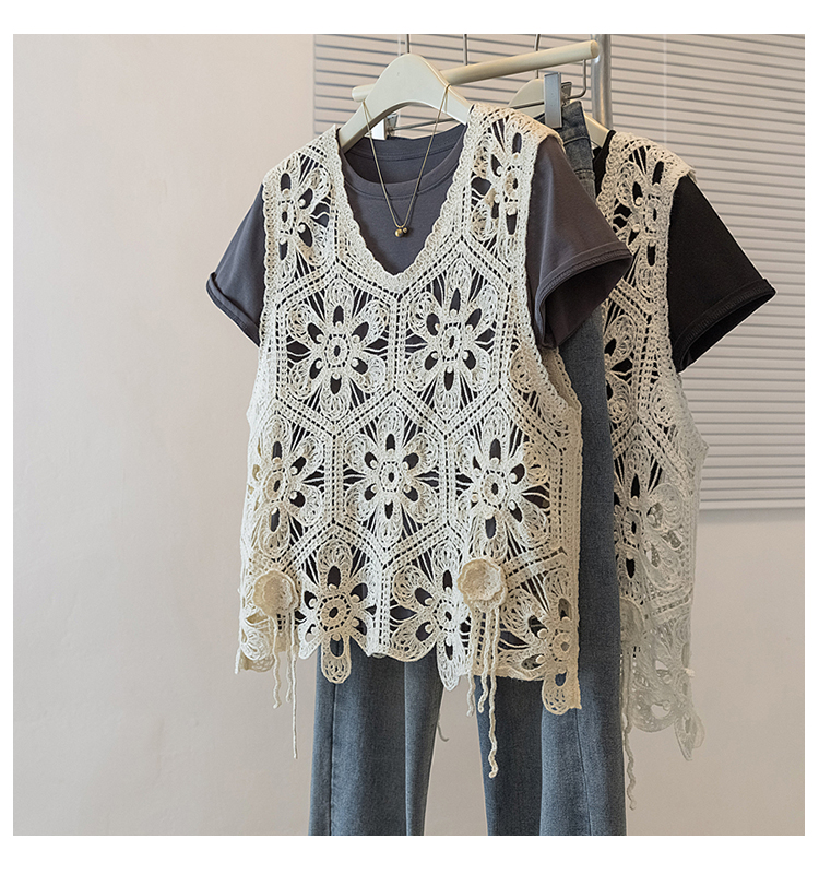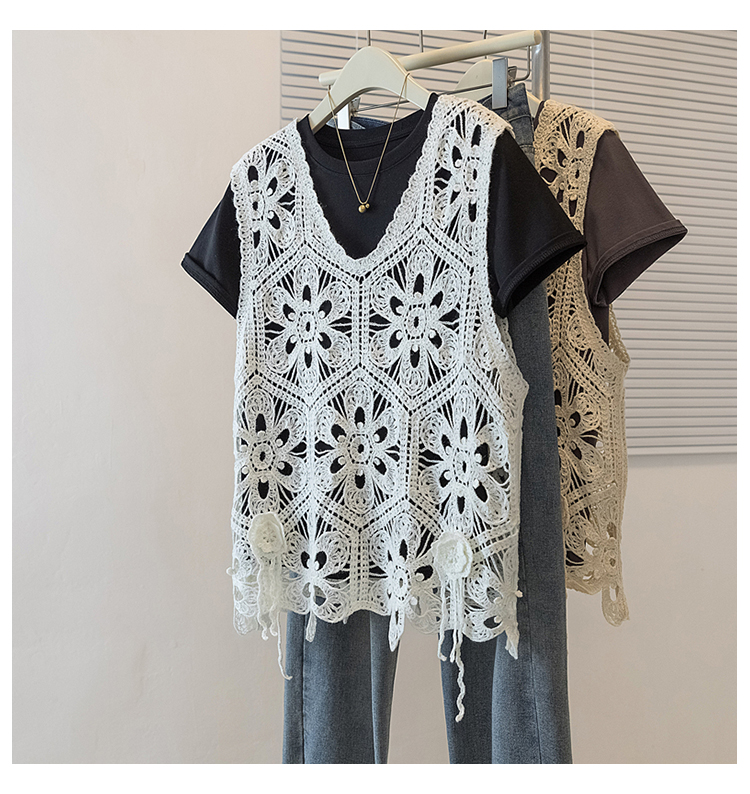 | Color | Vest Apricot, Vest White, Black T, Gray T |