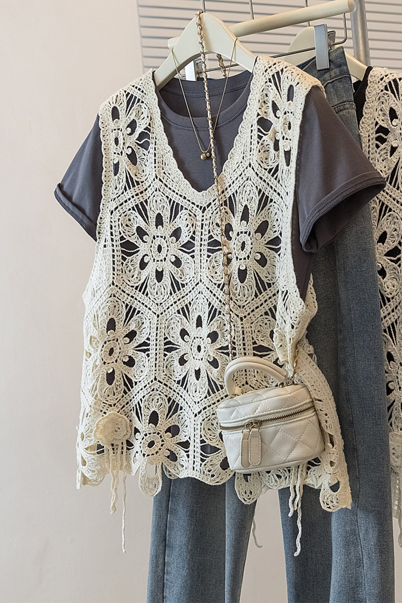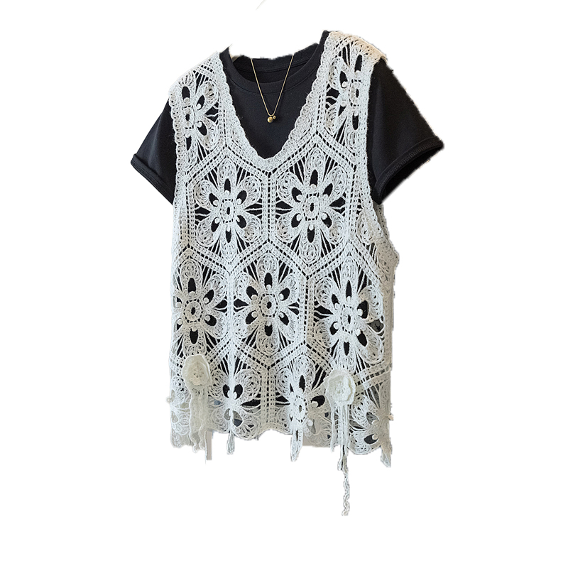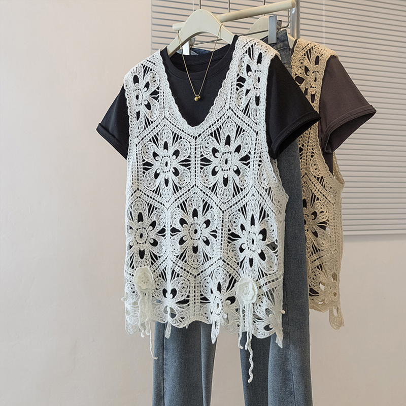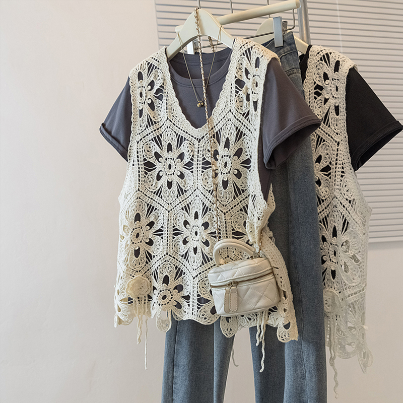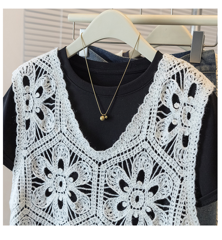 | Color | Vest Apricot, Vest White, Black T, Gray T |