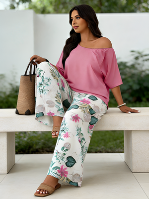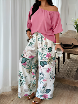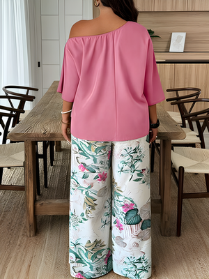 Be the first to review “Elegant Casual Printed Asymmetrical Top And Tropical Plants Printed Long Pants”