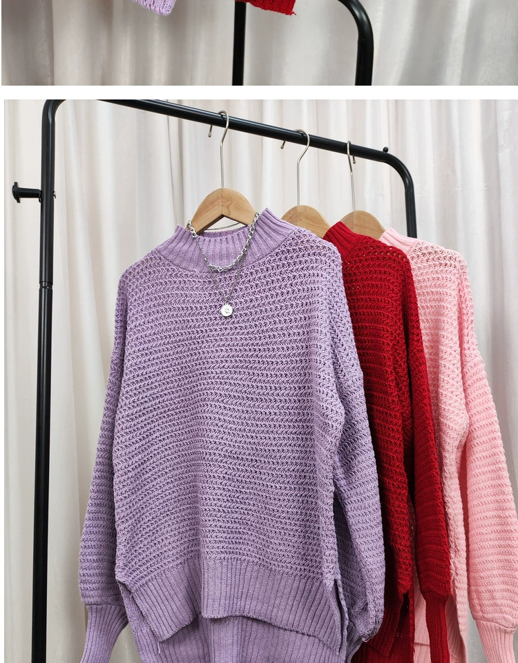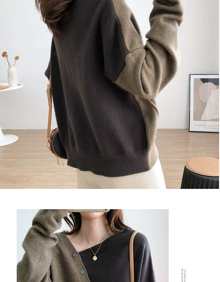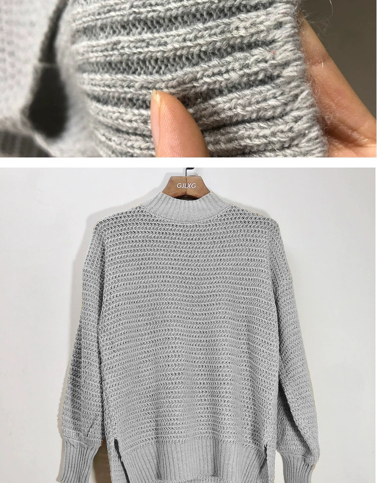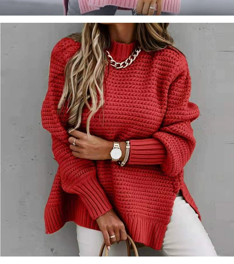 European and American autumn women’s twist thread loose and versatile loose front short back long sleeve knit sweater