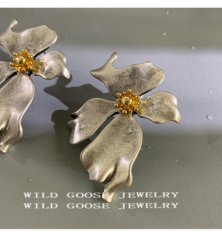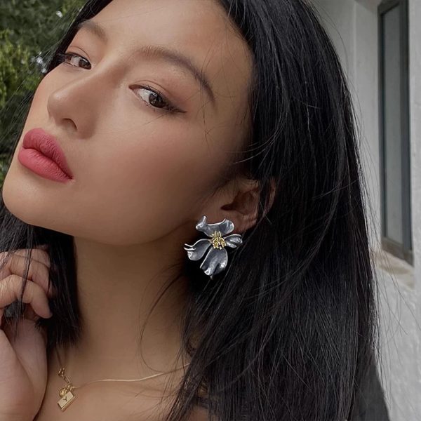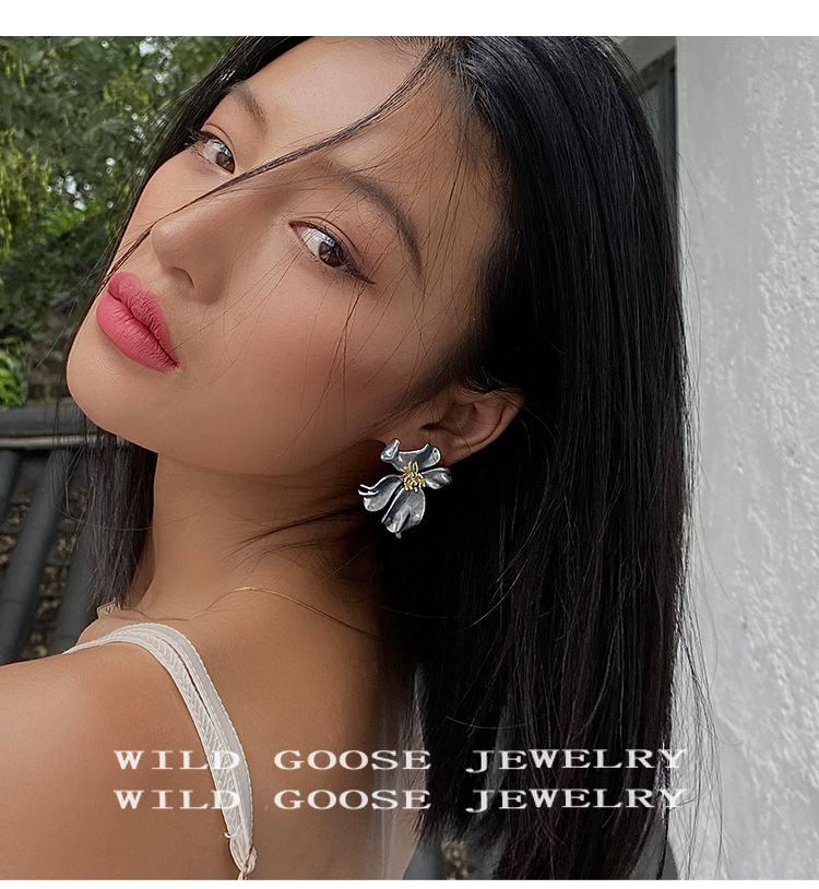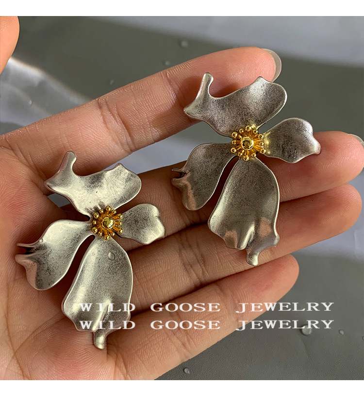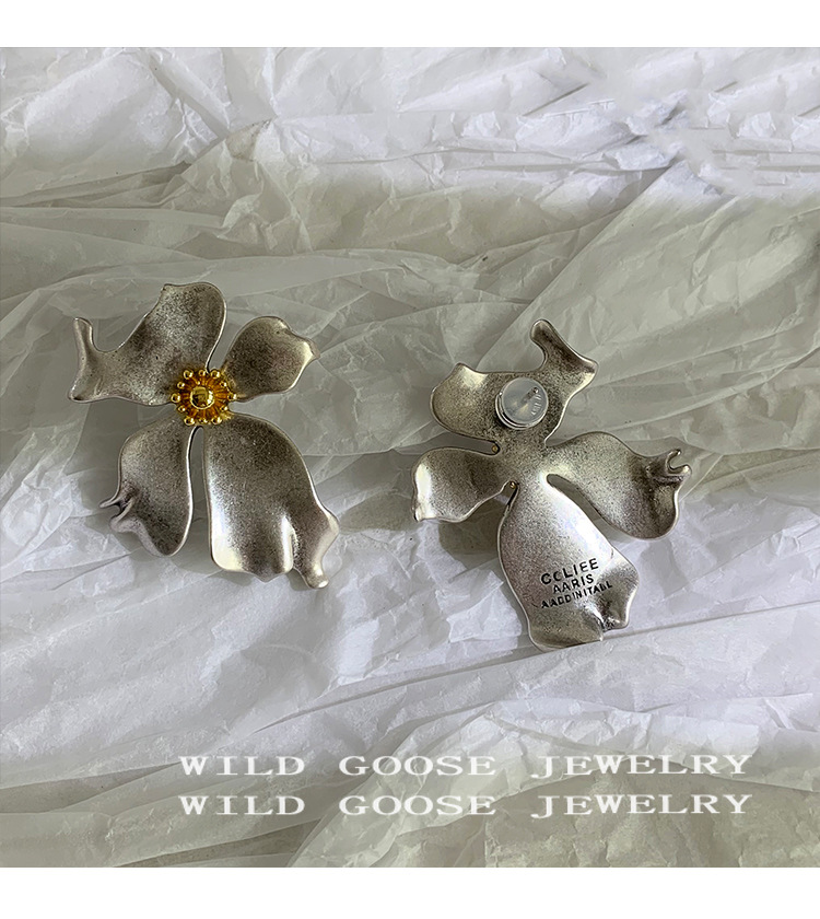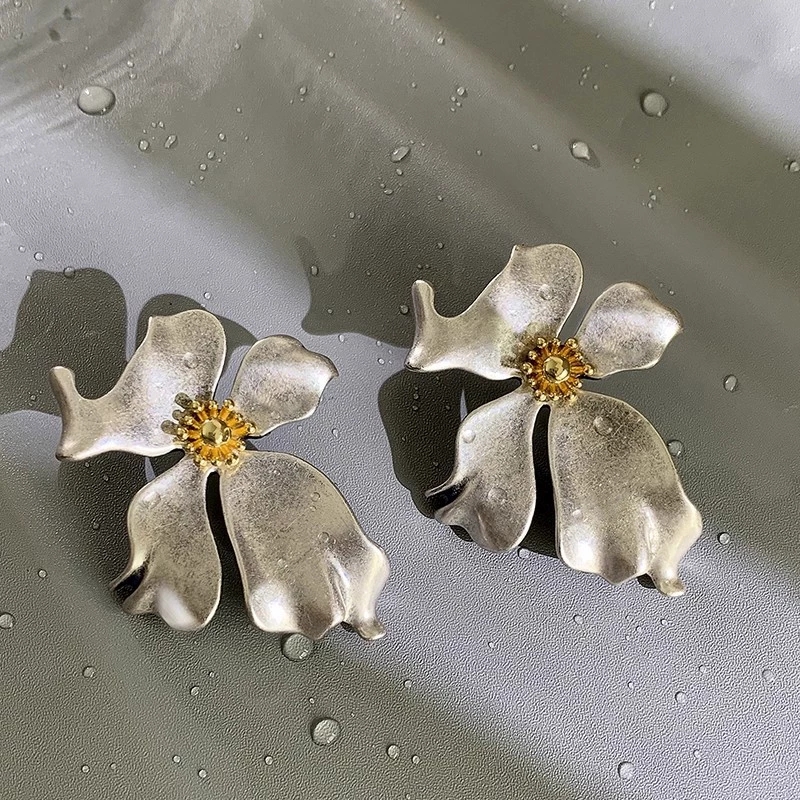 Exaggeration Large Flower Earrings Niche Design Vintage Ear Studs Silver Elegance Light Luxury Ear Accessories
