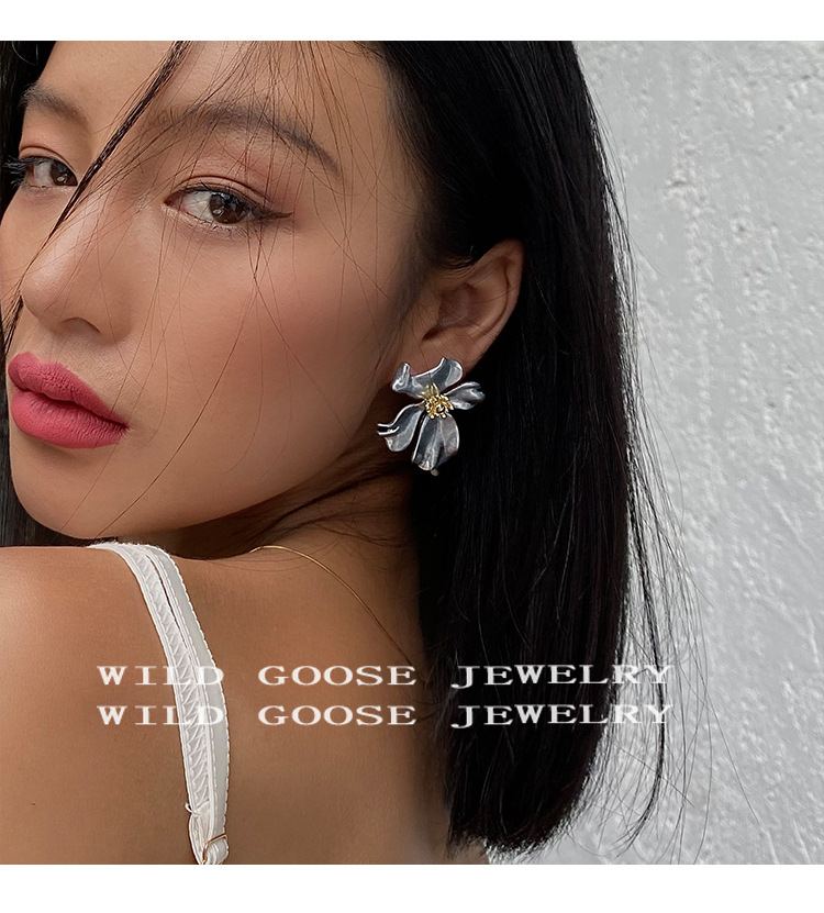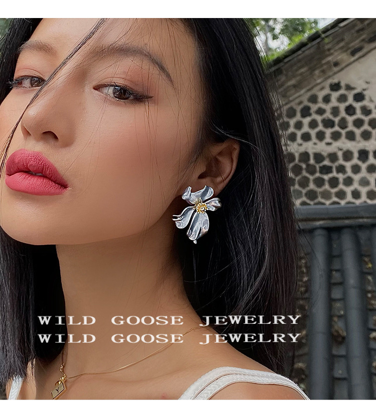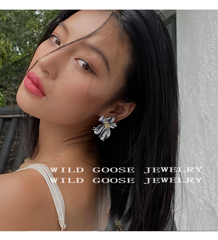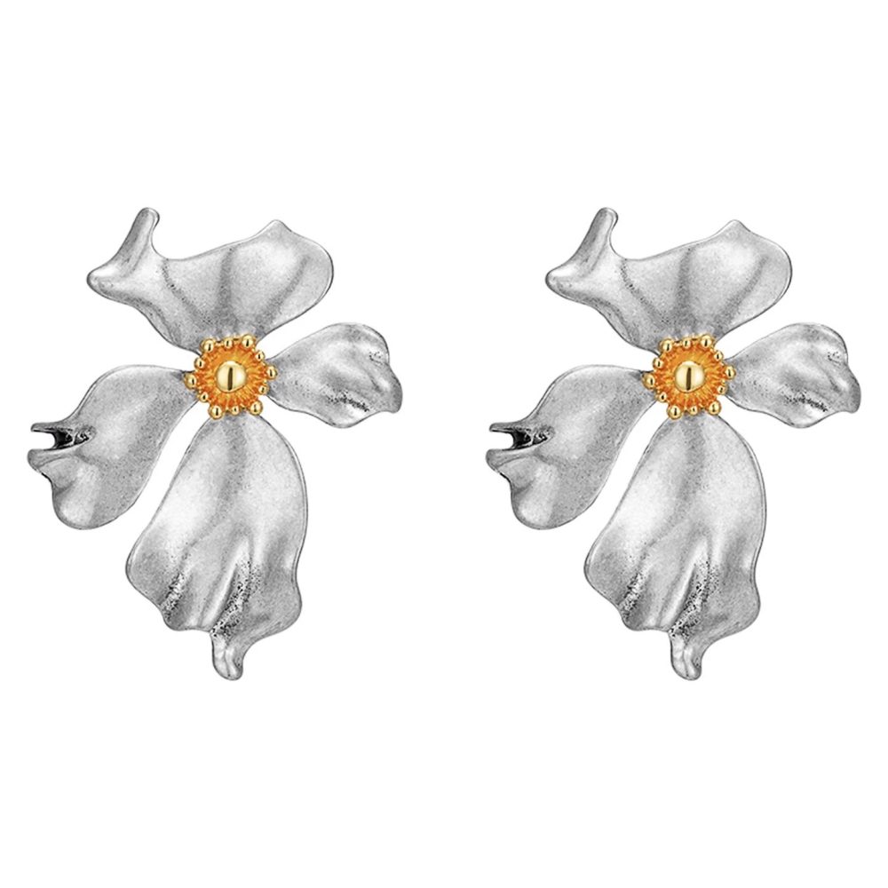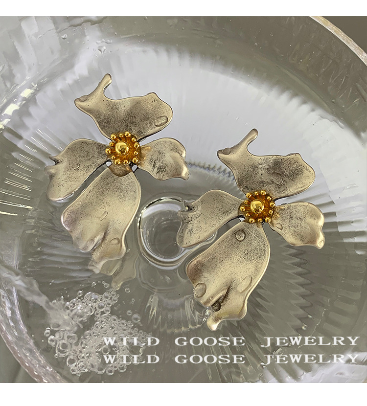 Exaggeration Large Flower Earrings Niche Design Vintage Ear Studs Silver Elegance Light Luxury Ear Accessories