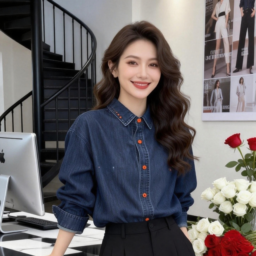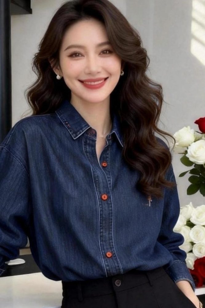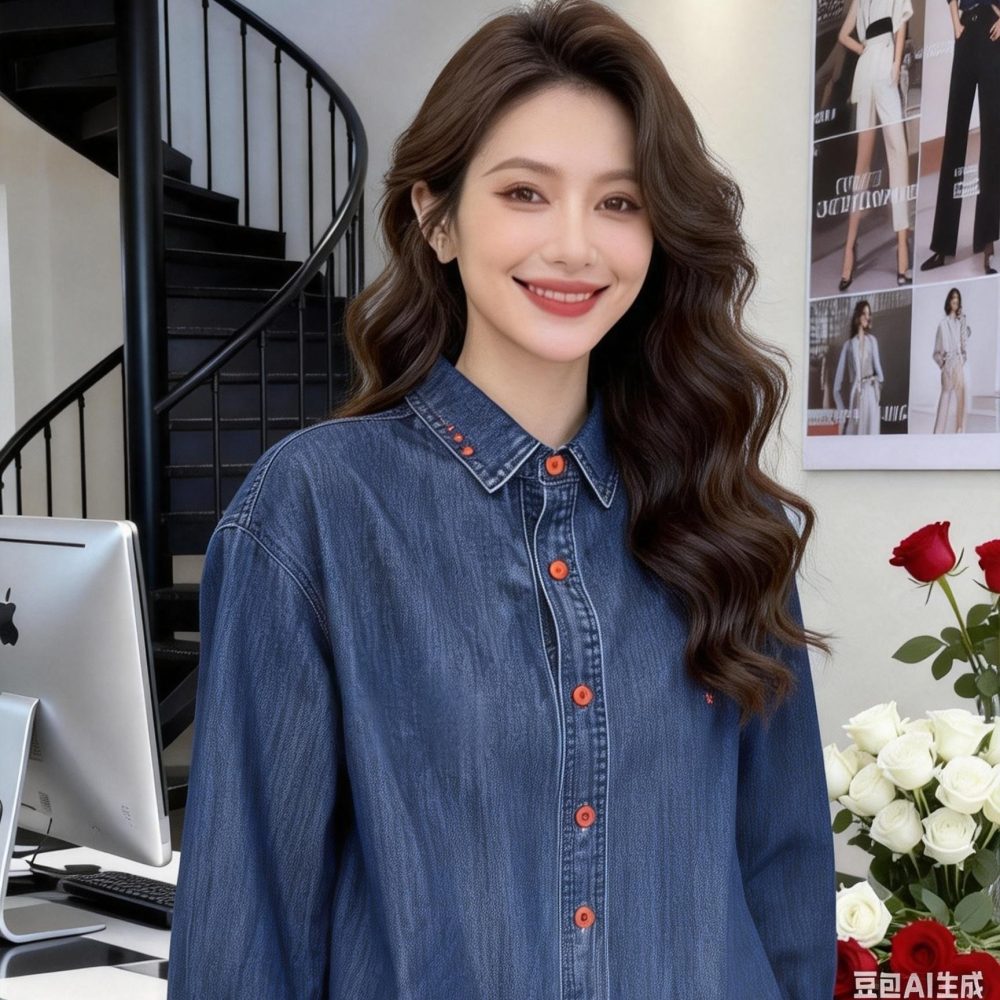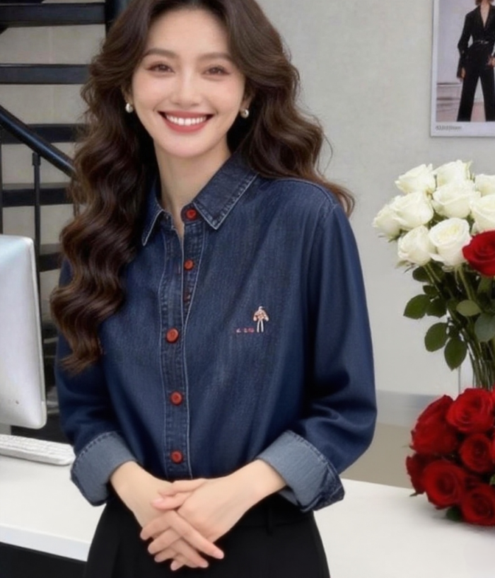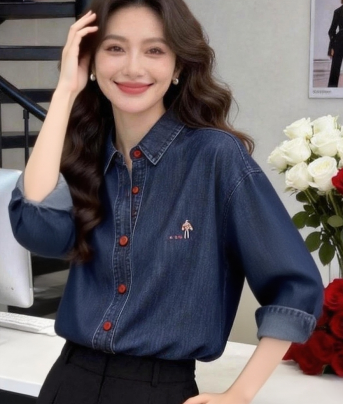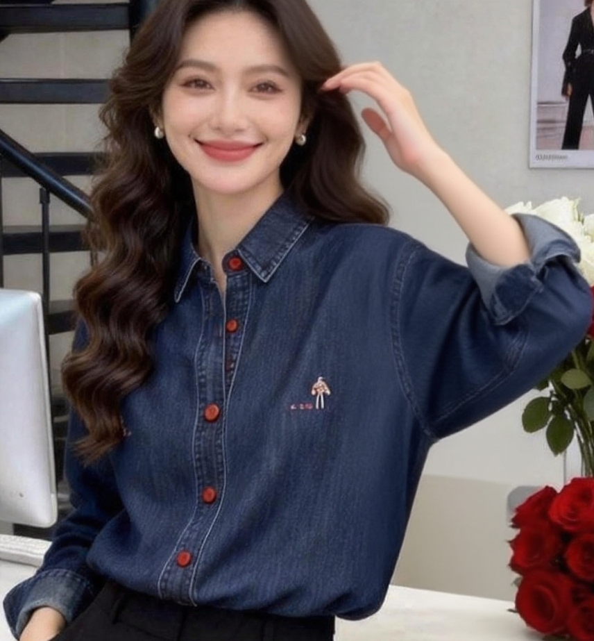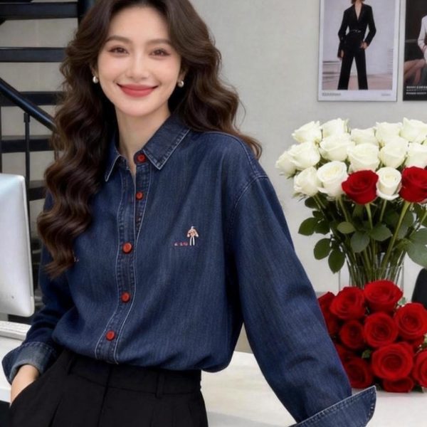 Be the first to review “Embroidery Character Cartoon Outerwear Dark blue Denim Shirt”