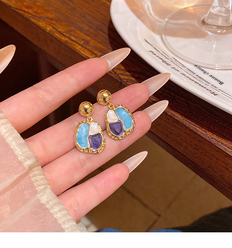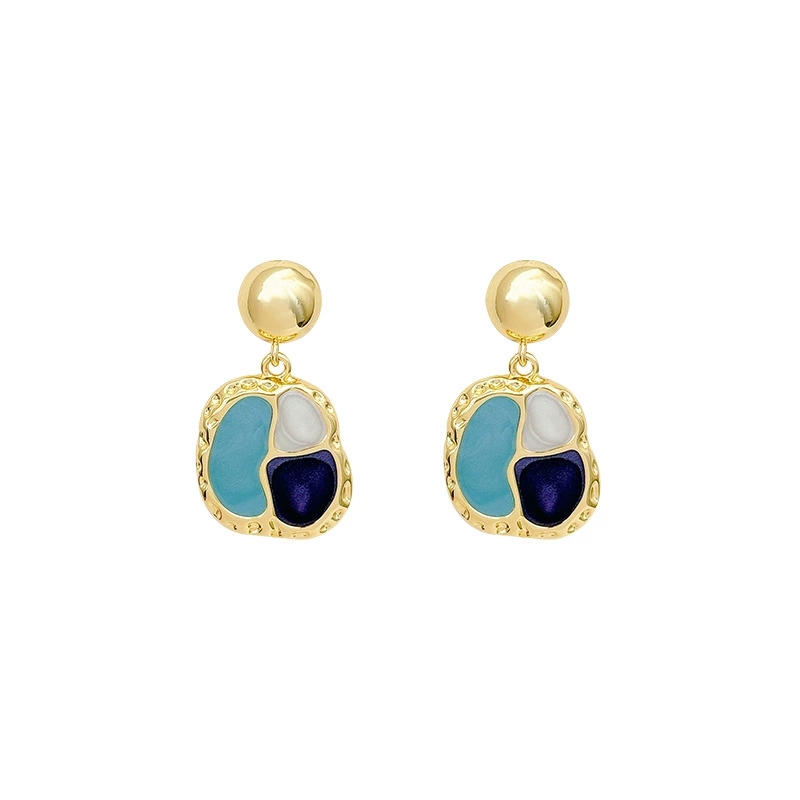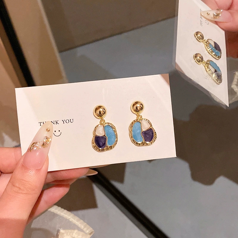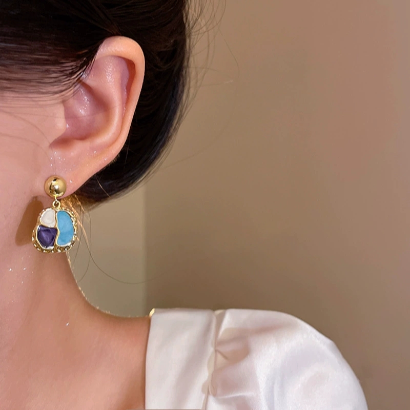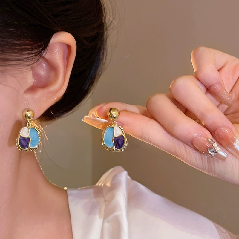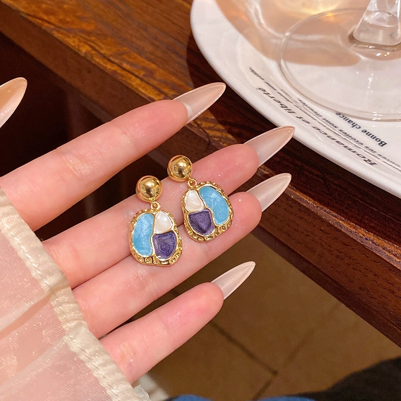 French Style Beauty Rad Ear Studs Port Wind Vintage Geometry Shape Drop Glaze Earrings Ear Accessories