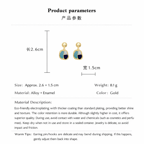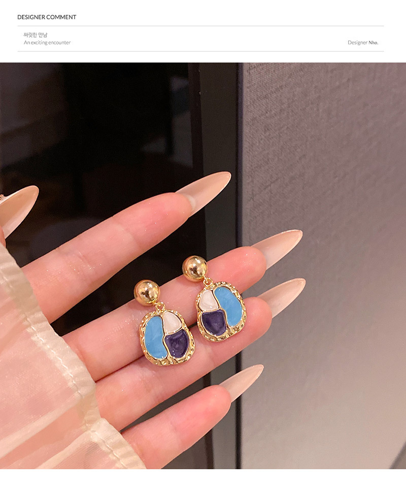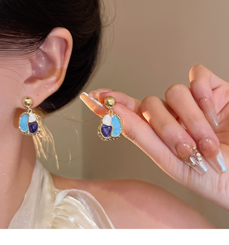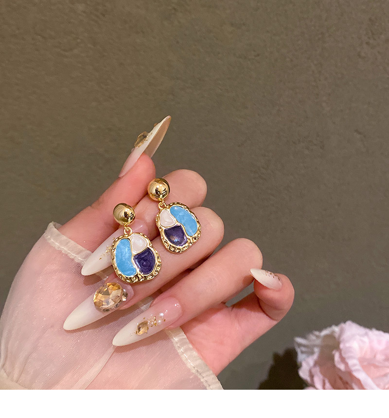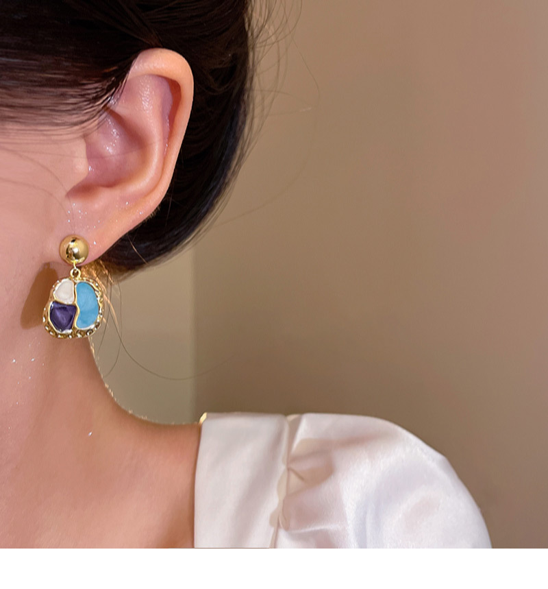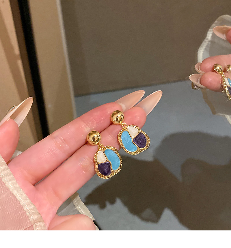 French Style Beauty Rad Ear Studs Port Wind Vintage Geometry Shape Drop Glaze Earrings Ear Accessories