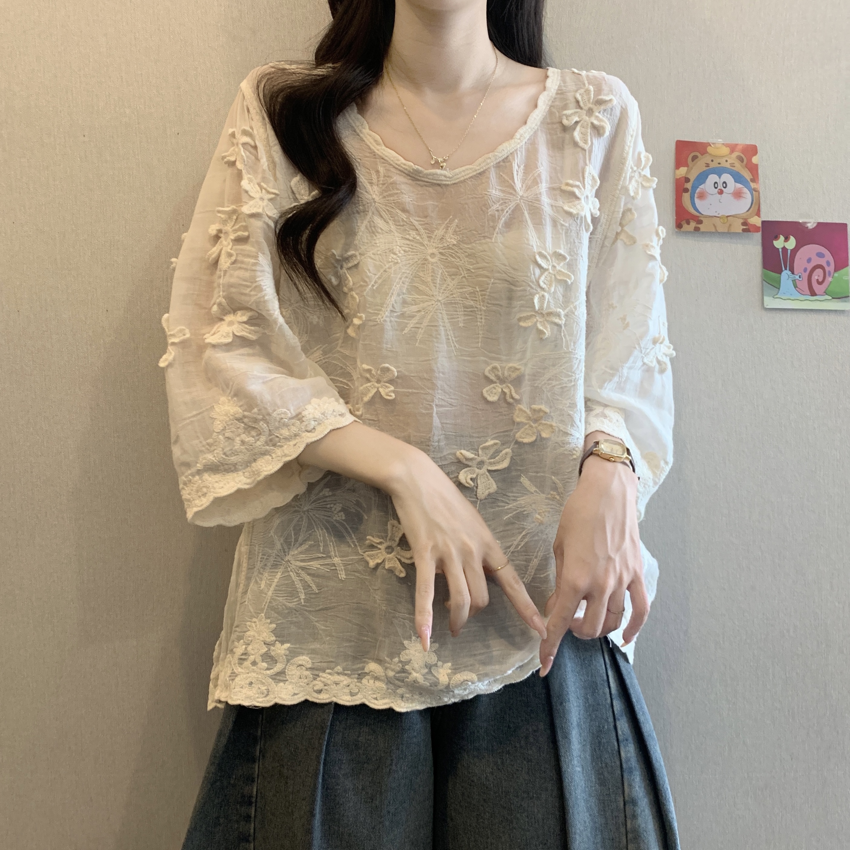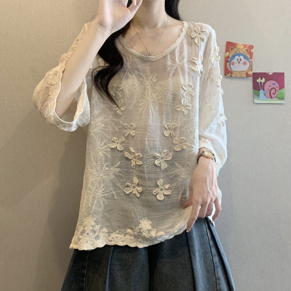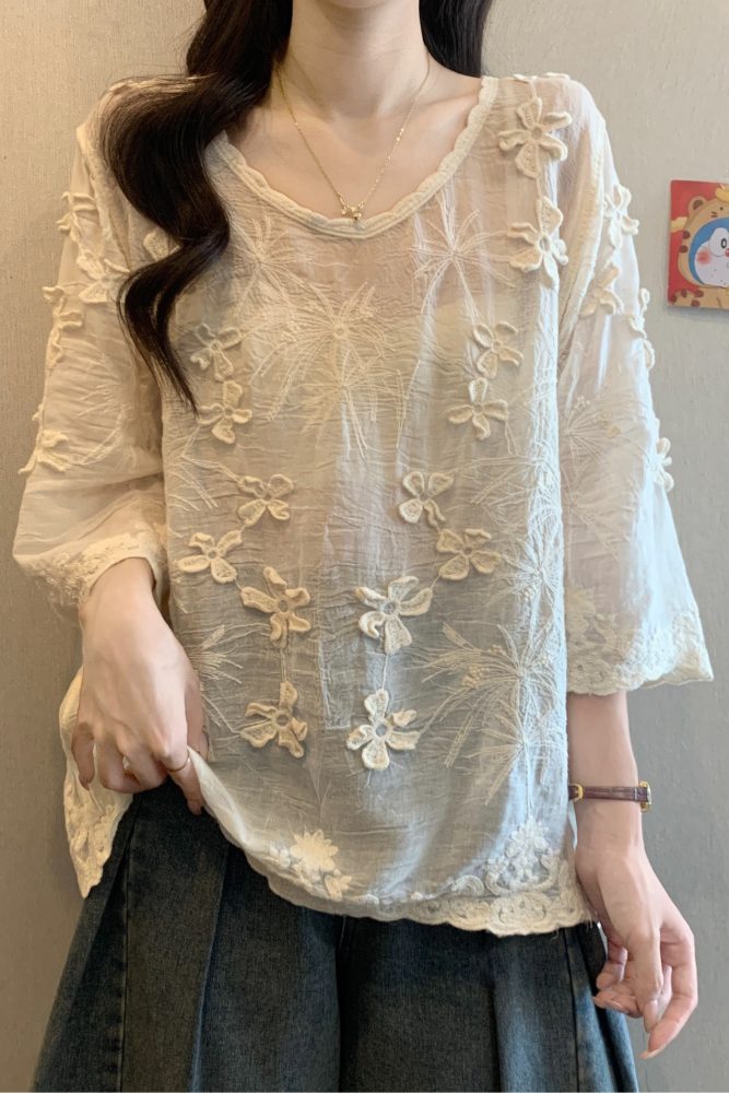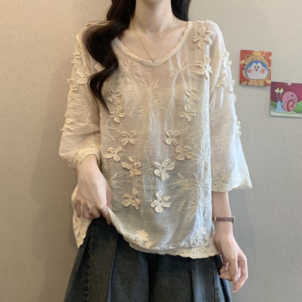 Be the first to review “French Style Stereo Flower Round Neck Short Sleeve Shirt top”
