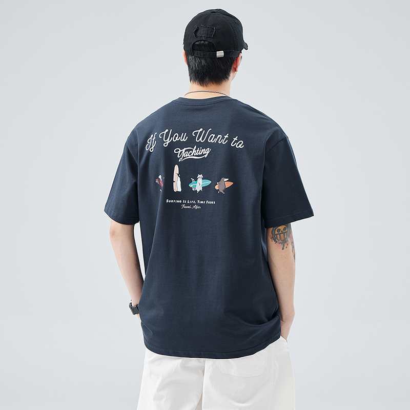 Heavy Pure Cotton Half Sleeve T-Shirt Men Summer New Style Loose Fit Casual Round Neck Printed Short Sleeve Top
