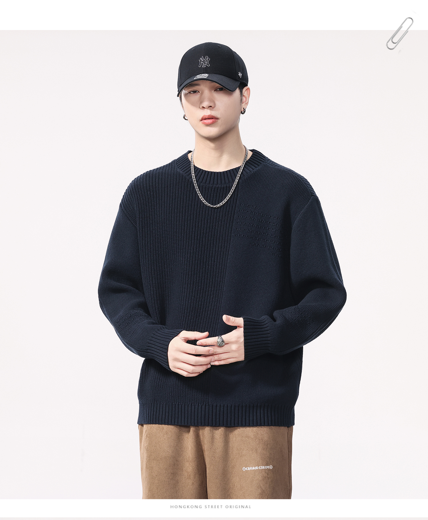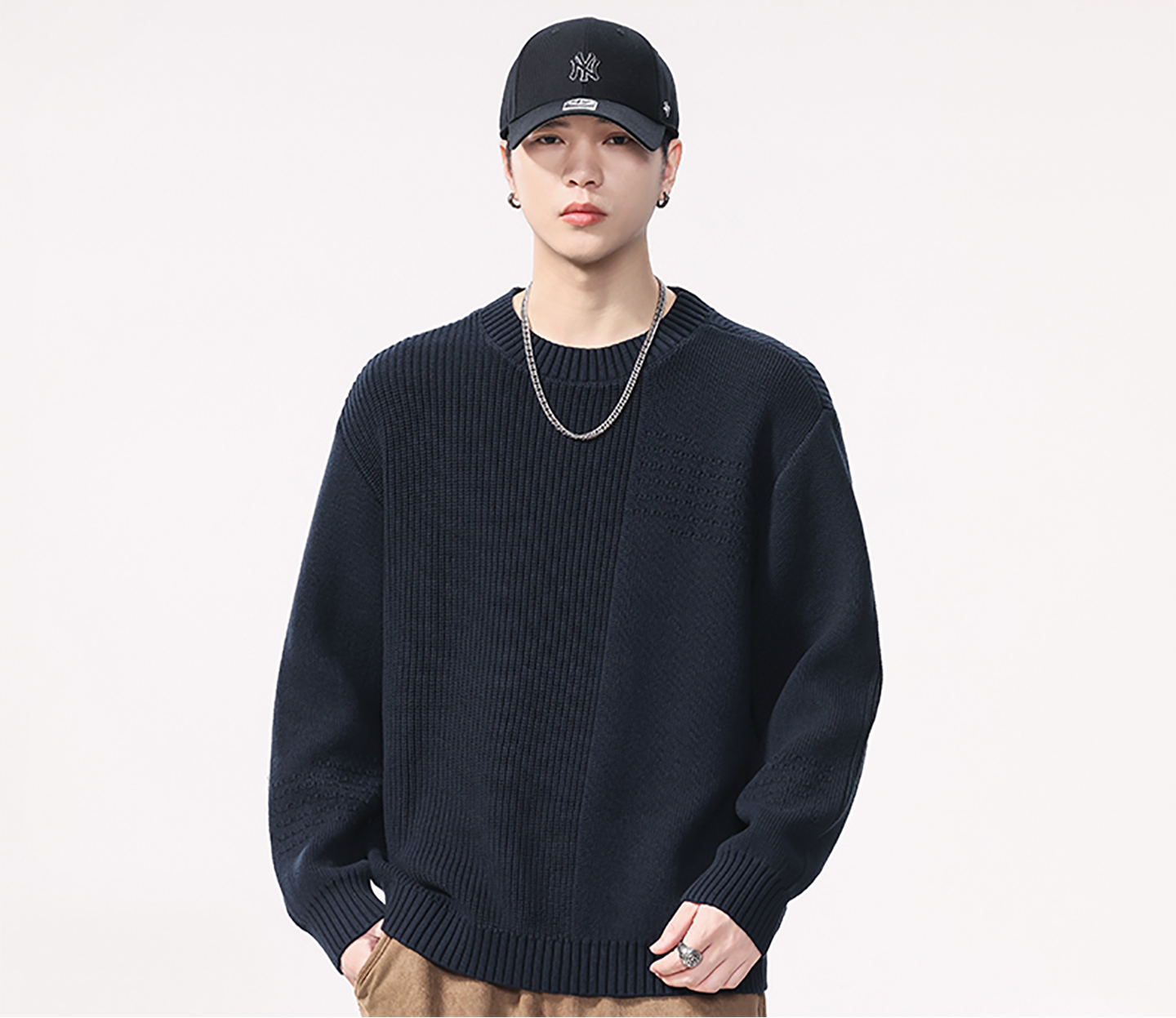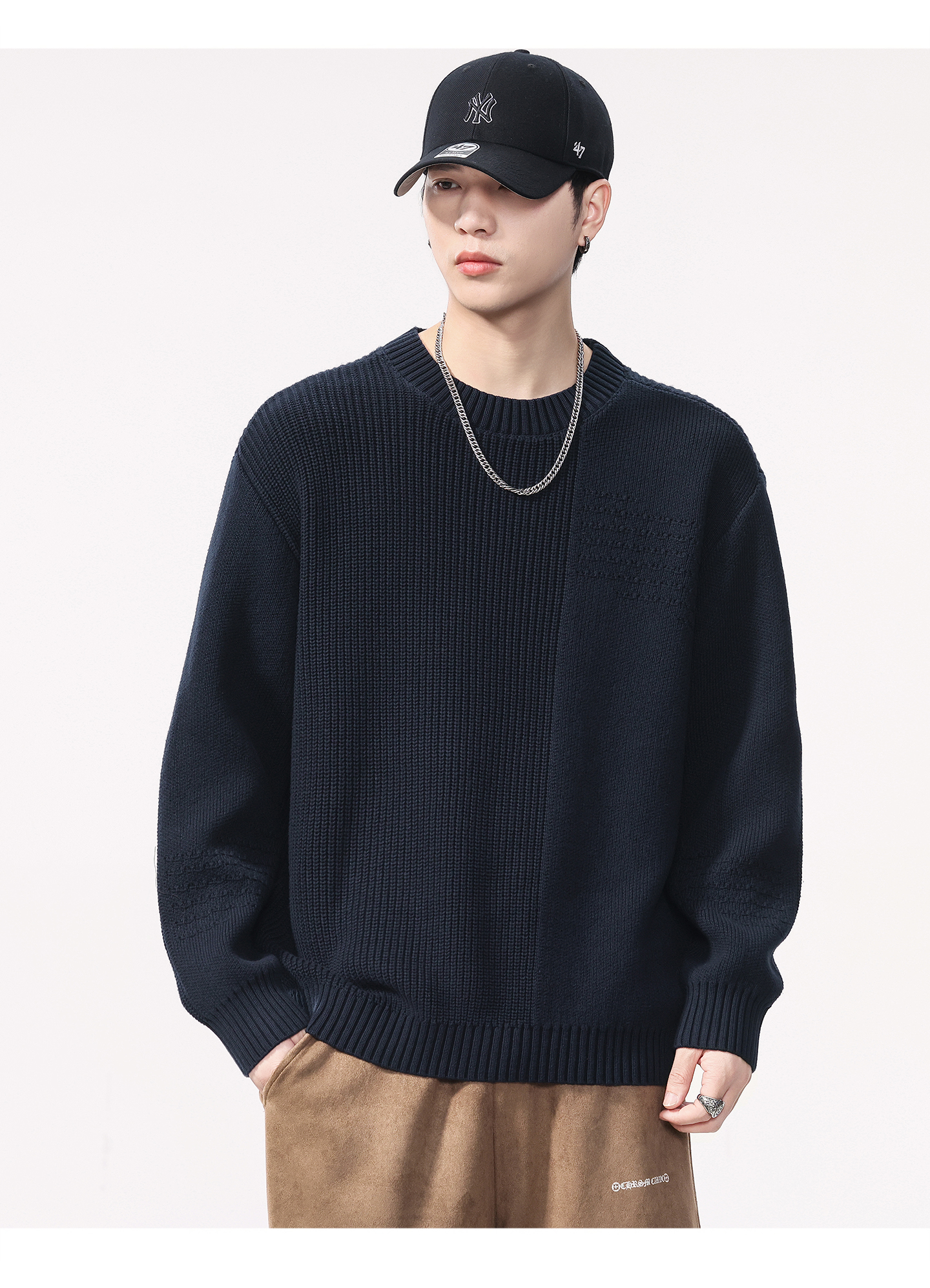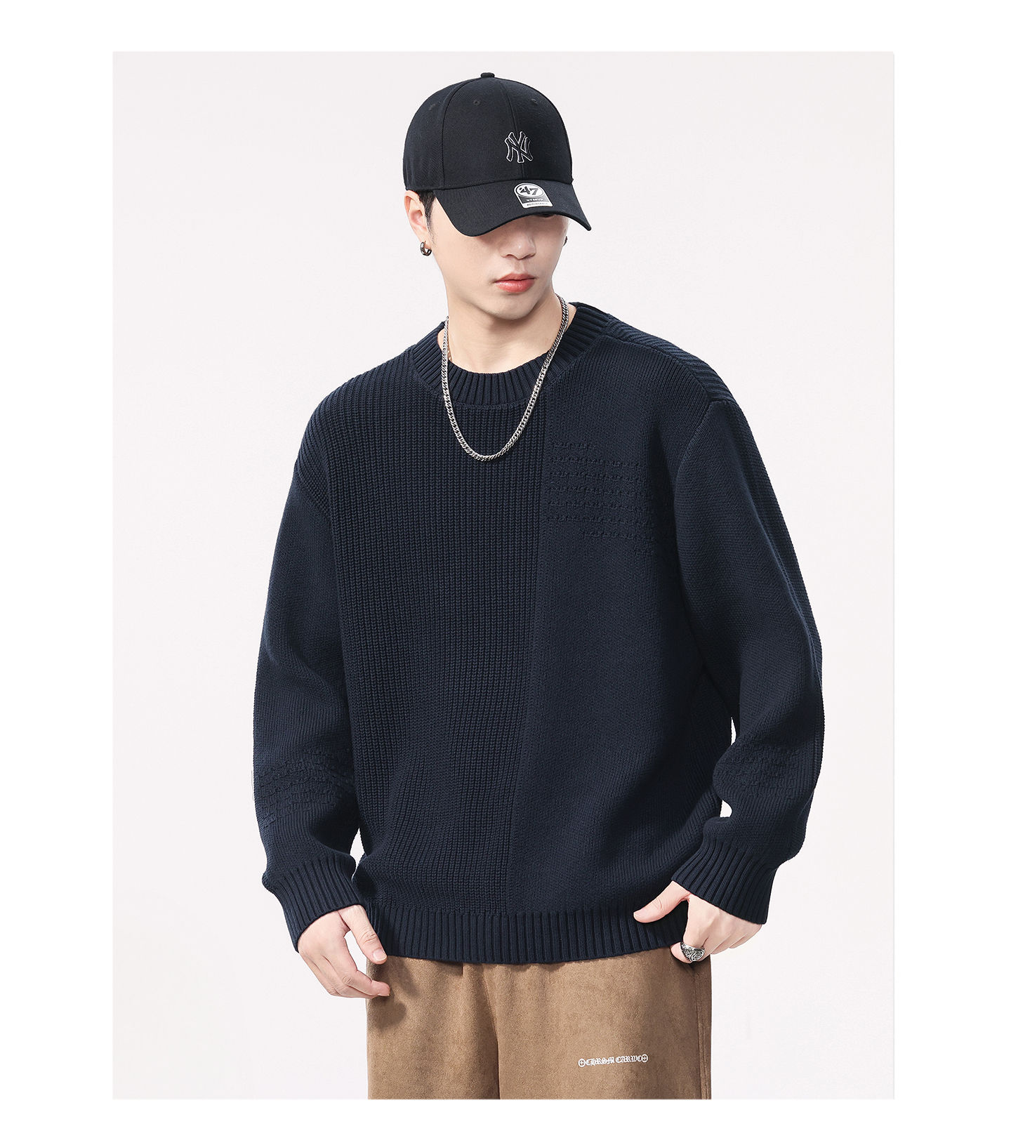 Be the first to review “High Quality Wool material Round Neck Sweater Men’s Loose Fit Pattern Type Trendy Versatile”