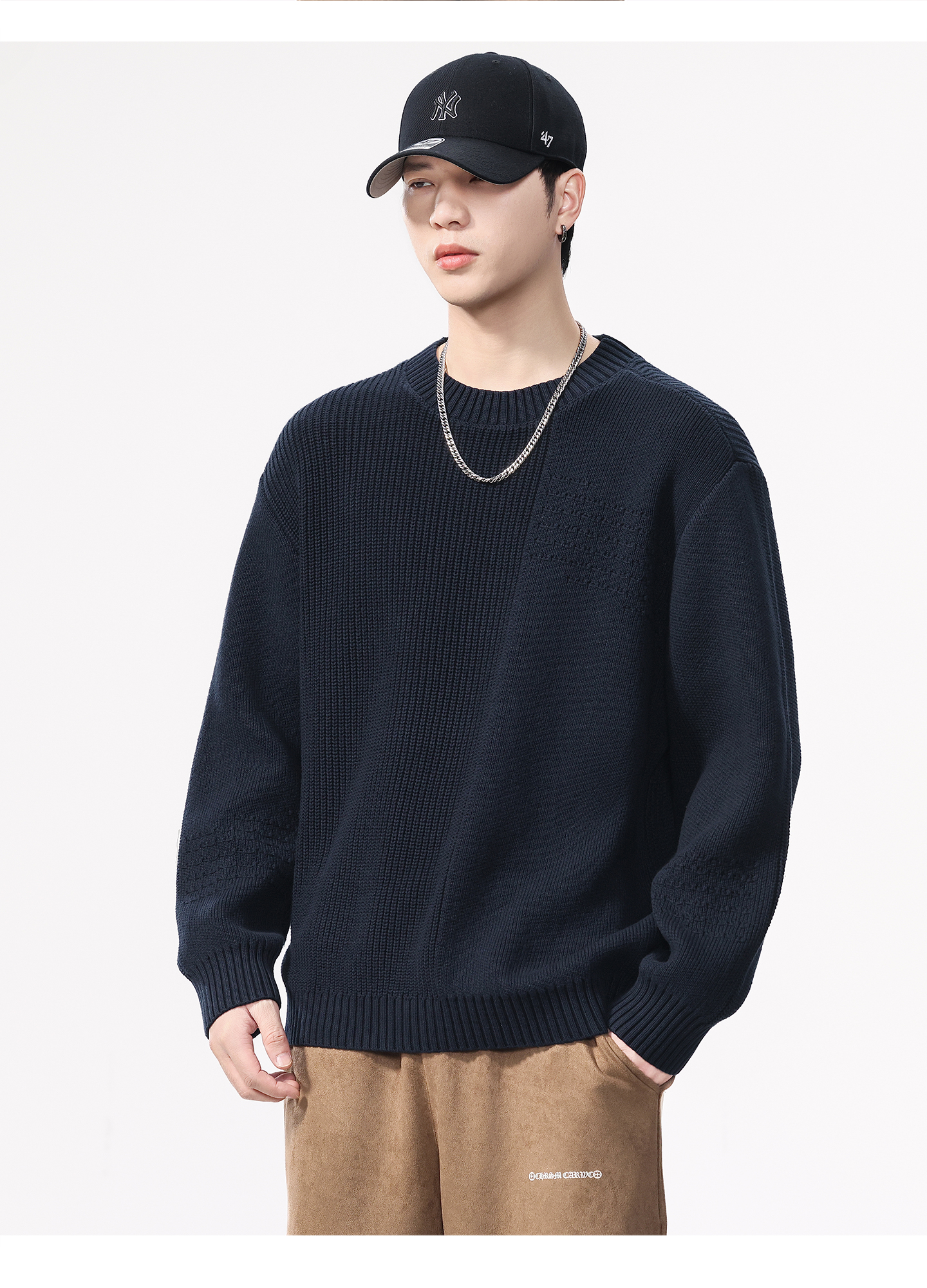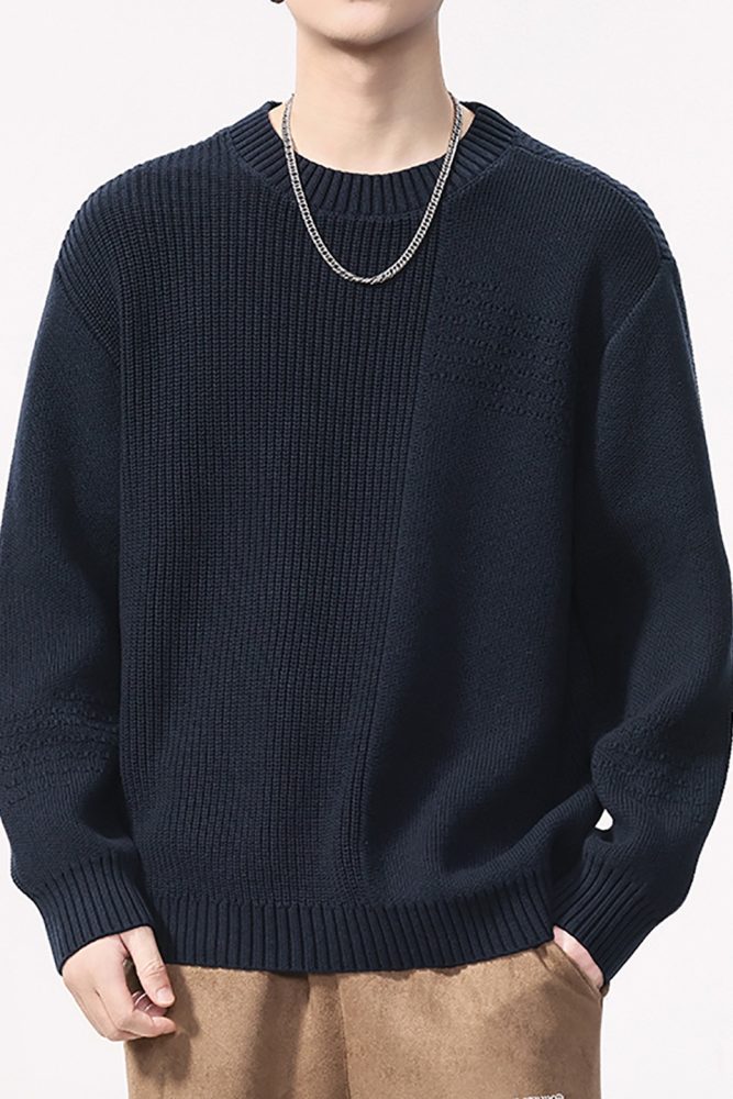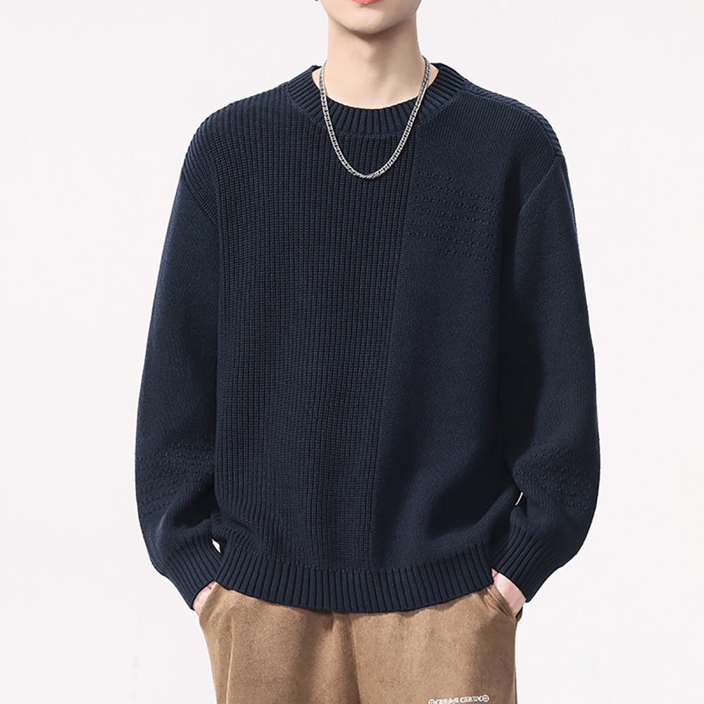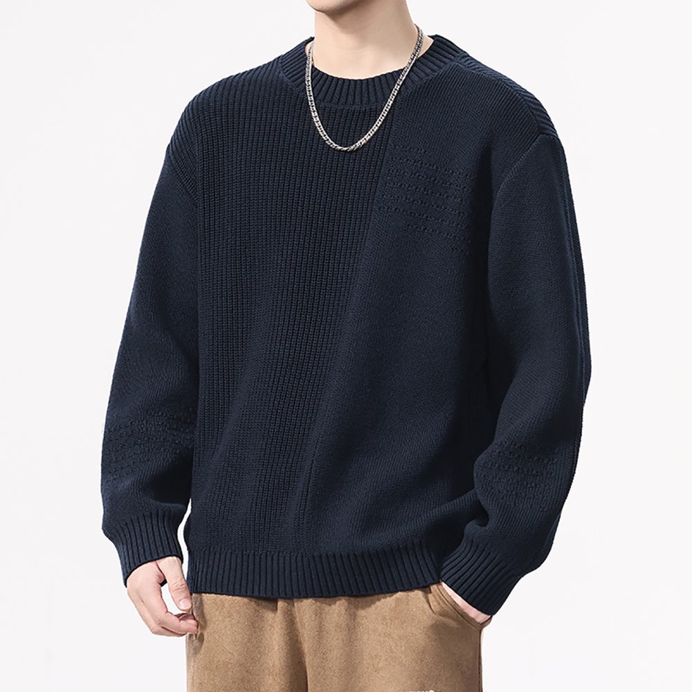 High Quality Wool material Round Neck Sweater Men’s Loose Fit Pattern Type Trendy Versatile