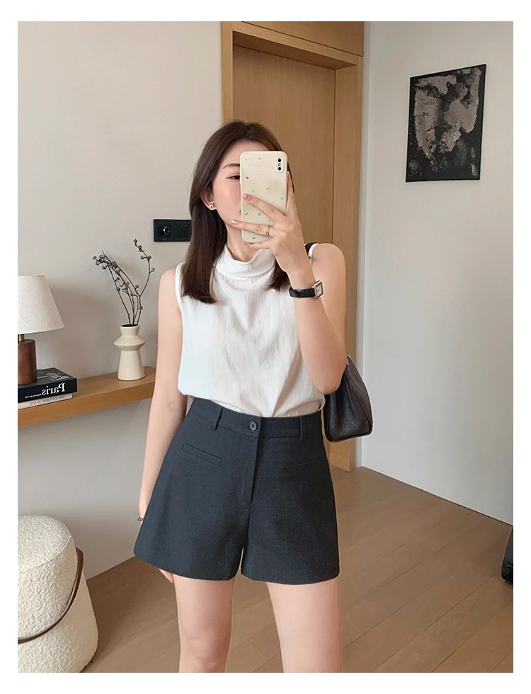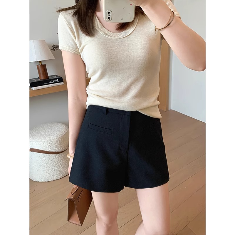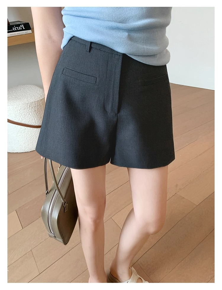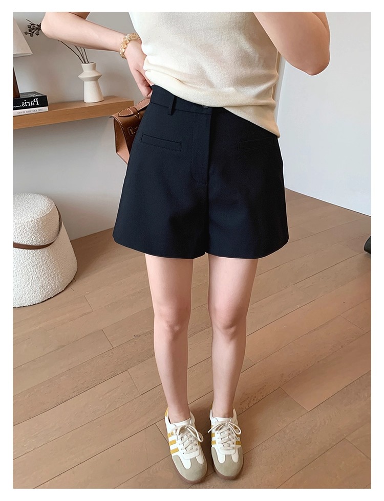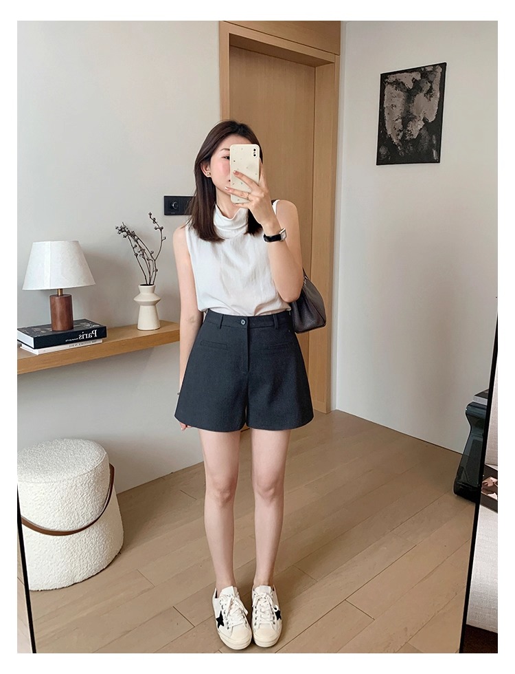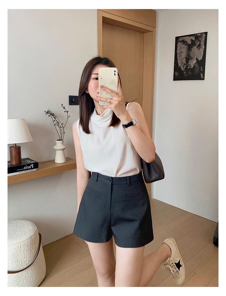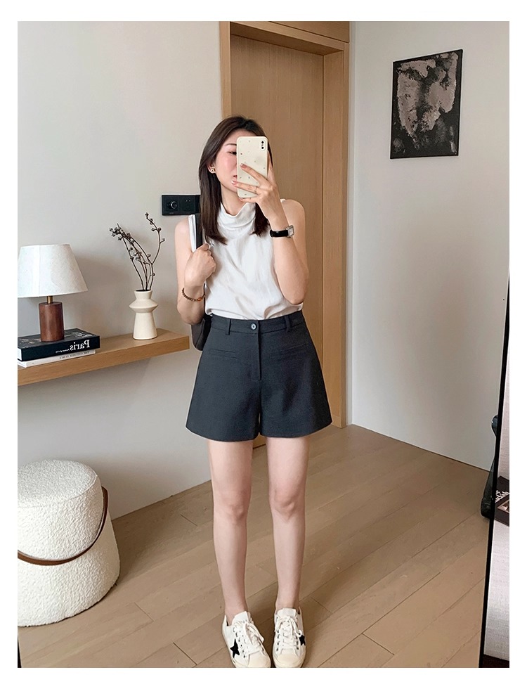 High Waist Black Texture Suit Shorts
