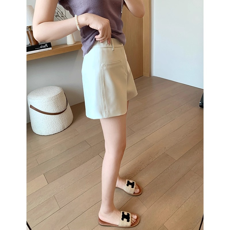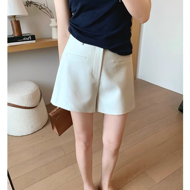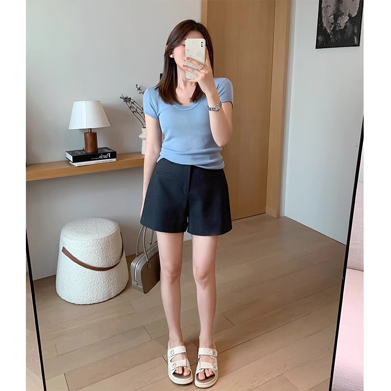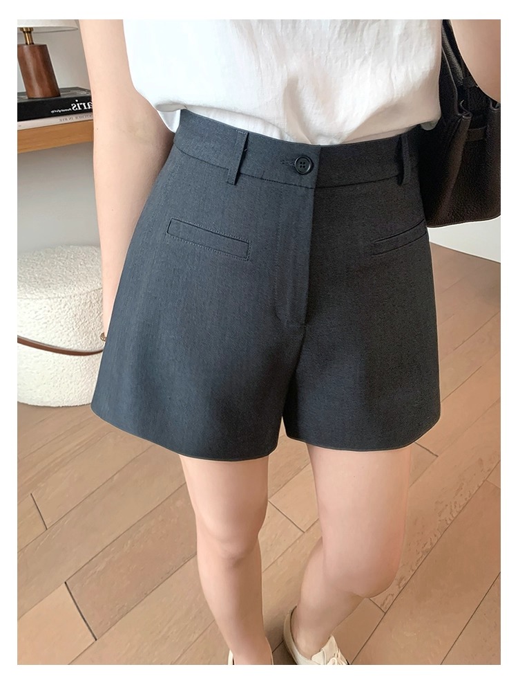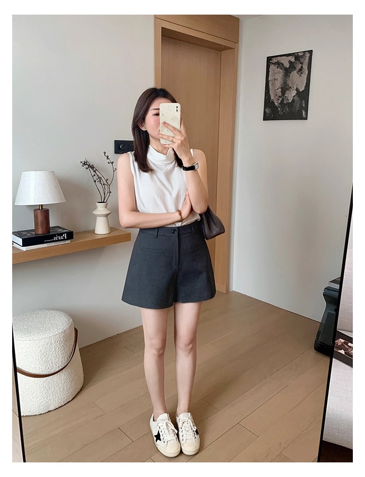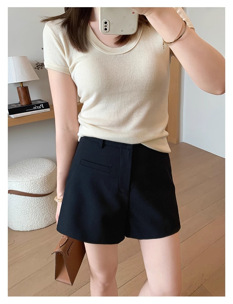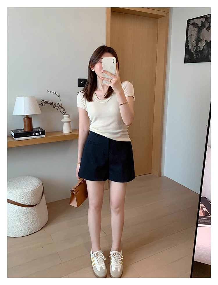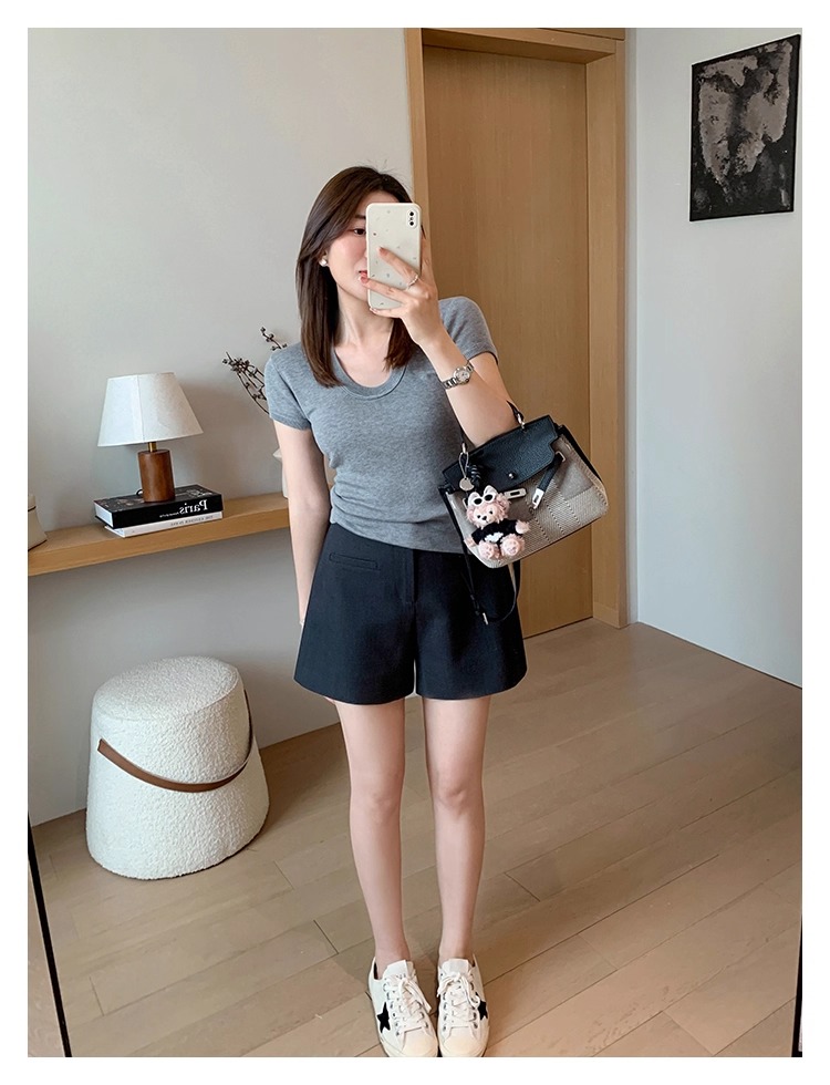 High Waist Black Texture Suit Shorts
