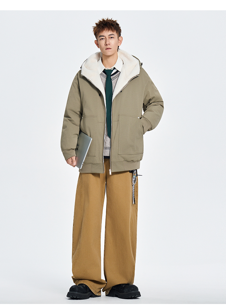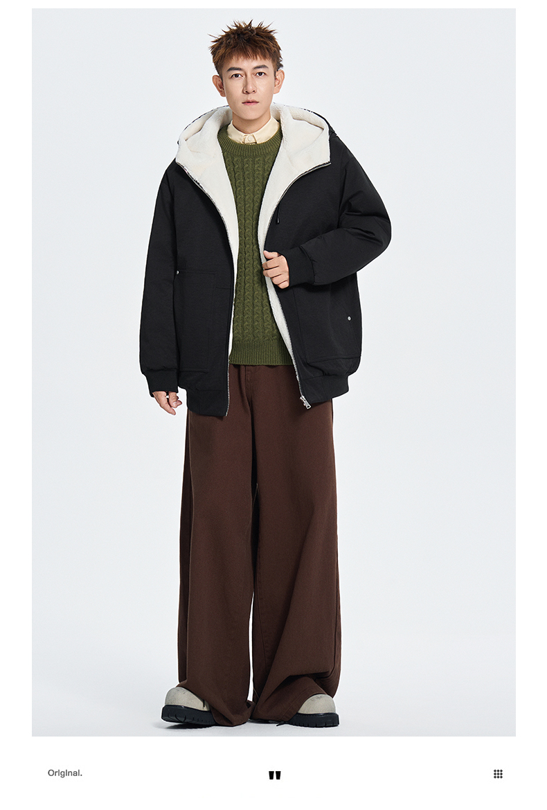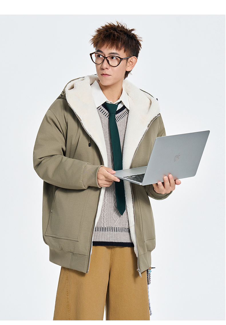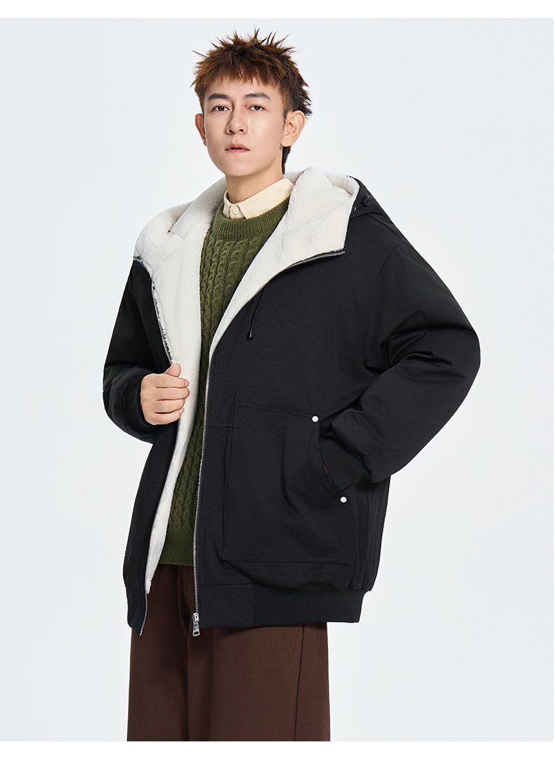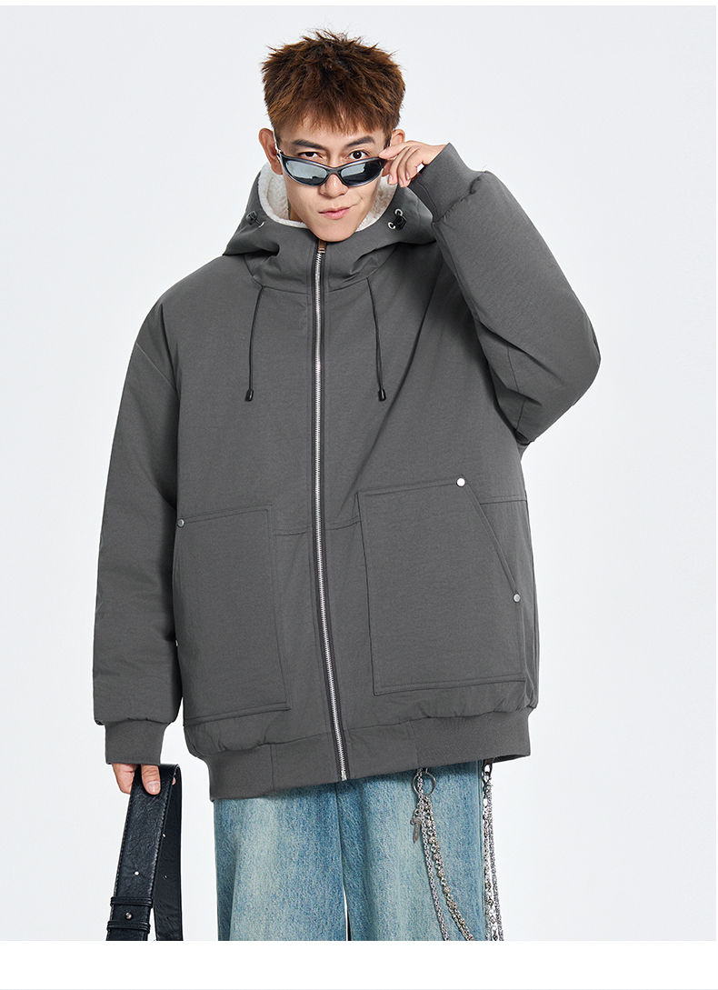 Hooded Cotton Padded Jacket Thickened Puffer Jacket Cotton-Padded Jacket Lamb Fleece Warm Cotton Clothing