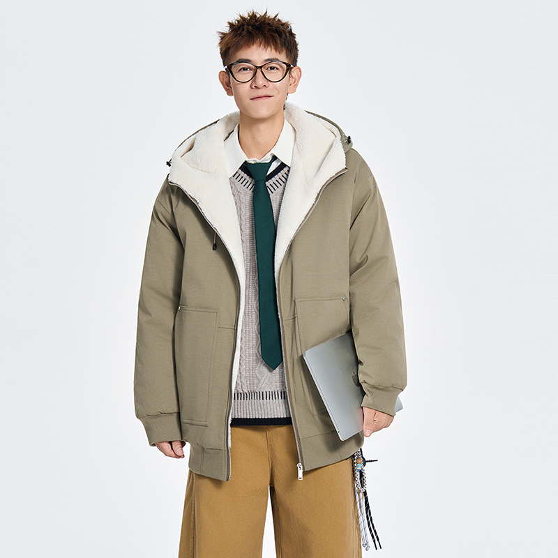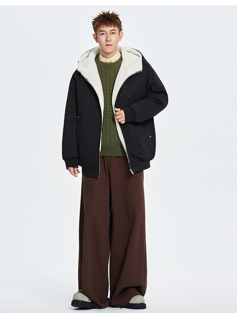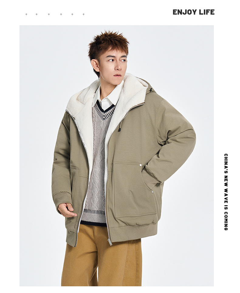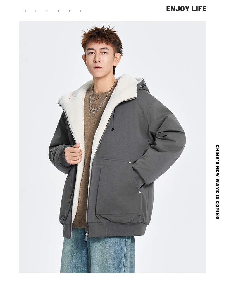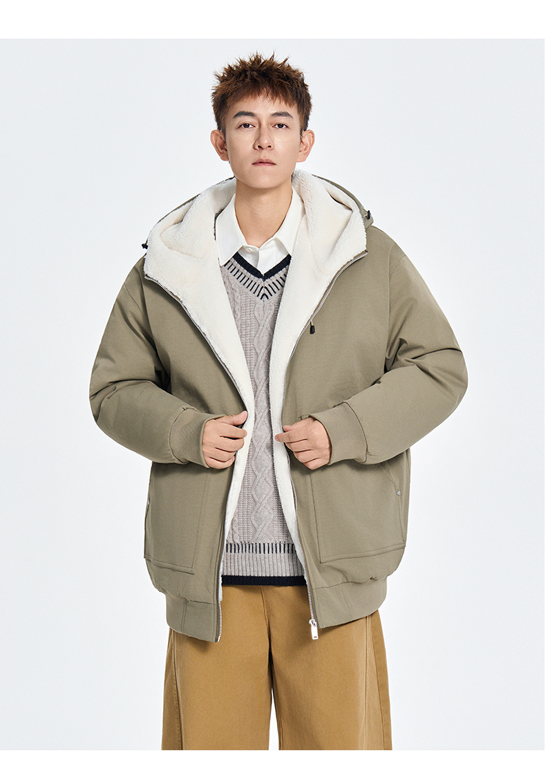 Hooded Cotton Padded Jacket Thickened Puffer Jacket Cotton-Padded Jacket Lamb Fleece Warm Cotton Clothing