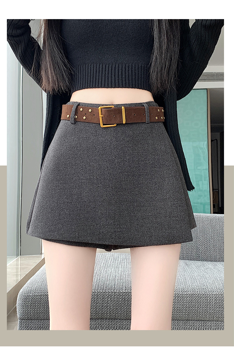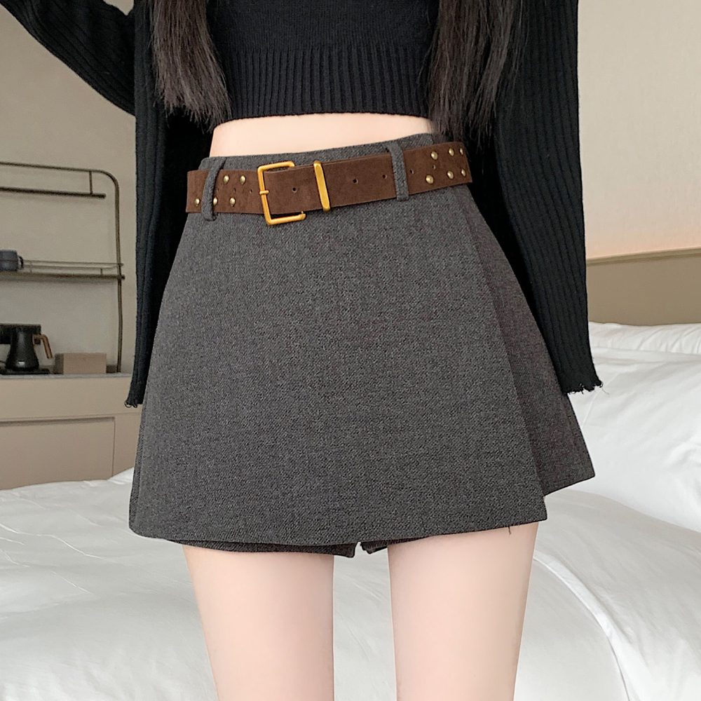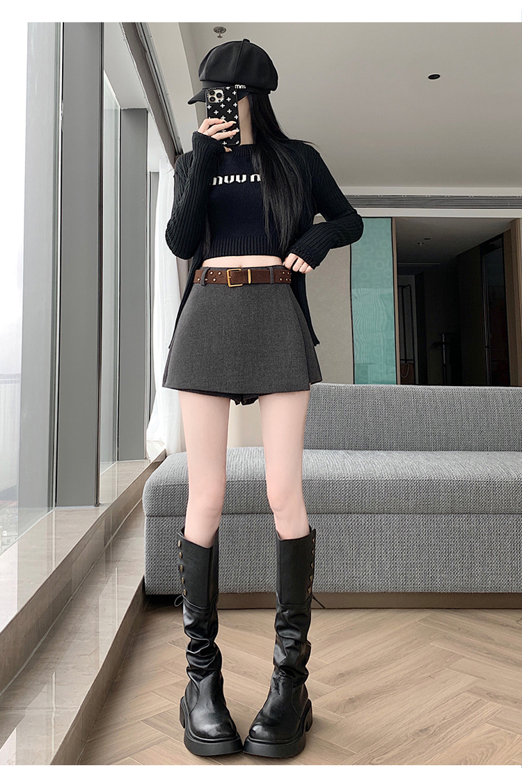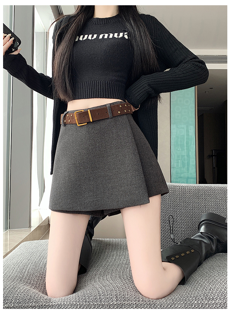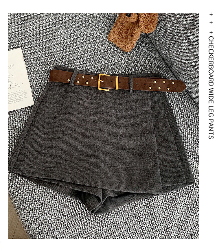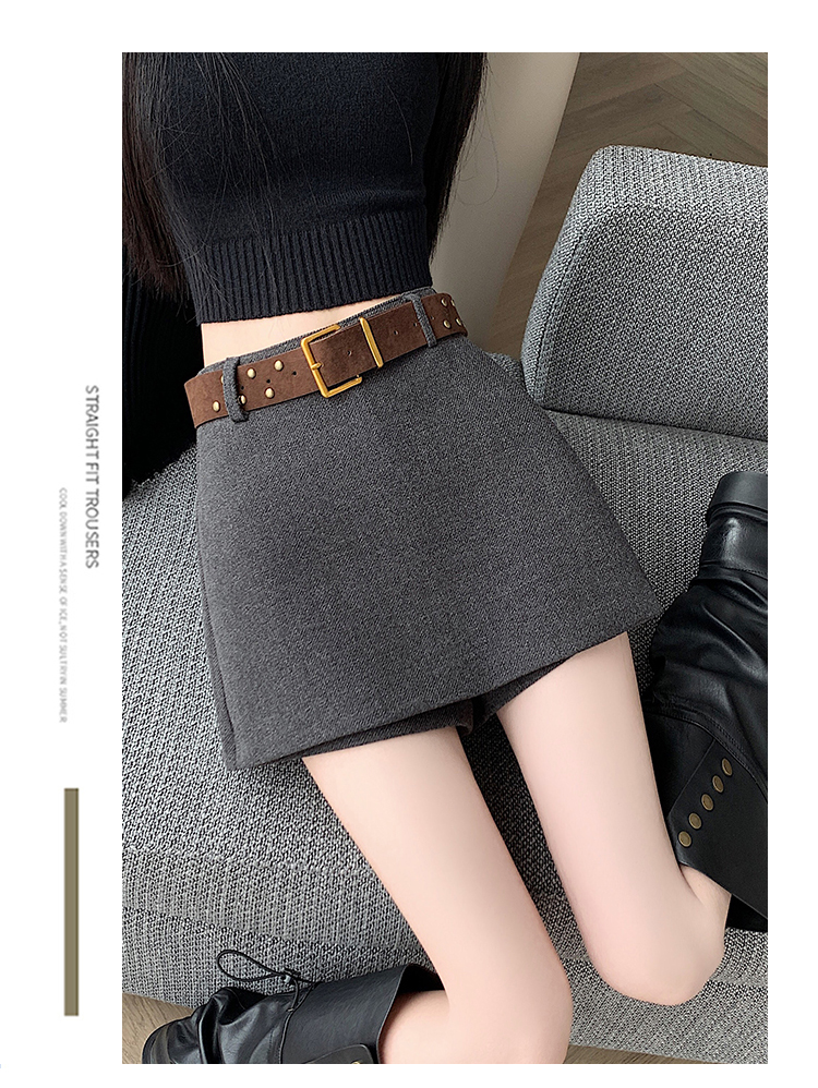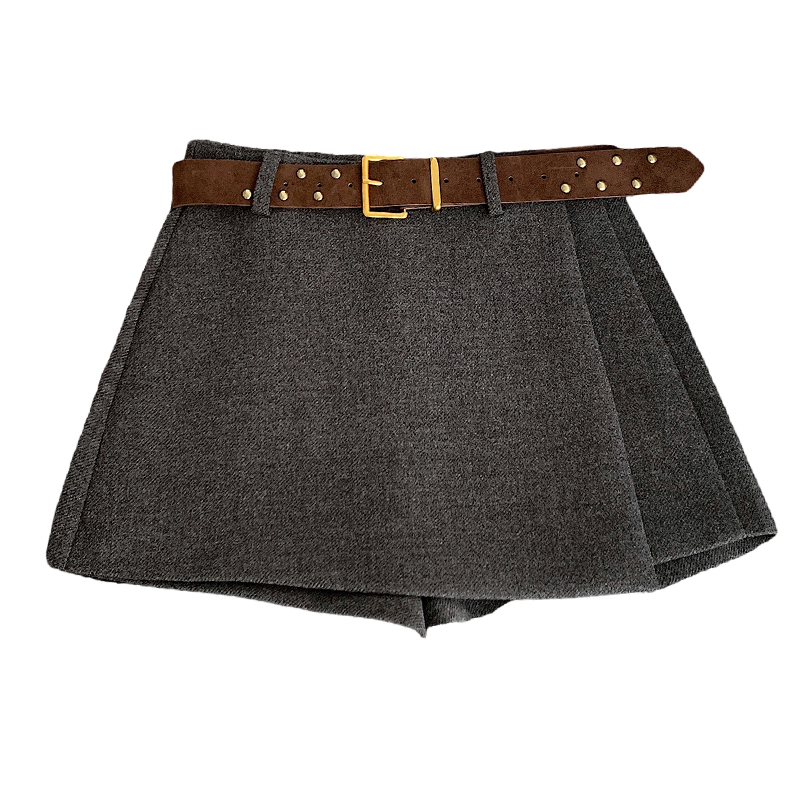 Jorg gray Woolen Half Body Culottes High Waist Western Style Short Legs Pants