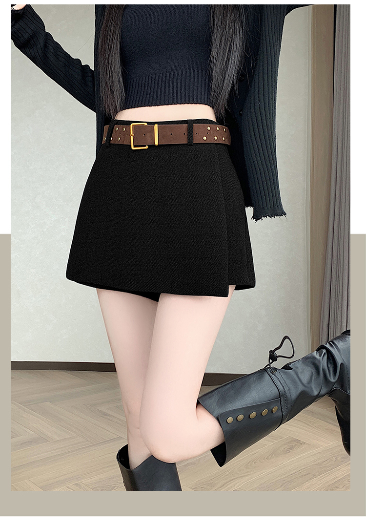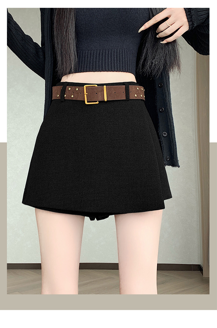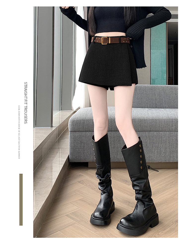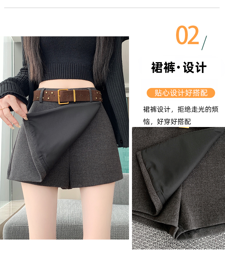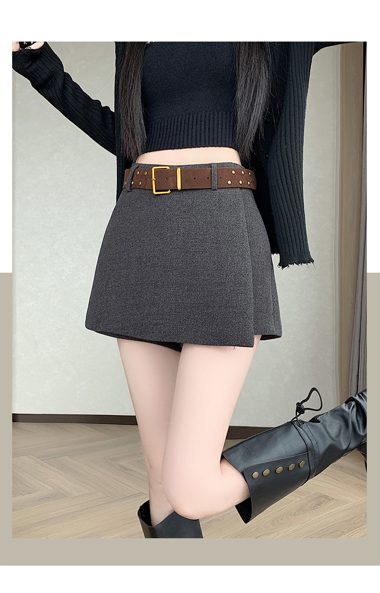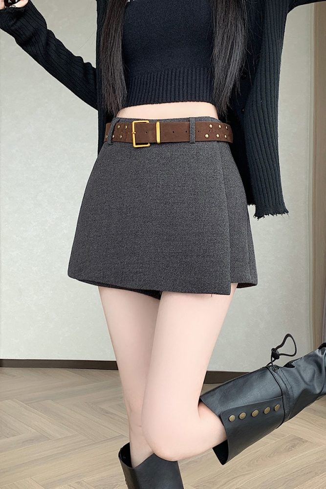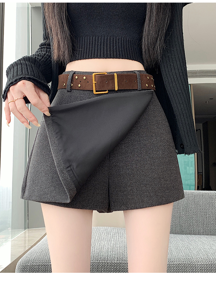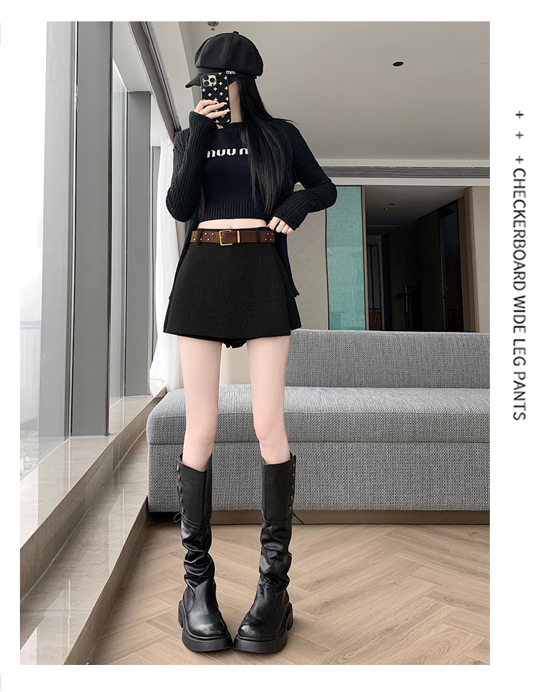 Jorg gray Woolen Half Body Culottes High Waist Western Style Short Legs Pants