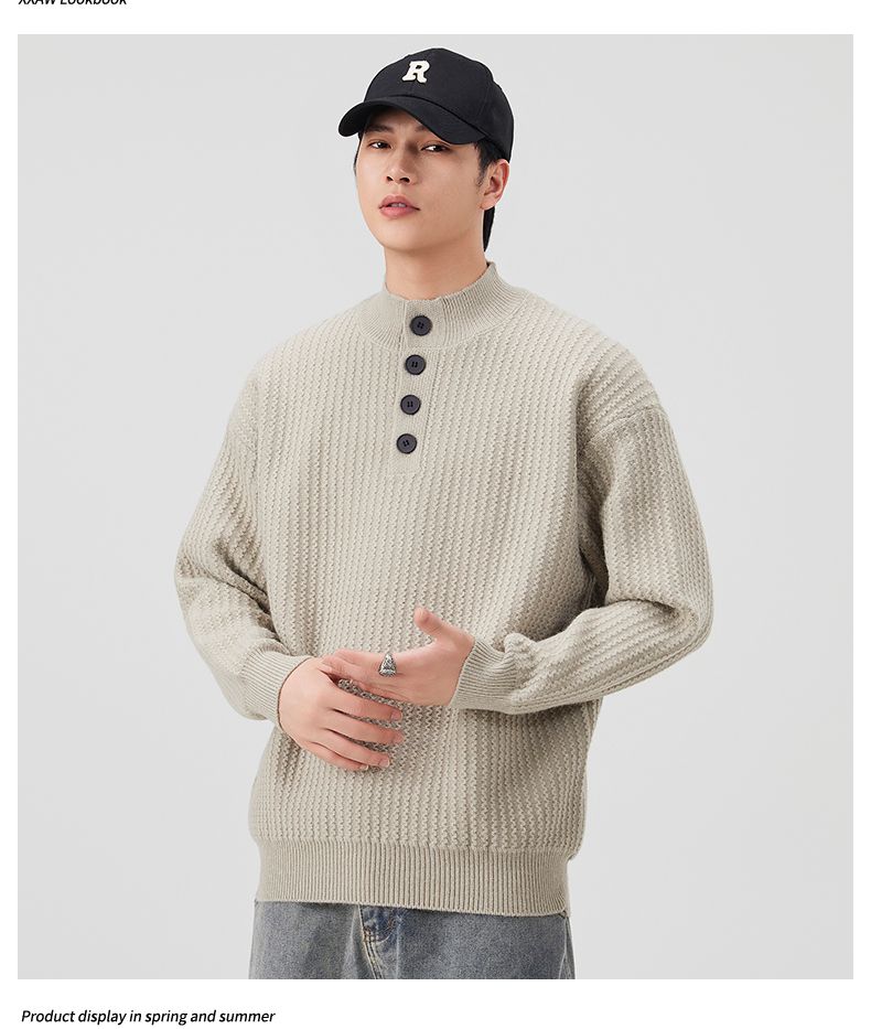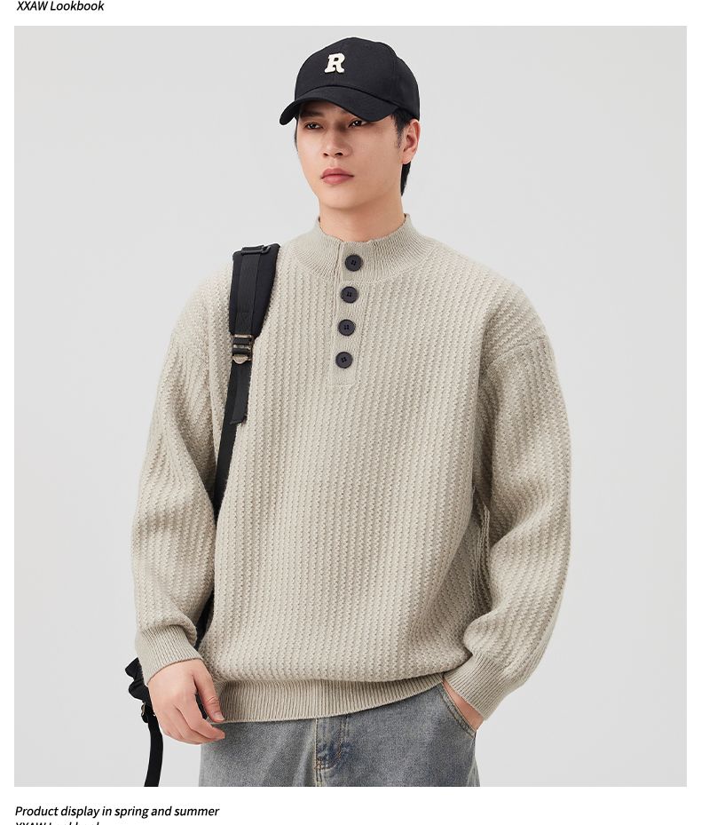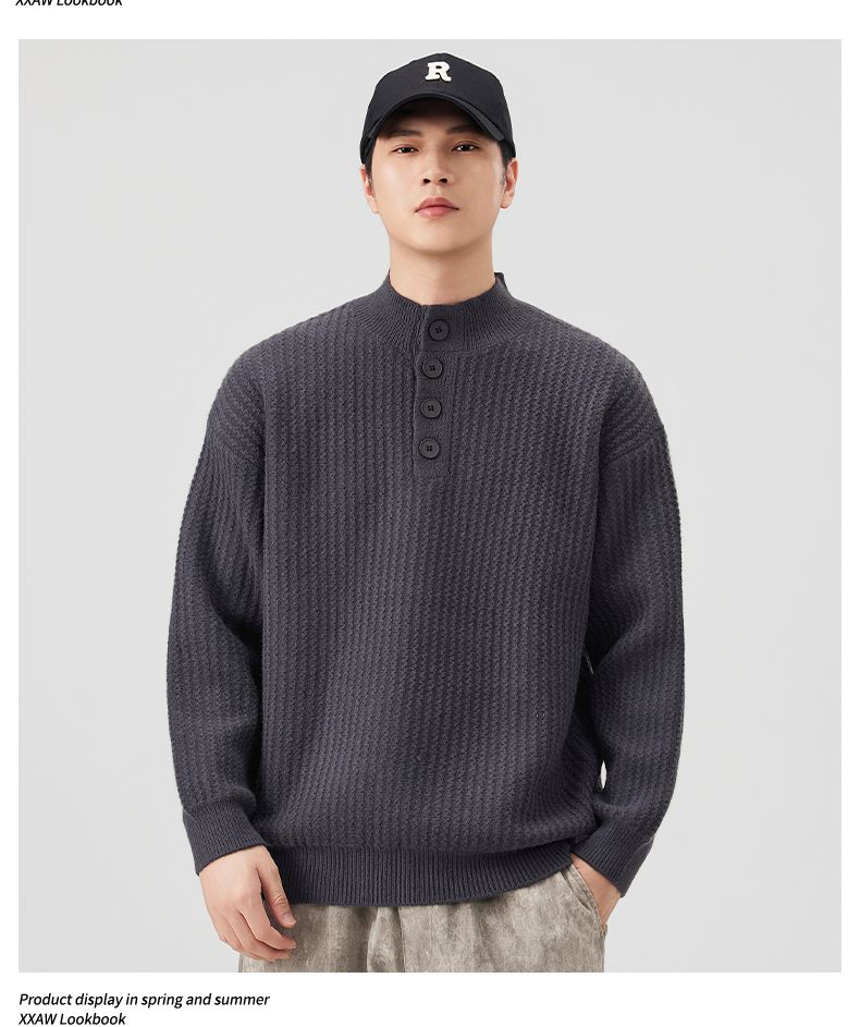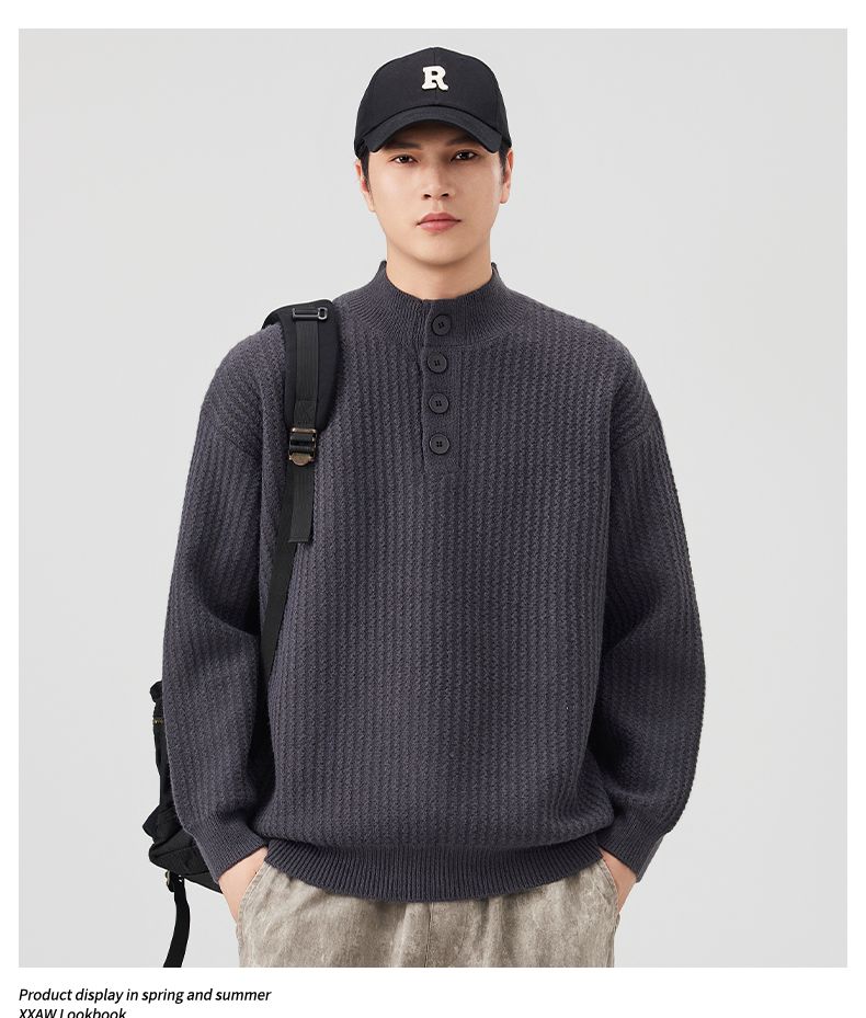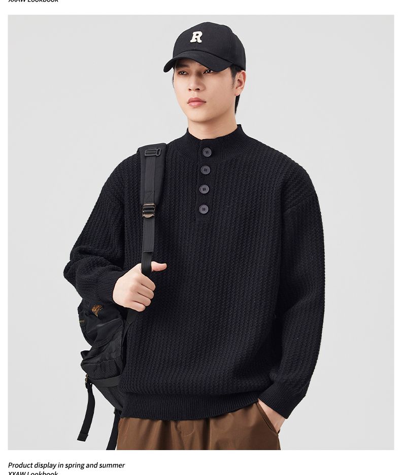 Knit Sweater New Style Pullover Mandarin collar Button Pullover Versatile Sweater