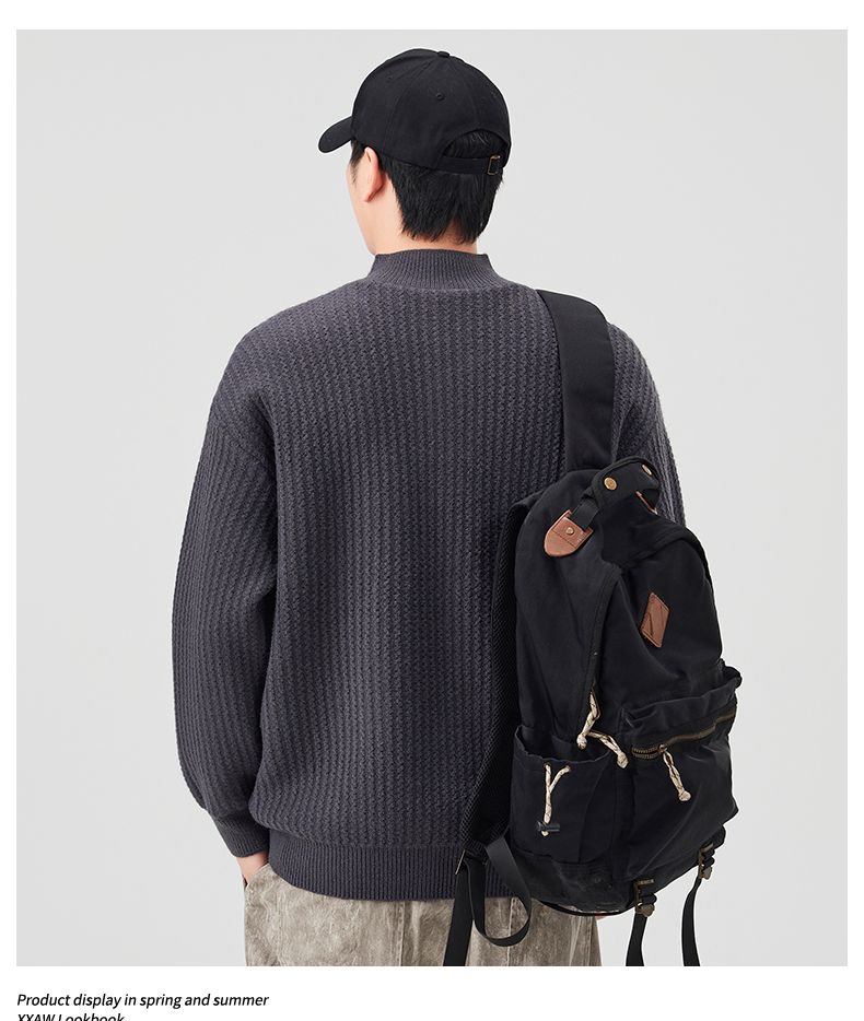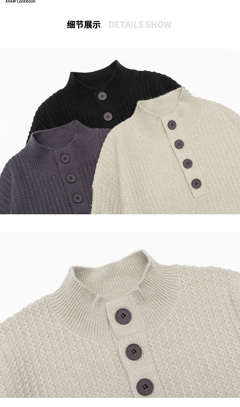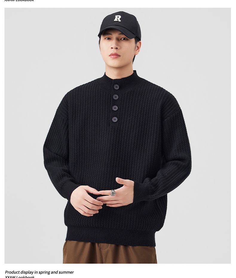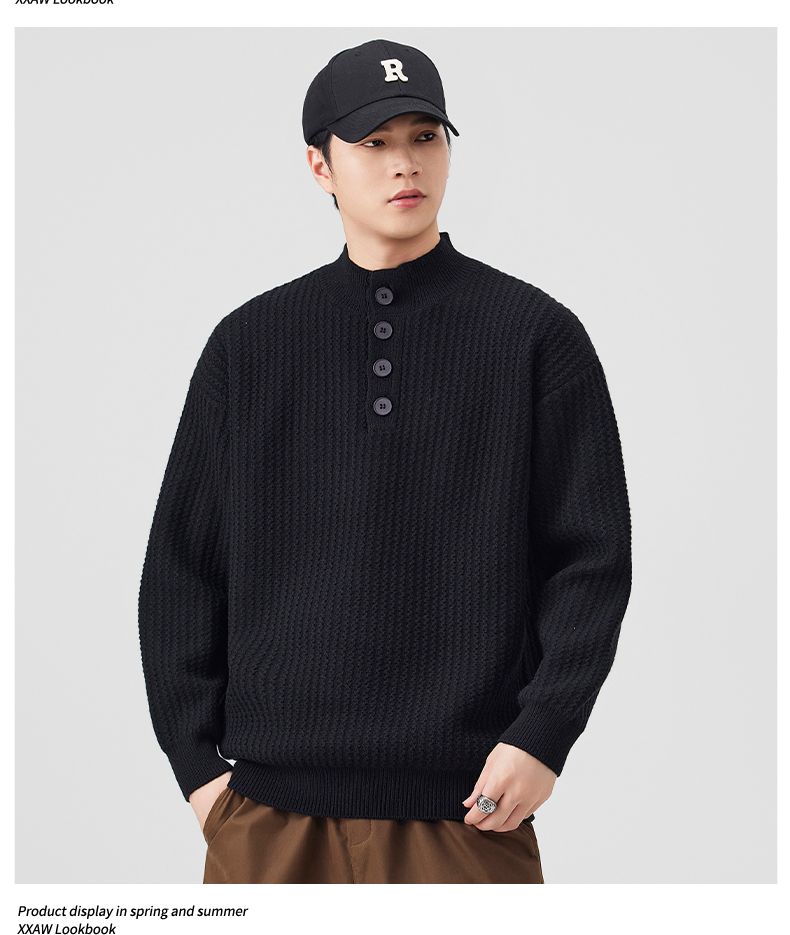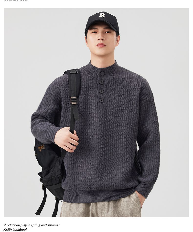 Knit Sweater New Style Pullover Mandarin collar Button Pullover Versatile Sweater
