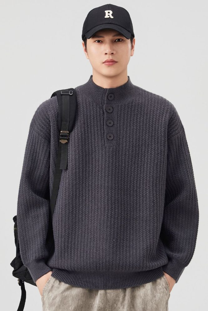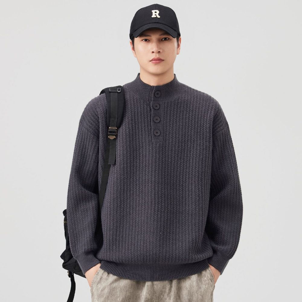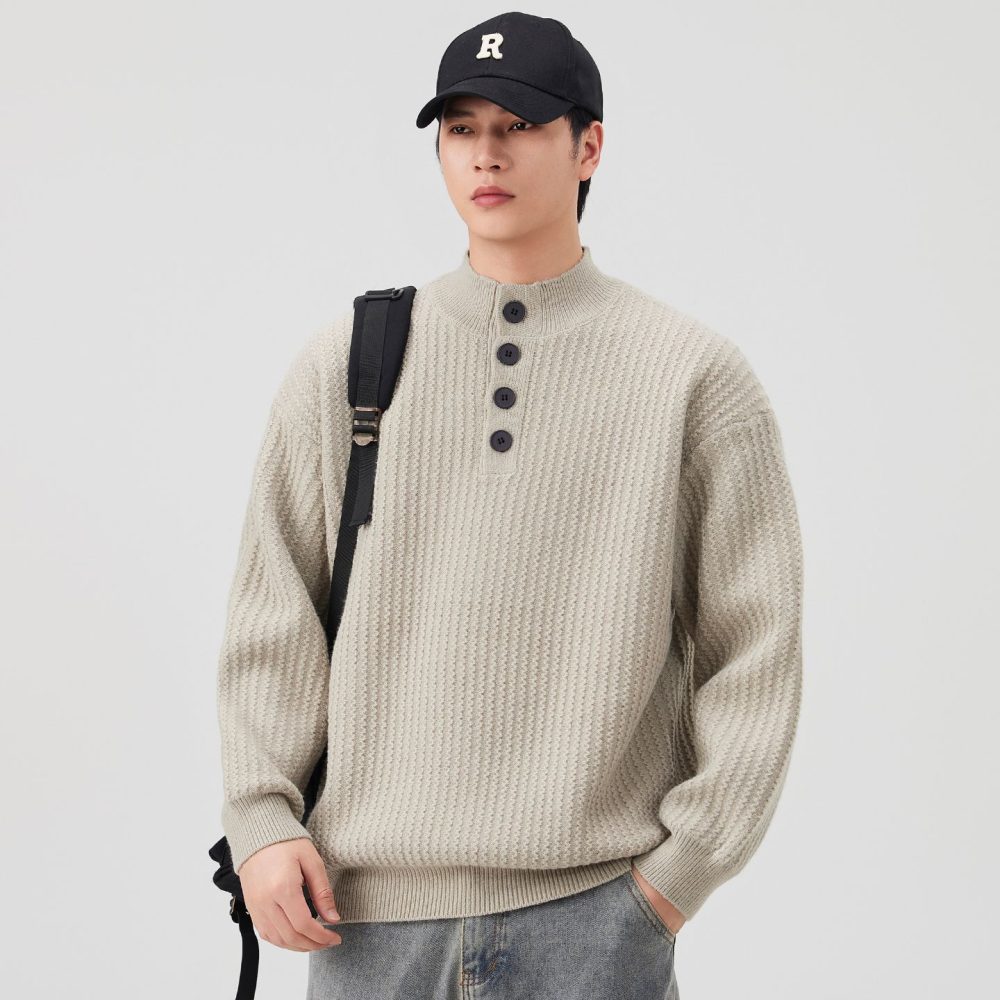 Be the first to review “Knit Sweater New Style Pullover Mandarin collar Button Pullover Versatile Sweater”