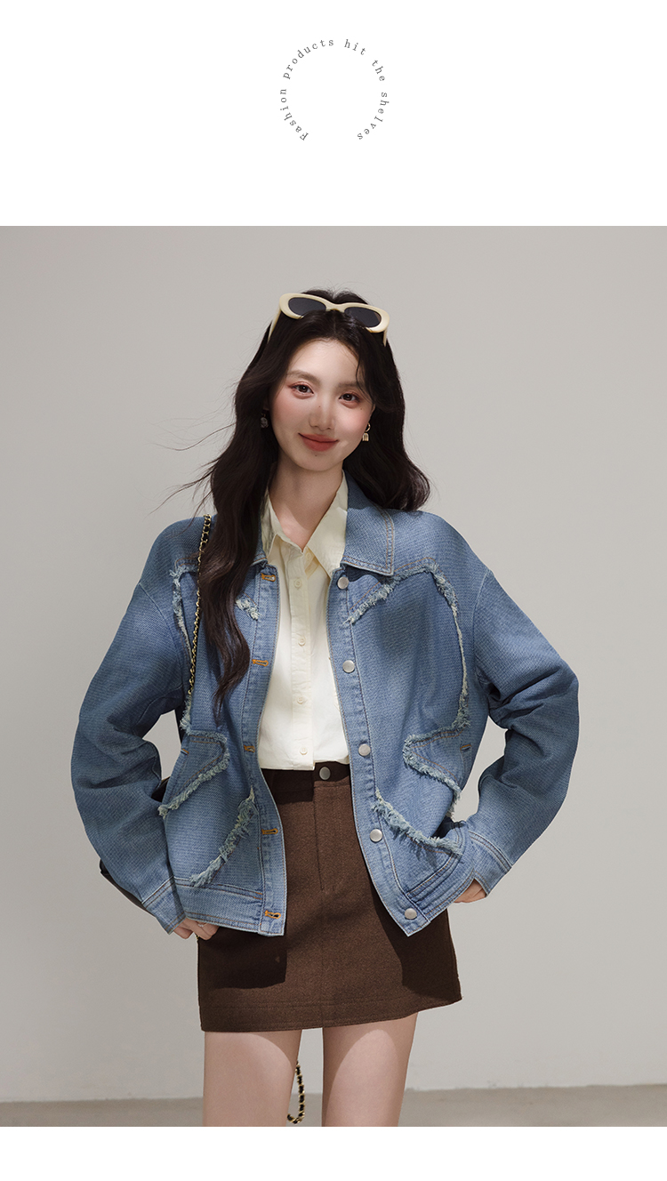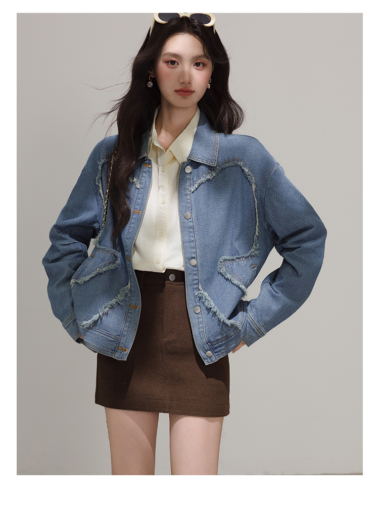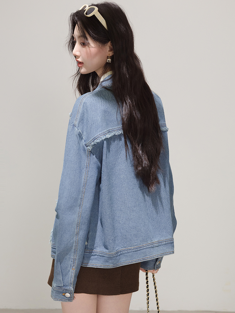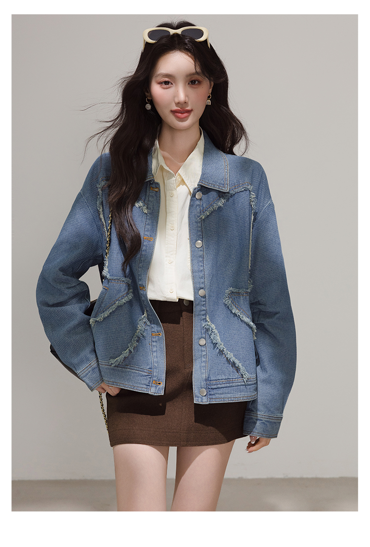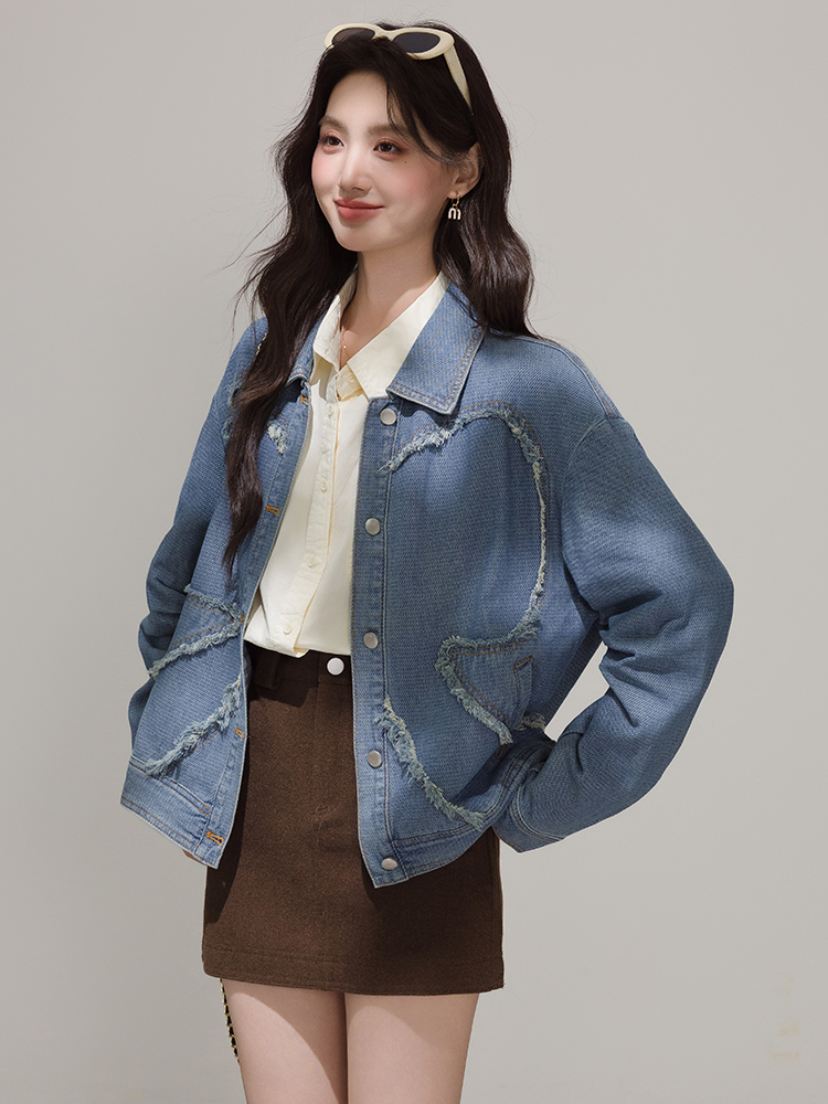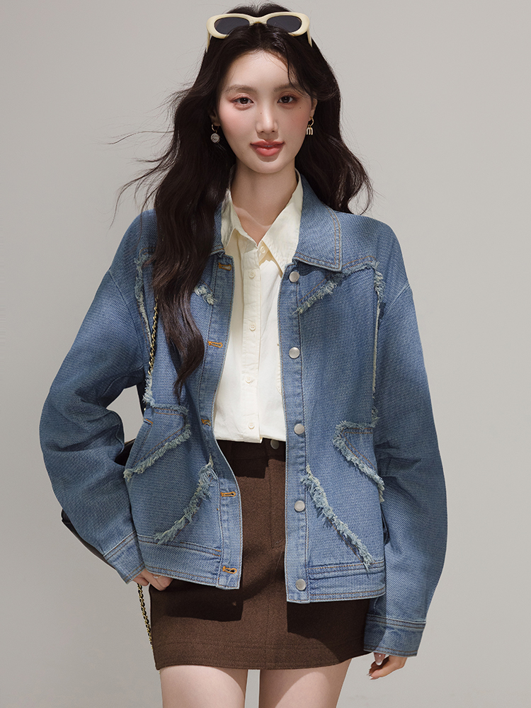 Lazy Wind Washed Denim Style Design Sense Niche Jacket Top
