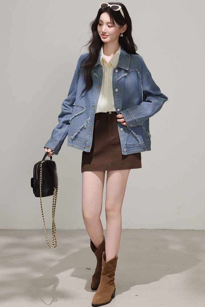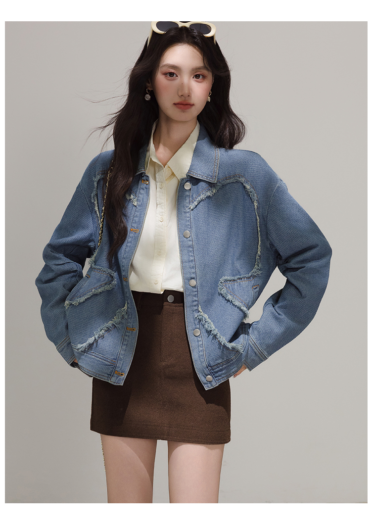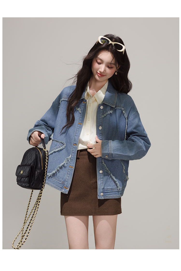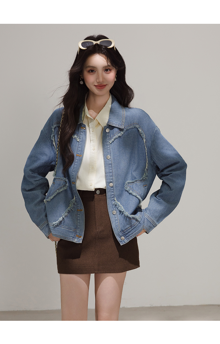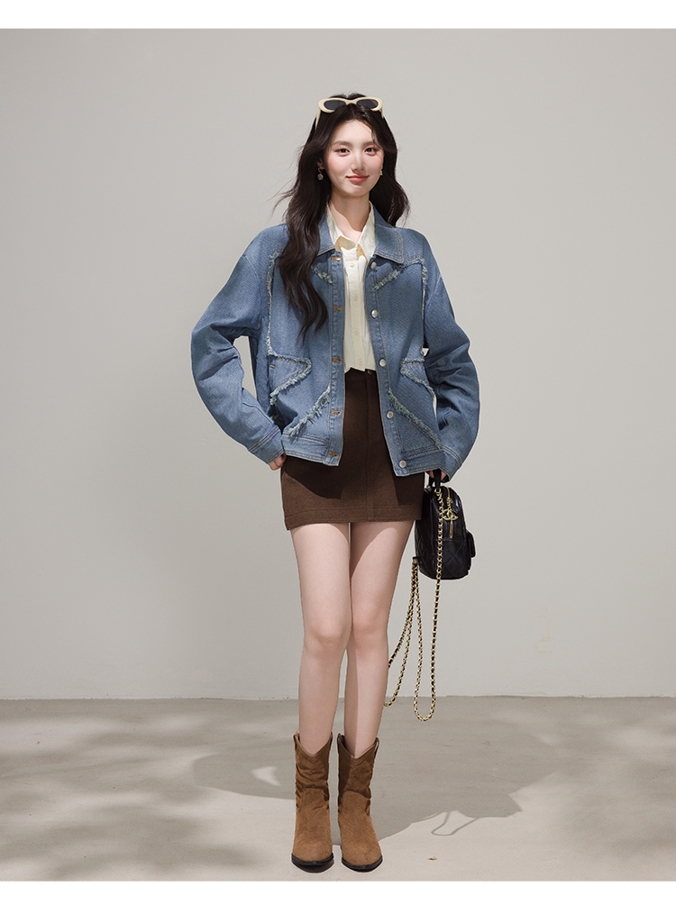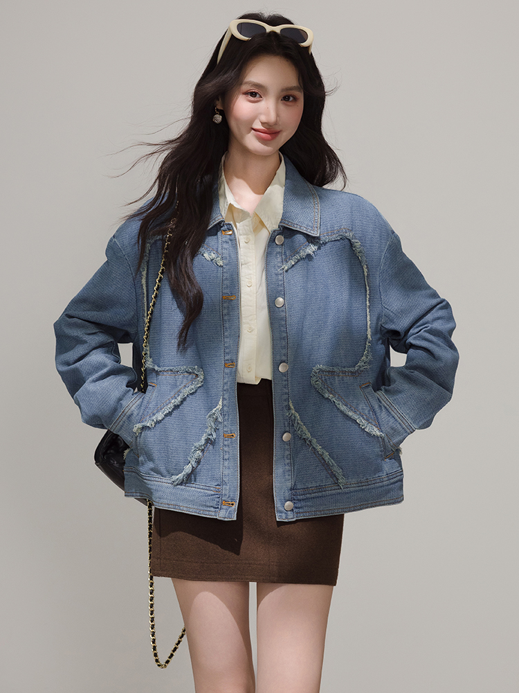 Lazy Wind Washed Denim Style Design Sense Niche Jacket Top
