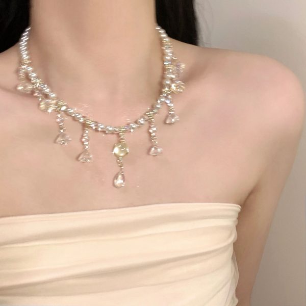 Li Elegant Socialite Crystal Tassel Necklace Female Super Flash Zircon Clavicle Chain Hot Selling Necklace