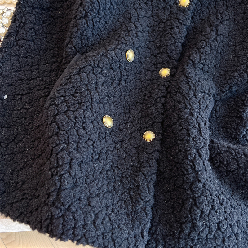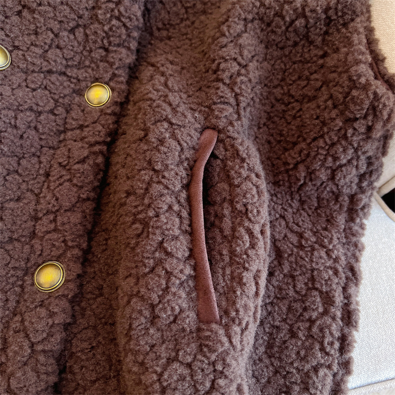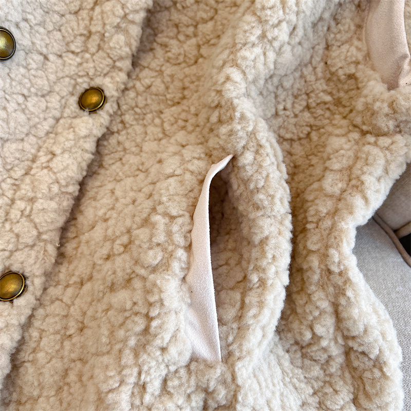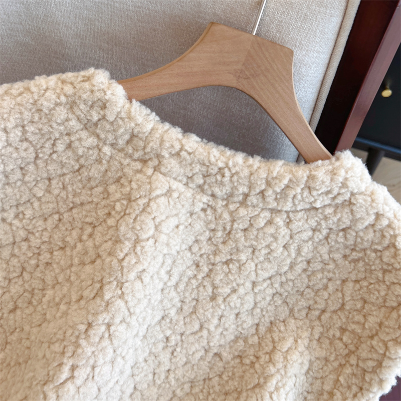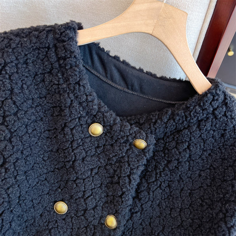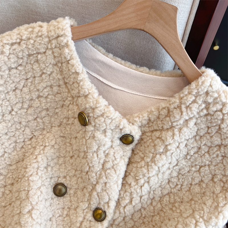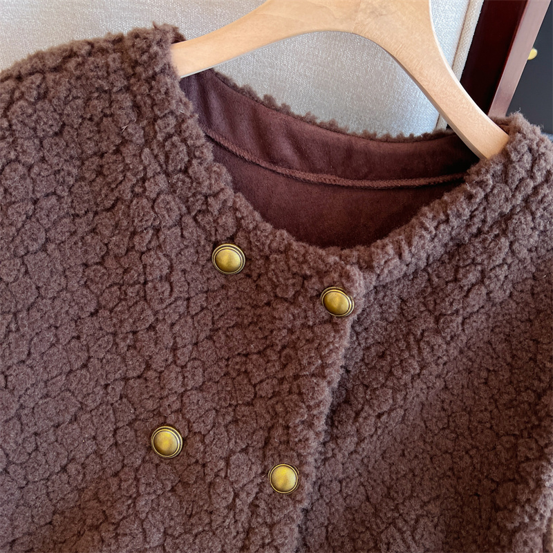 Loose Fit Slimming Double-breasted Round Neck Solid Color Thickened Warm Lamb Wool Vest